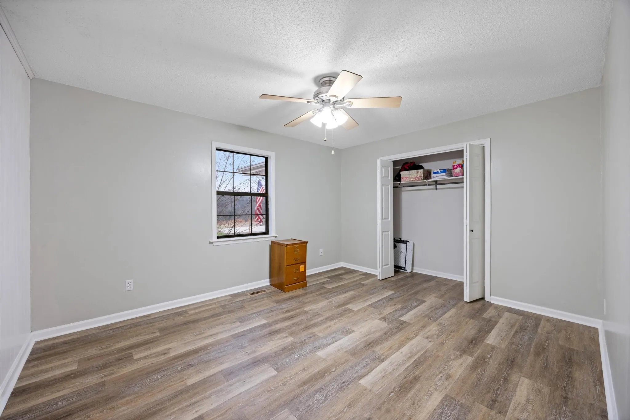 Inside, the home features fresh paint, new flooring, and many updated light fixtures. The spacious primary bedroom and bath are thoughtfully separated from the four additional bedrooms and full bath, offering privacy and functionality.
