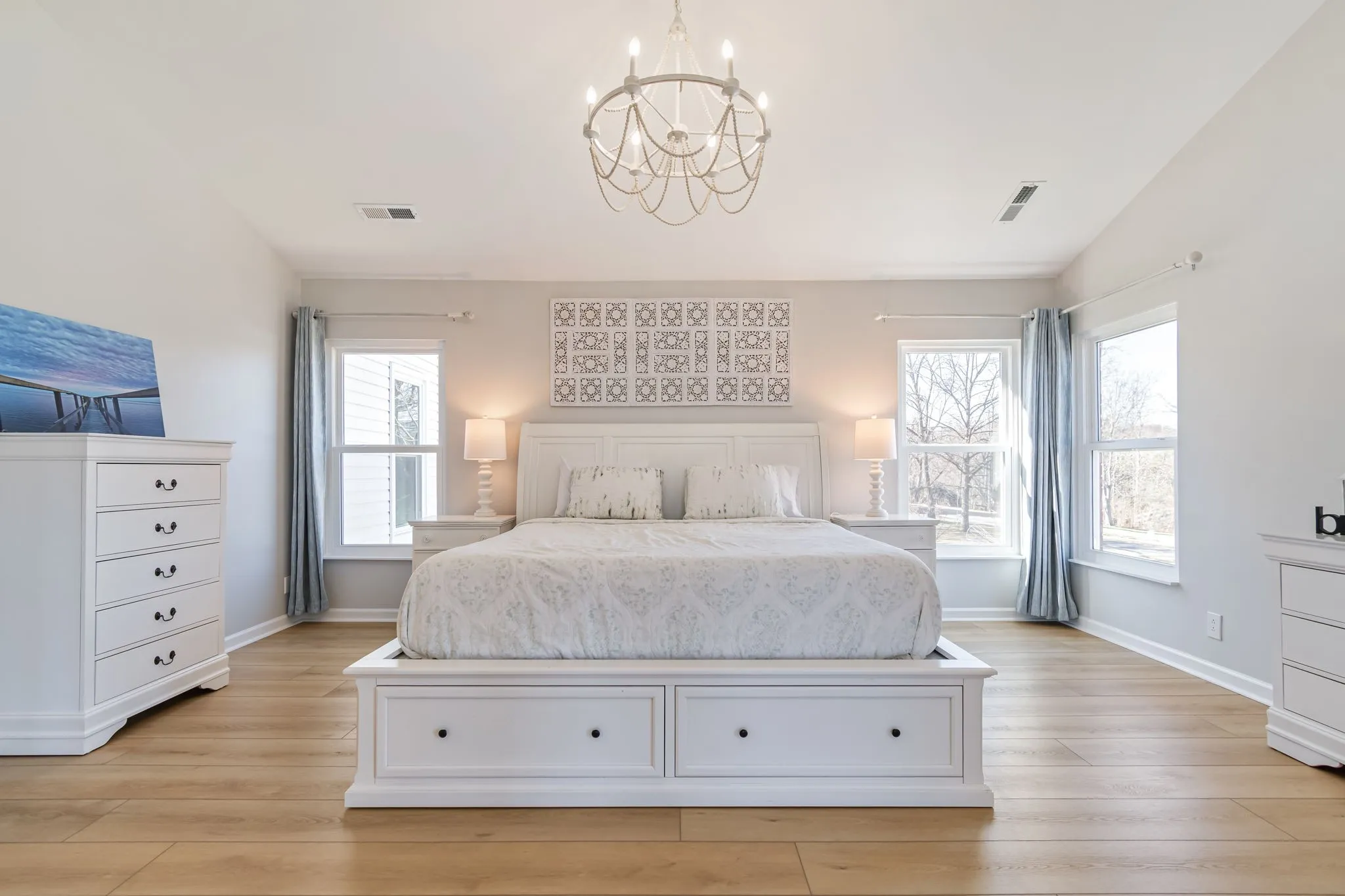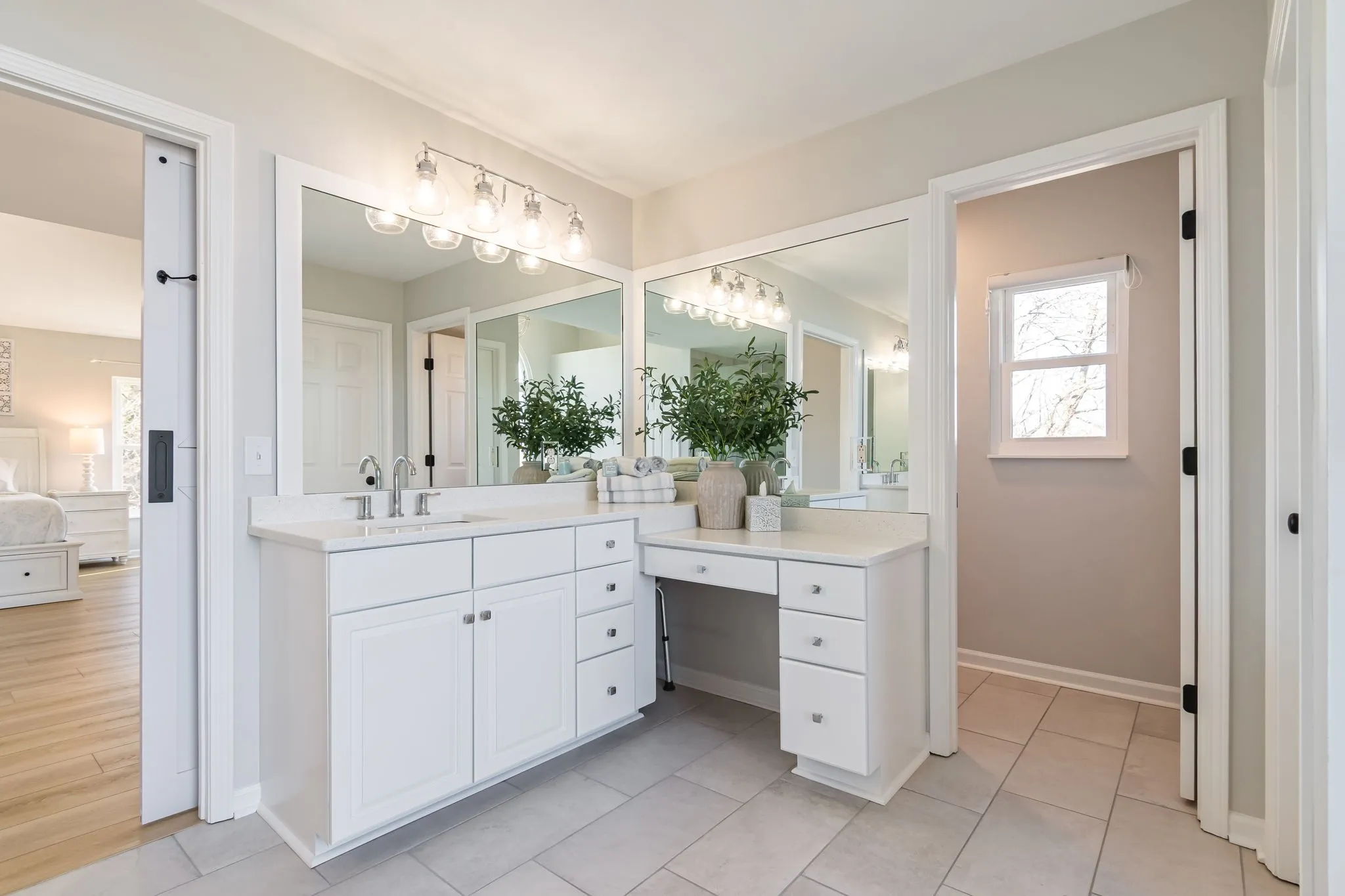 The expansive primary suite is a true retreat, featuring a spa-like ensuite with a large soaking tub, walk-in shower, dual vanities, and rare his-and-her closets offering exceptional storage.\n