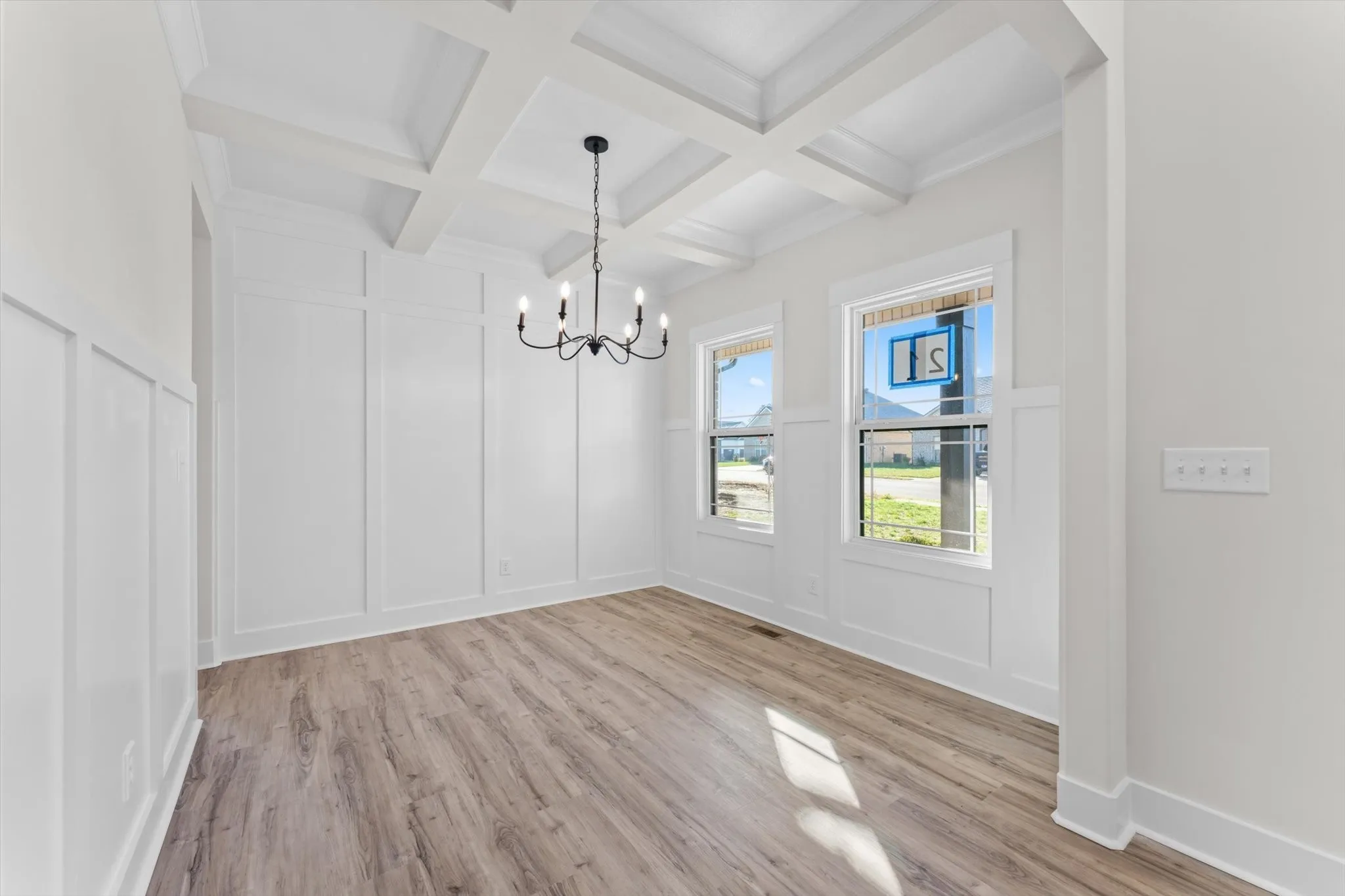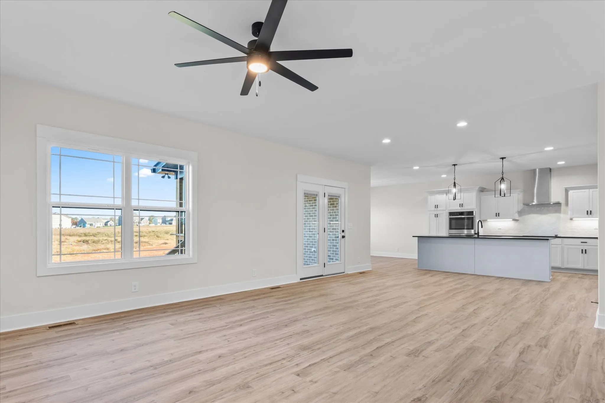 This spacious floor plan offers 4 bedrooms and 2.5 bathrooms, thoughtfully designed for comfort and function. The chef’s kitchen is a true showstopper—featuring double ovens, ample cabinet space, and not one, but two pantries, perfect for all your cooking and entertaining needs. The primary suite is a true retreat, boasting an extremely oversized walk-in closet and a spa-inspired shower with three shower heads. Every detail has been carefully considered, from the striking black windows to the upscale finishes that elevate the home’s modern aesthetic.