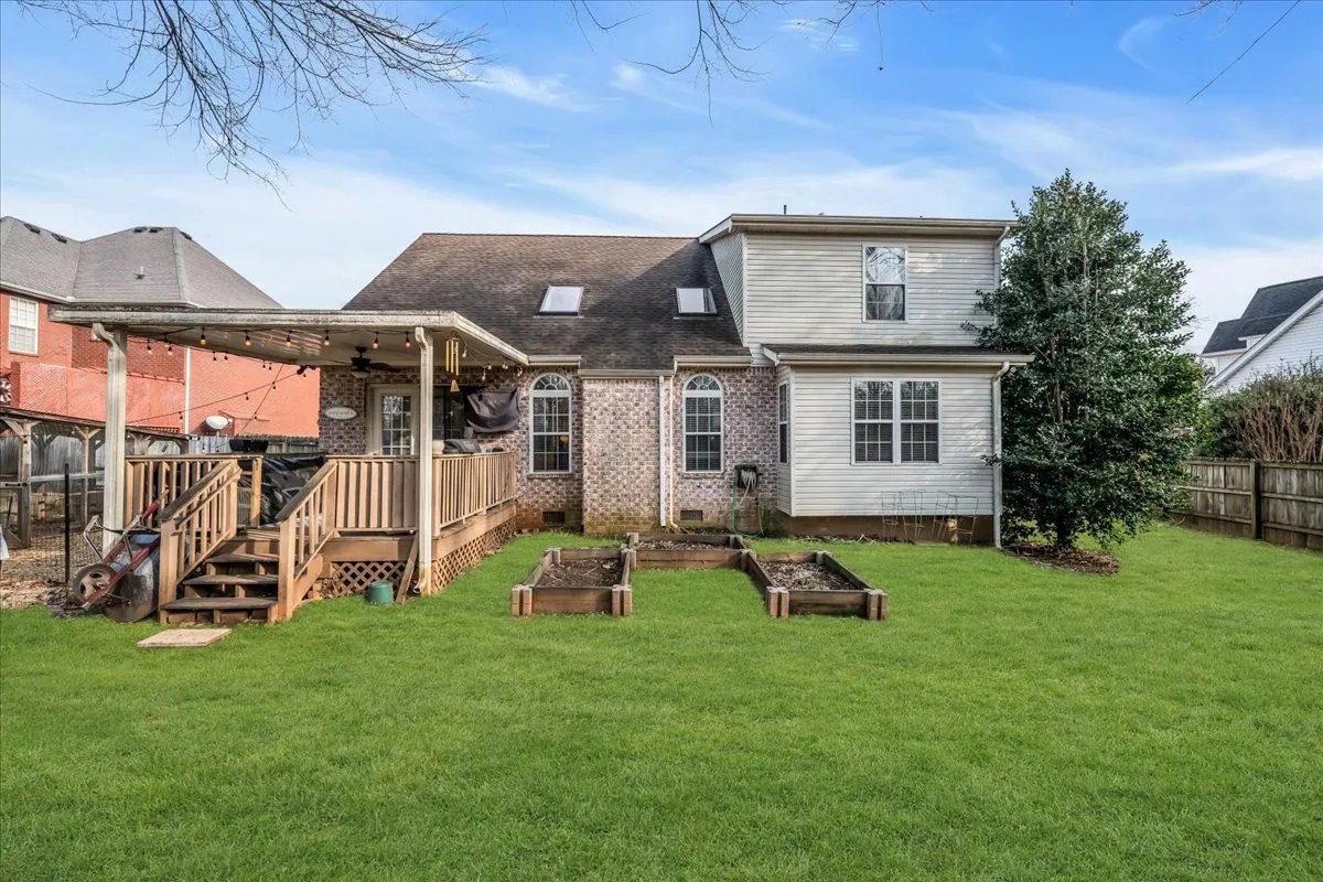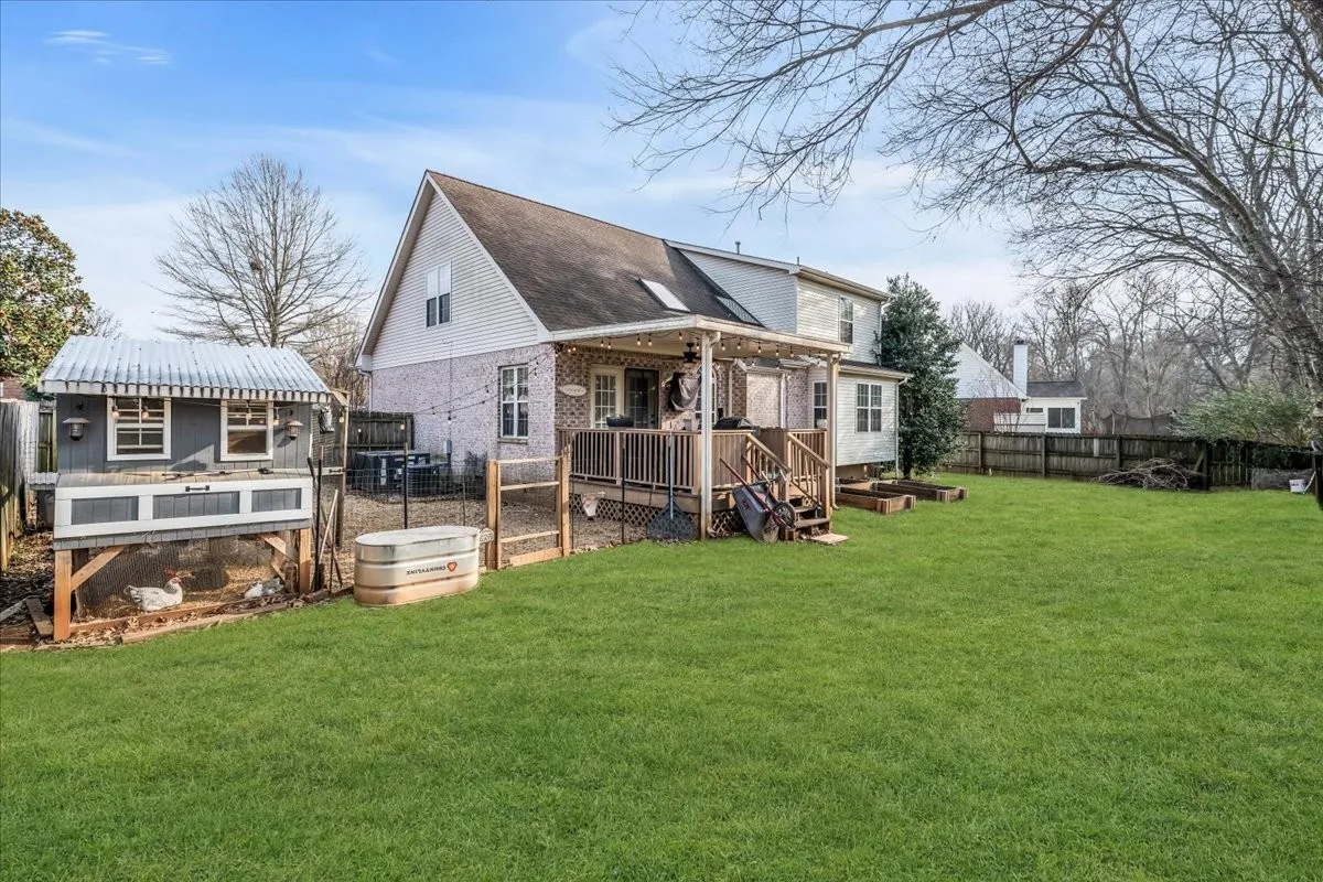Welcome to your dream home! This stunning 3-bedroom, 2.5-bath brick residence boasts over 2,400 sq ft and backs up to scenic Barfield Park, offering easy access to outdoor adventures. Step inside to find a newly remodeled kitchen featuring quartz countertops, custom cabinets, stainless steel appliances, and a peninsula island with bar seating, perfect for entertaining. The formal dining room leads to a spacious Great Room with luxurious LVP flooring, high ceilings, and a cozy fireplace. Retreat to the large primary bedroom with a remodeled ensuite bath, complete with a new vanity and fresh finishes. Two guest bedrooms share a convenient full bathroom. Enjoy a huge bonus room with plush carpet and a separate office or hobby area for all your needs. Relax on the covered back deck overlooking a fenced yard with a chicken coop and duck house. The garage is equipped with a built-in storm shelter, designed for your peace of mind during severe weather. This family-friendly home is ideal for children and pets, making it a perfect oasis! Convenient to I-24! Easy commute to Nashville!
