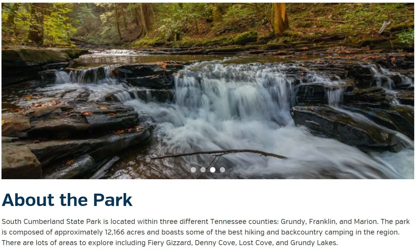 "LongDescription" => "Minutes from the cabins. Enjoy everything South Cumberland State Park has to offer!!"