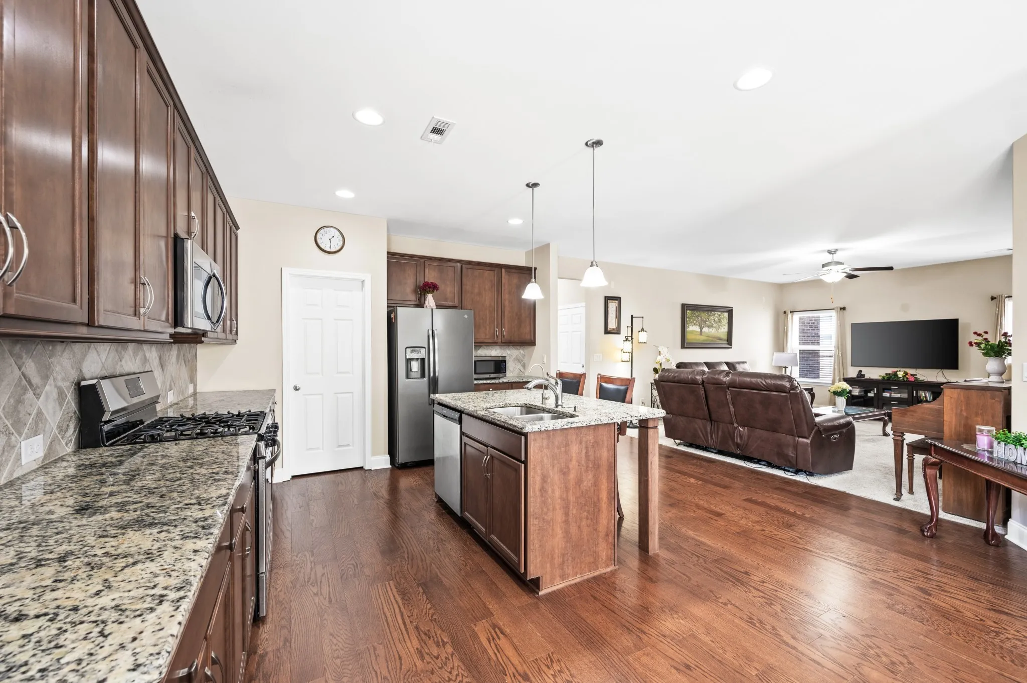 Welcome to 591 Oakvale Ln in Mount Juliet’s desirable Oakvale community! Built in 2020, this home offers nearly 2,400 sq. ft. with 4 bedrooms and 3 baths, including two bedrooms on the main level. The open floor plan features hardwood flooring in formal areas, a gourmet kitchen with granite countertops, a tile backsplash, stainless steel appliances, and a walk-in pantry. The spacious primary suite includes a spa-like bath with dual vanities and a walk-in closet. Enjoy an open patio, fenced backyard, and private wooded views with no rear neighbors. Additional highlights include a 2-car garage, energy-efficient systems, low HOA fees, and neighborhood playground—all within minutes of schools, shopping, and dining.