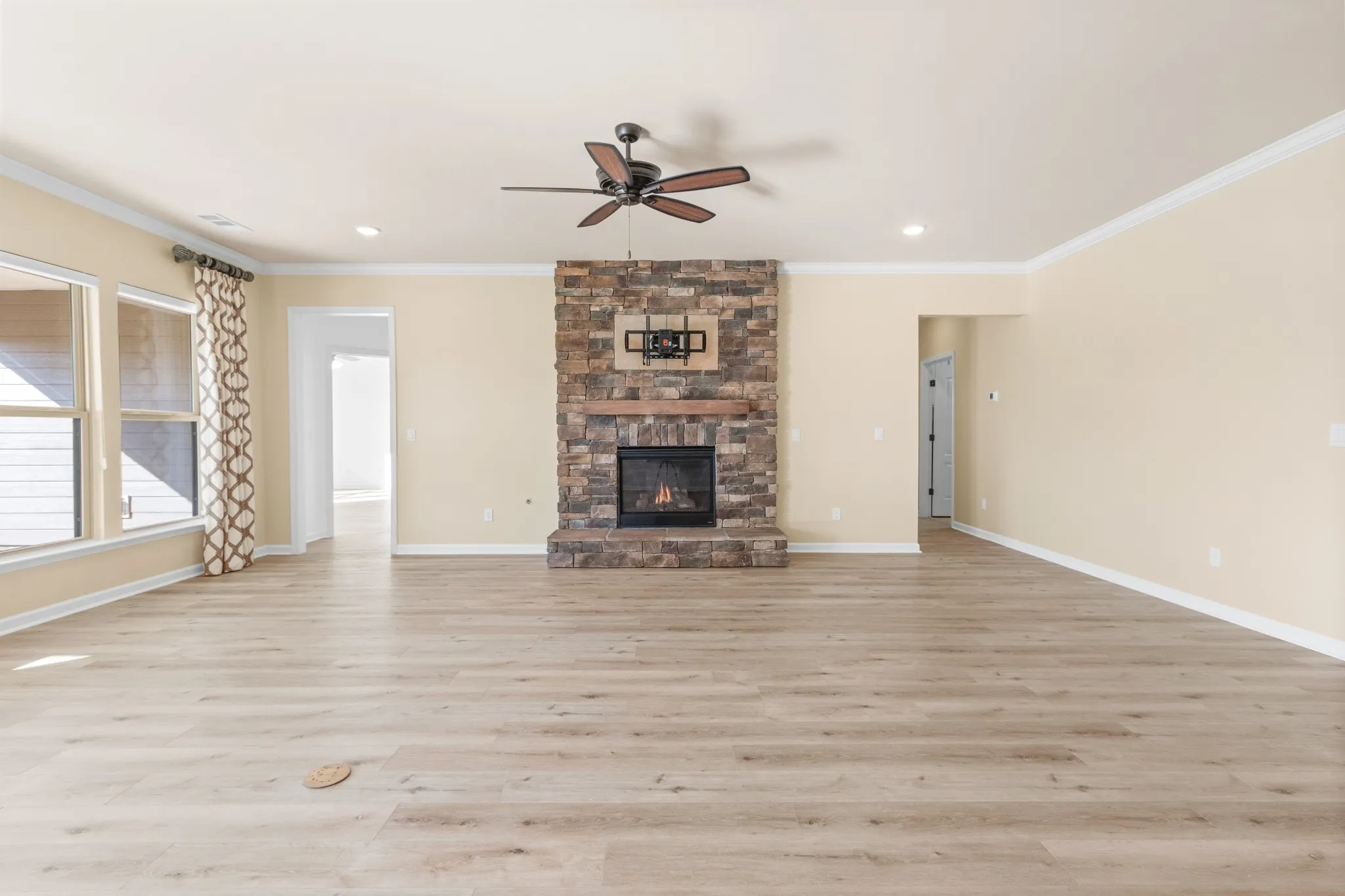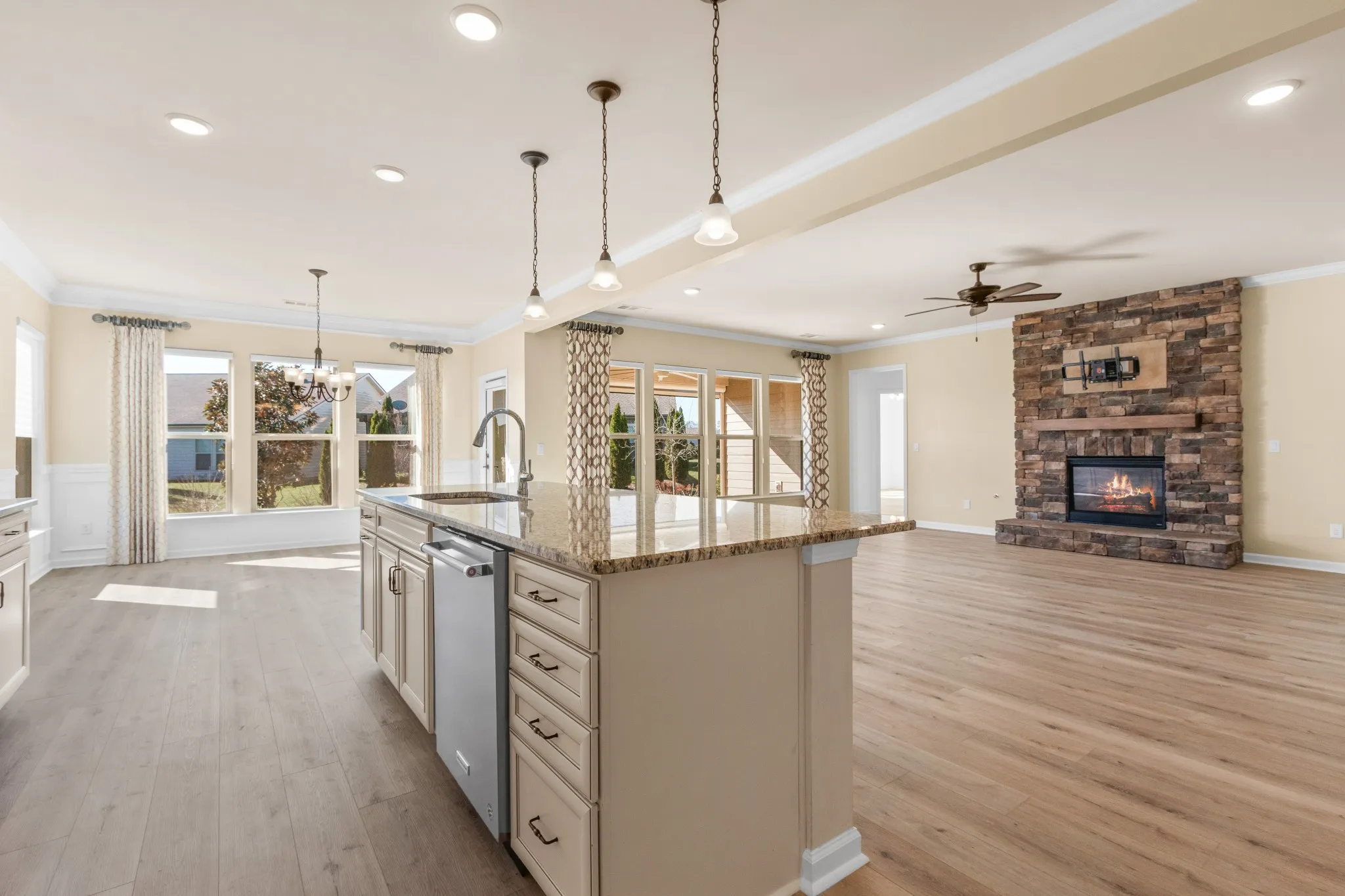 +"PublicRemarks": "Spacious open concept Dunwoody Way Model with a golf cart garage on a lavishly landscaped lot on one of the most desirable streets in Southern Springs by Del Webb 55+ active adult community. Crown moulding, wainscoting, ceiling fans, high end custom drapes, and stone gas log burning fireplace.All new LVP flooring, no carpet. Primary bath has double sink vanities, granite countertops, walk-in tile shower, linen closet, and separate water closet with bidet. Primary closet has modular closet system and tons of storage. Kitchen has granite countertops, dovetail drawers, soft close doors, roll out shelving, built-in microwave and oven, gas cooktop, tile backsplash, large island for entertaining, and walk-in pantry with custom shelving and pull out drawers. The flex room office has beautiful custom built-in shelving and desk area. Storm door at front entry. Professionally installed ionizer air cleaner on furnace, whole house surge protector at electrical panel, laundry room with custom built-in cabinetry and countertop. The large covered patio has ceiling fan and remote controlled Rainier retractable screens for increased privacy. The patio has a gas stub for connecting directly to your grill. Community has both indoor and outdoor pools, pickle ball, and tennis courts, gas fire pit, pavilion with gas grills and patio tables, clubhouse with fitness center and fitness classes, ball rooms, kitchen, conference room, card/game room, massage room, men's and women's locker rooms, and a dog park. Over 70 clubs and special interest groups, special programs, presentations, concerts, Southern Springs choir and band, as well as photography, painting, quilting, solo clubs, coffee club, Veteran's club, and so much more. Living in Southern Springs is like vacationing at a very active resort. Thirty-five minutes to/from BNA."