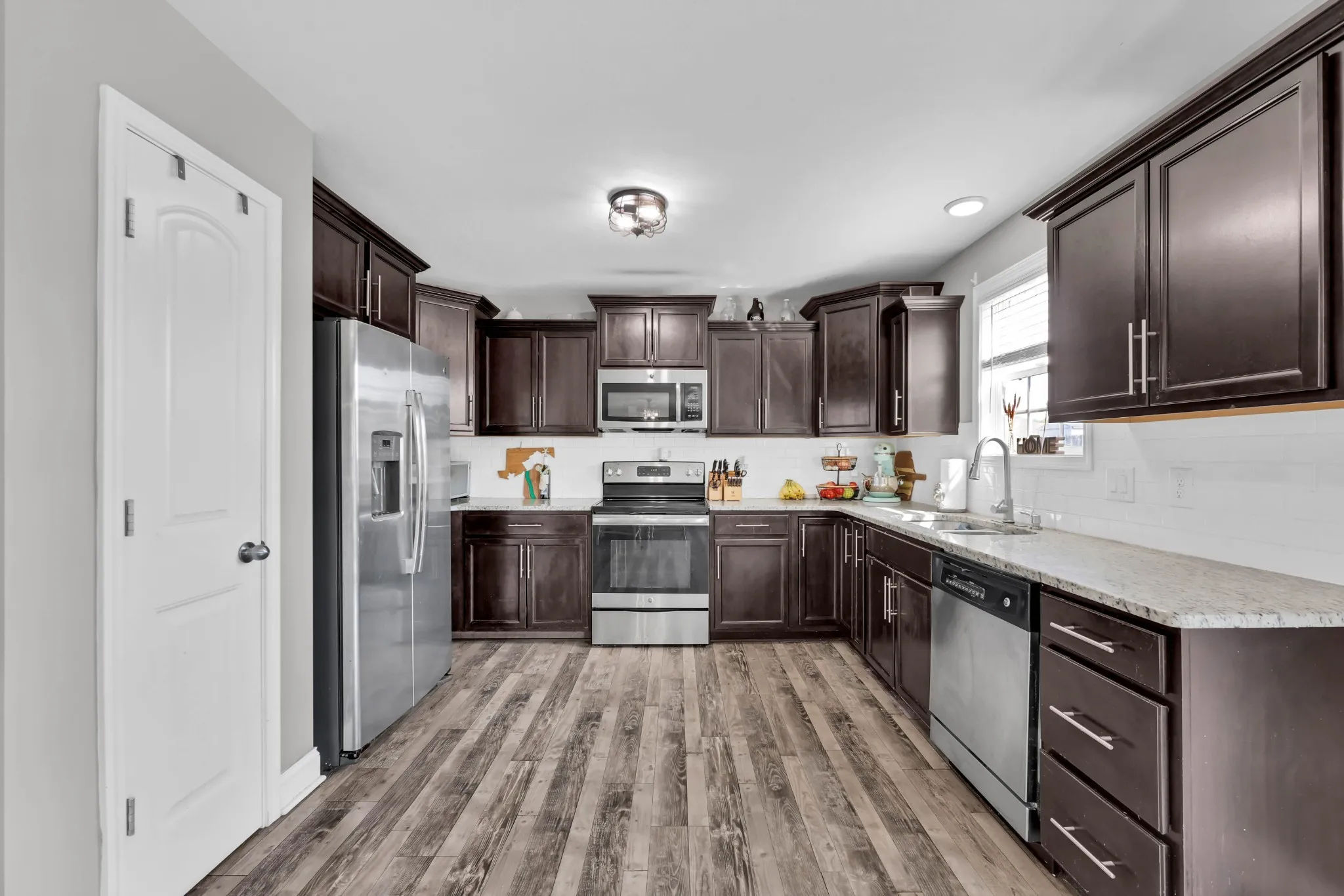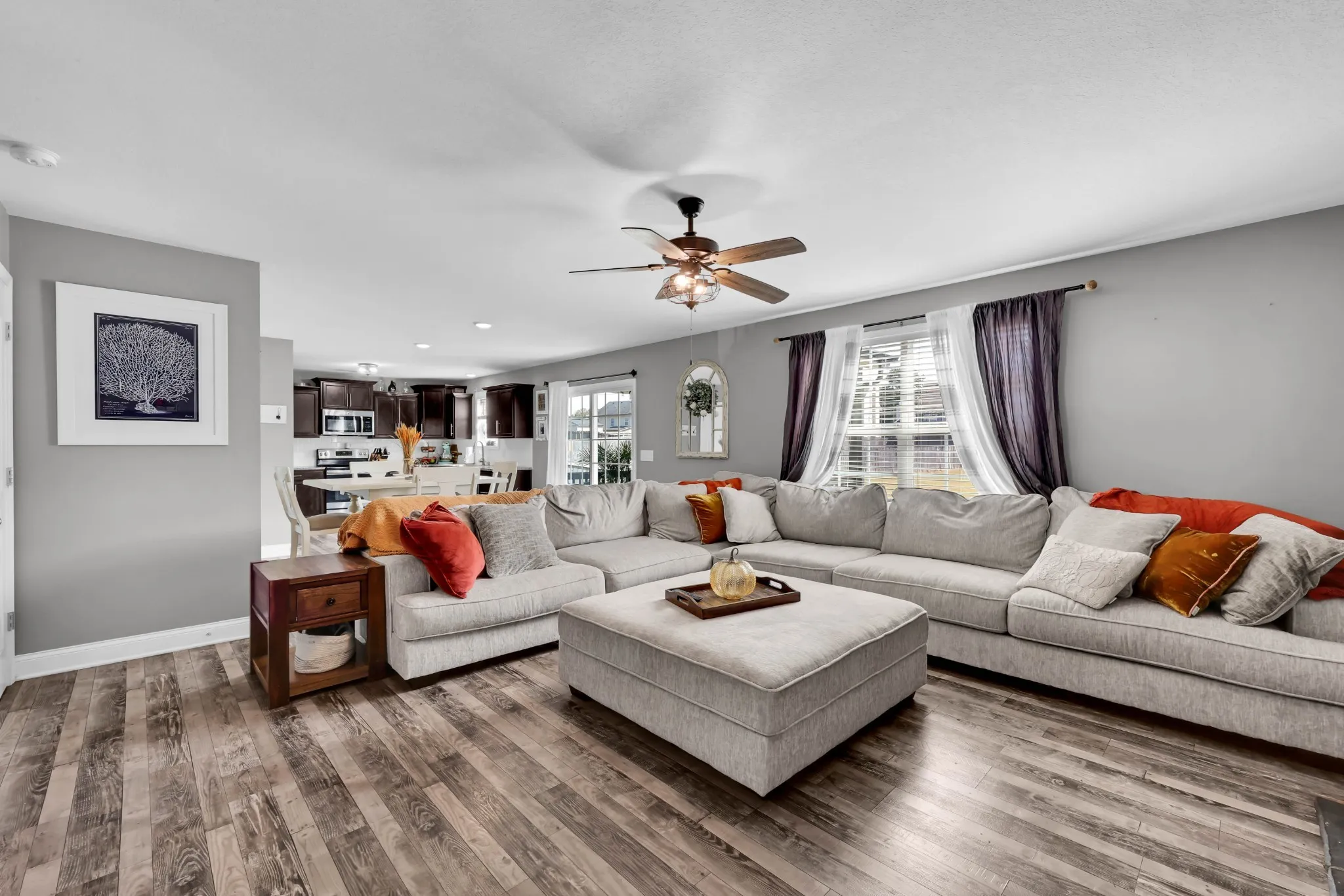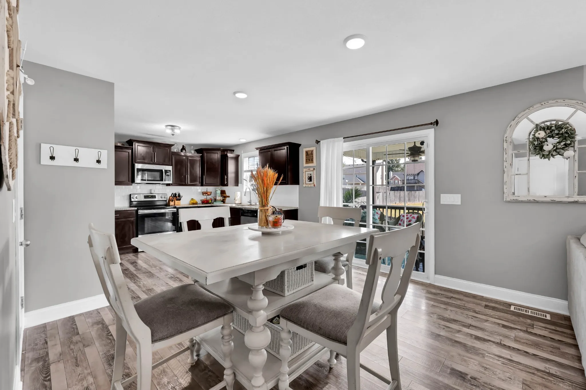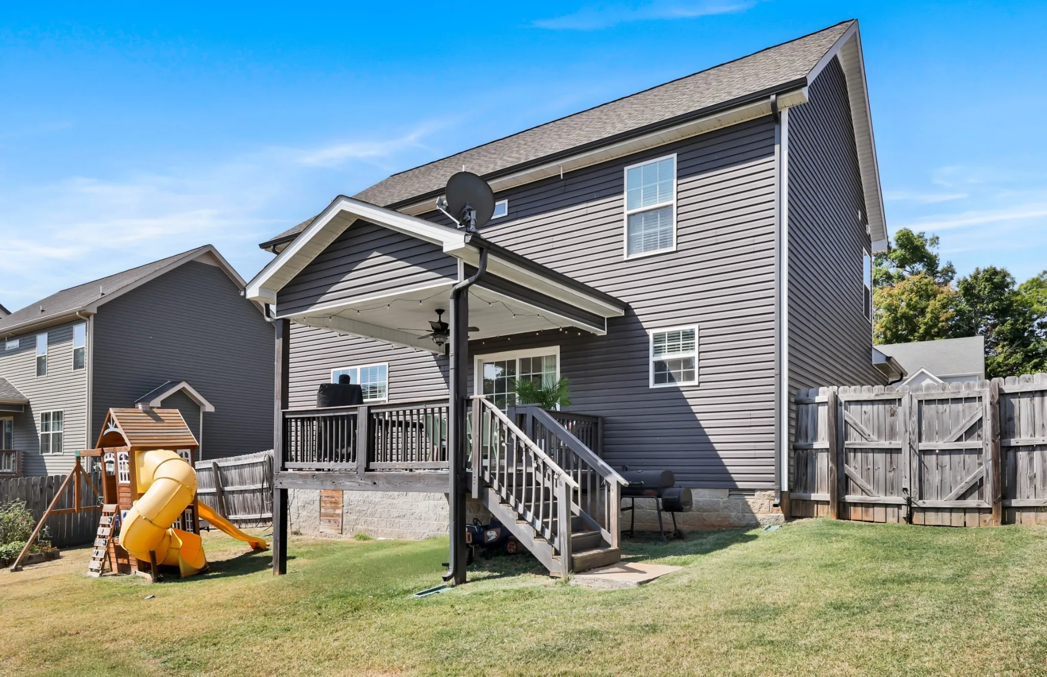 Seller to assist with closing costs! Located just minutes from Ft Campbell, this stunning home features an open-concept layout with a spacious living room and cozy fireplace. The kitchen is equipped with ample cabinetry, granite countertops, a stylish backsplash, and a pantry for additional storage. The primary suite offers a true retreat, complete with a walk-in closet and a luxurious bathroom that includes double vanities and a large tile shower. The third bedroom also provides extra storage and a walk-in closet. Home equipped with ADT alarm panel and downstairs window sensors. The fully fenced backyard is perfect for entertaining guests, providing a safe play area for children, or accommodating pets. The neighborhood enhances the living experience with a playground, dog park, and a variety of family-friendly holiday events.
