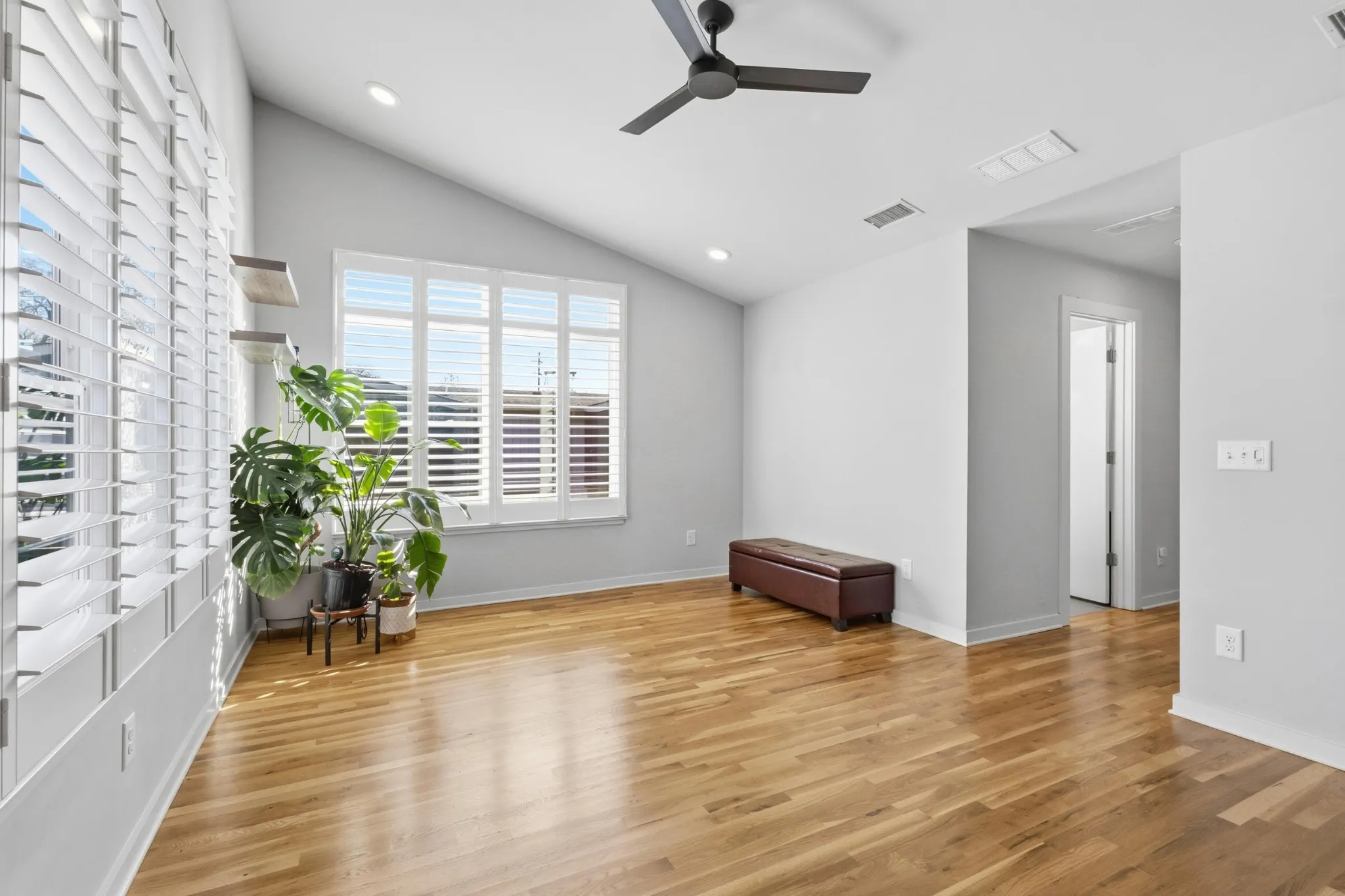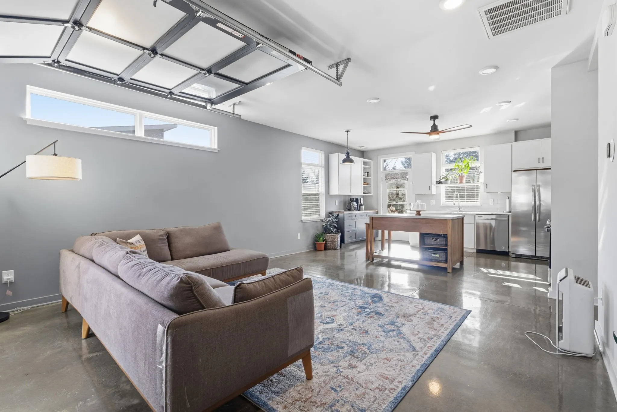Perfectly situated across from Cornelia Fort Airpark, this modern end-unit cottage offers an exceptional blend of style and functionality. The home features thoughtful owner upgrades, including an expanded pantry with custom cabinetry and a standing freezer, plus additional kitchen cabinets and countertops ideal for a beverage station or extra workspace. The open living area seamlessly connects to a covered patio via a signature glass garage door, creating an ideal layout for indoor-outdoor living. Upstairs, the large primary suite provides a spacious retreat with contemporary finishes. As an end unit, the home is filled with abundant natural light. The location offers the convenience of being steps from park trails while remaining minutes from the very best dining and shopping East Nashville has to offer.