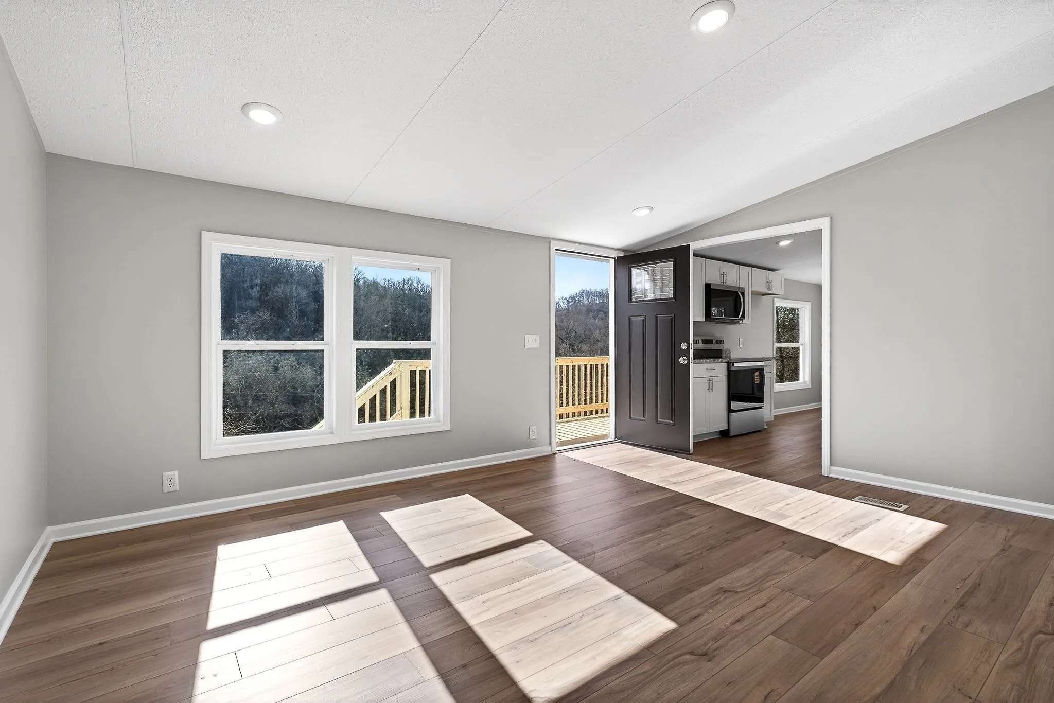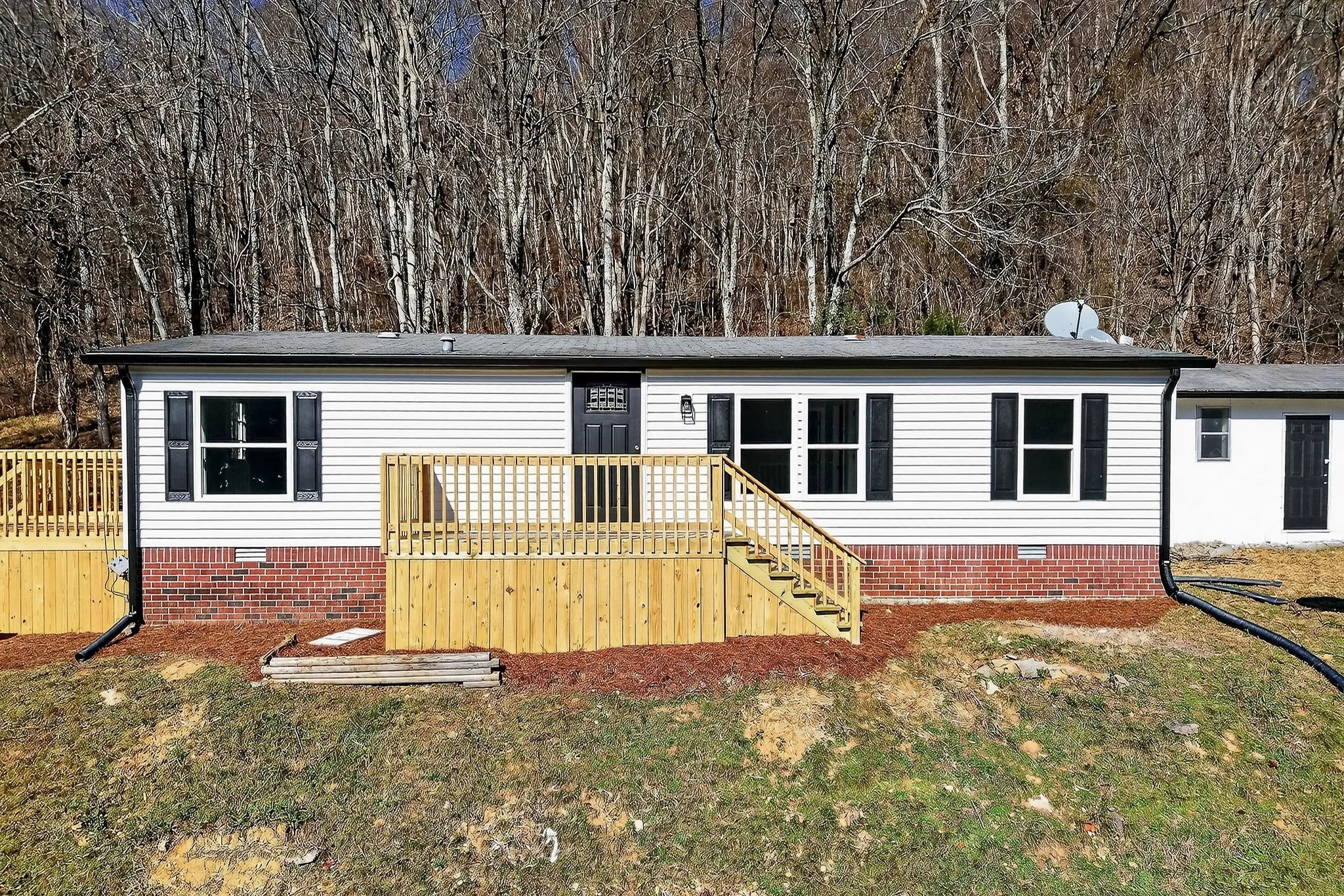 Newly renovated home that truly feels brand new, with everything on the inside completely updated. Improvements include new flooring, paint, windows, cabinets, granite countertops, fixtures, and more, offering a fresh, modern interior throughout. Enjoy outdoor living on a large deck with great views, all situated on five acres at the end of a dead-end road for privacy and quiet. The home is on a permanent foundation and has been detitled, adding long-term value and peace of mind. Additional features include a storm shelter and a block storage building on site. A move-in-ready property with space, privacy, and quality upgrades inside and out.
