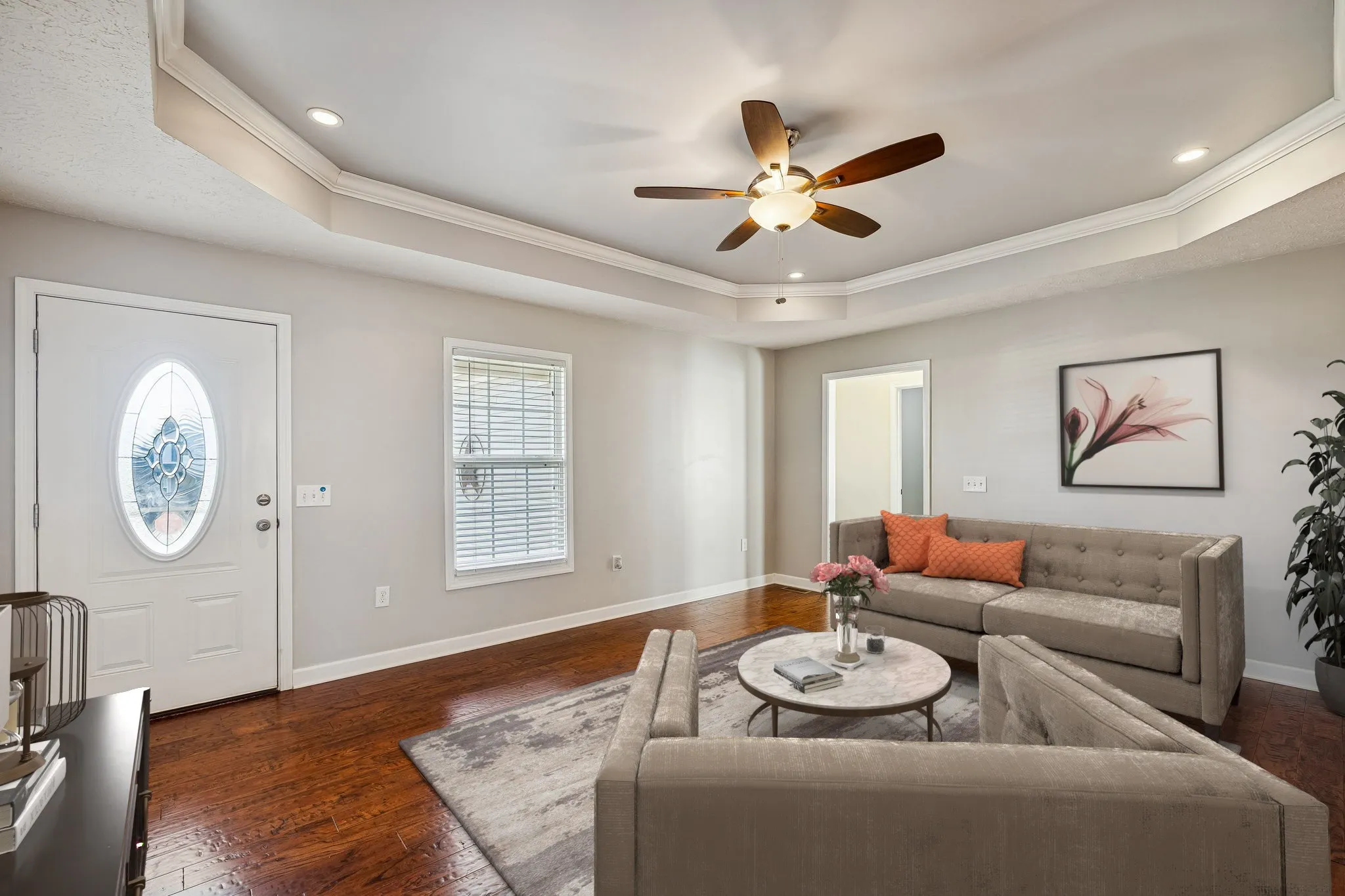 You’ll love this beautifully cared-for 3-bedroom, 2-bath home designed for efficiency, style, and everyday comfort. The home features upgraded windows, a newer hot water heater, and an efficient, well-maintained HVAC system that today’s buyers are looking for. The open floor plan creates a bright, welcoming atmosphere highlighted by hardwood flooring in the living room and durable glazed tile throughout all wet areas. The kitchen blends functionality and design with sleek espresso cabinetry, recessed lighting, stainless steel appliances, and a dedicated dining area that flows seamlessly. The primary suite offers a relaxing escape with a walk-in closet and a well-appointed bath featuring a tub-shower combo with double vanities, while two additional bedrooms share a full bathroom and provide flexible space for guests or a home office on the other side of the home. Step outside to a private fenced backyard showcasing a huge, screened deck ideal for grilling, relaxing, or entertaining guests. An attached two-car garage and open driveway parking enhance convenience and curb appeal. Move-in ready and thoughtfully designed, this energy-efficient home delivers lasting value, modern finishes, and a prime location close to top-rated schools, shopping, dining, and major commuter routes. Schedule your private showing and experience the ideal Murfreesboro lifestyle this home has to offer!