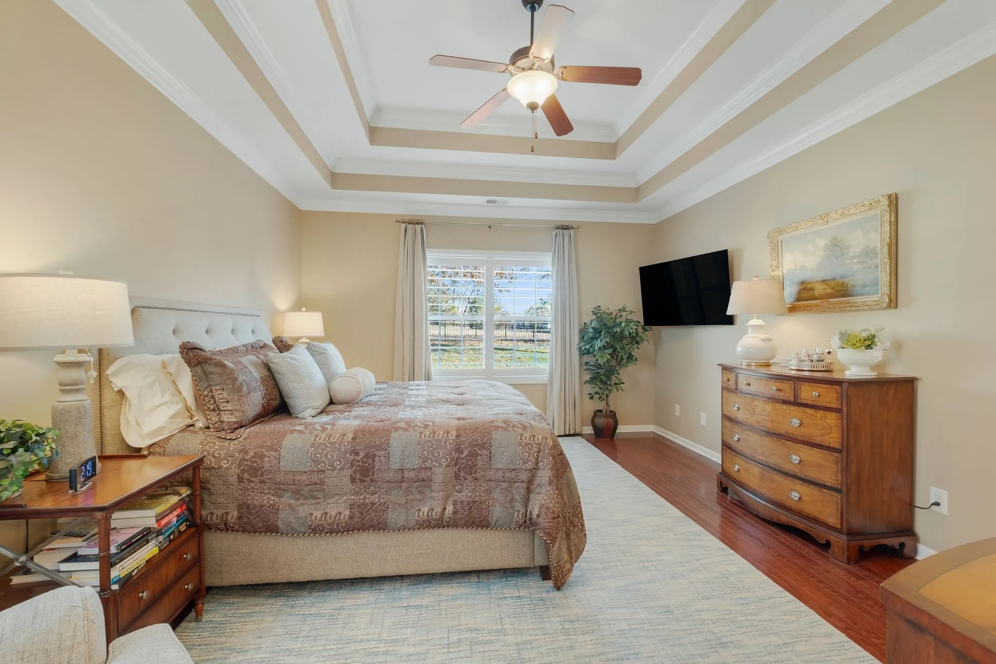 Extensive 2025 upgrades elevate this home throughout, including new high-end stainless steel appliances, a designer tile backsplash, and remote-controlled shades in the living room and kitchen. Five-inch custom plantation shutters adorn every window on the main level and bonus room, adding timeless sophistication.