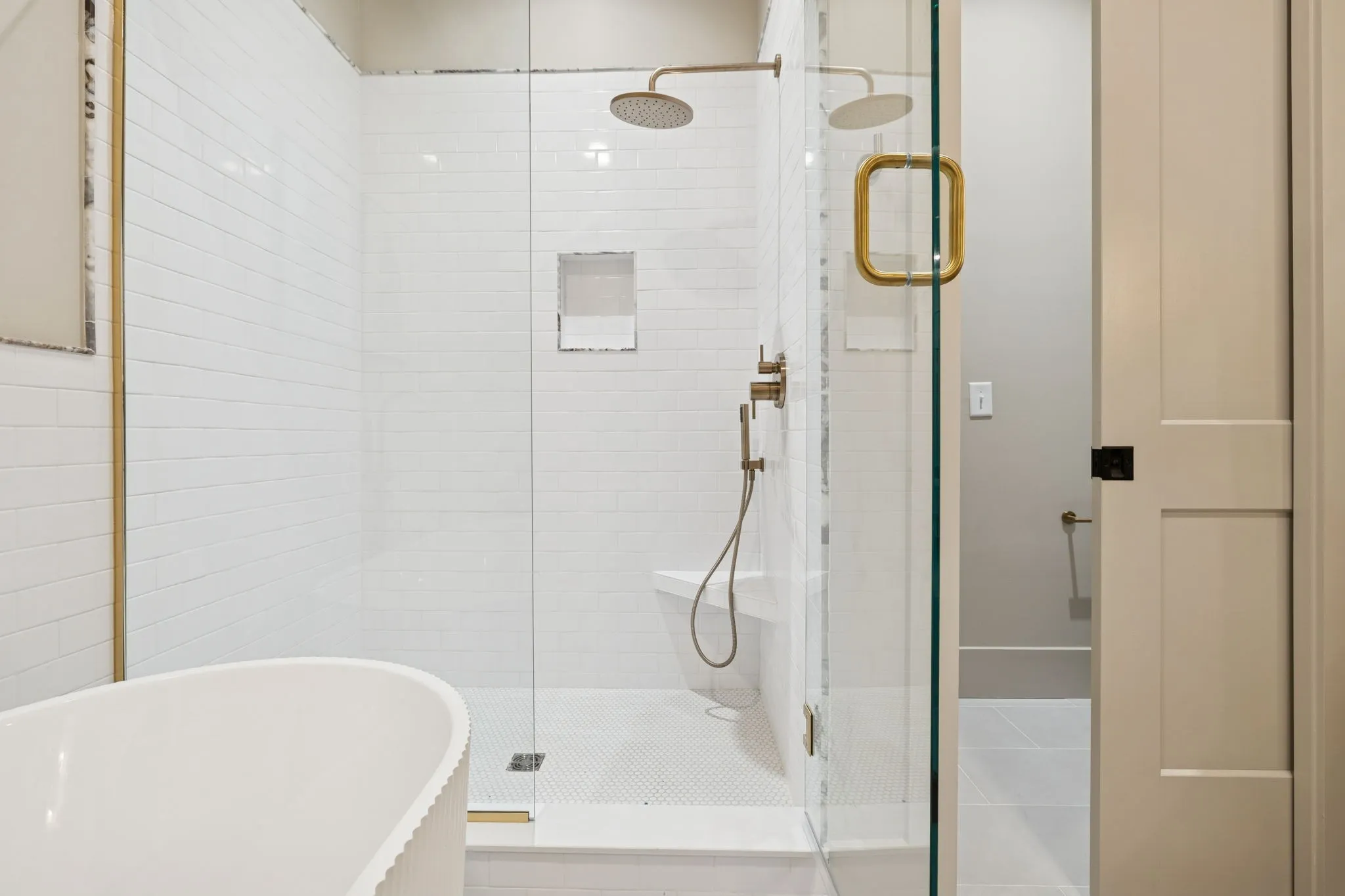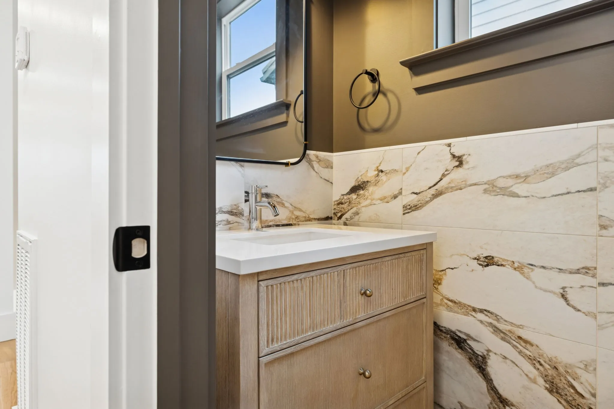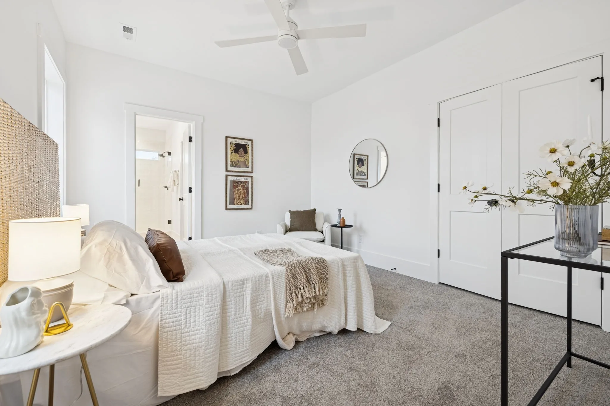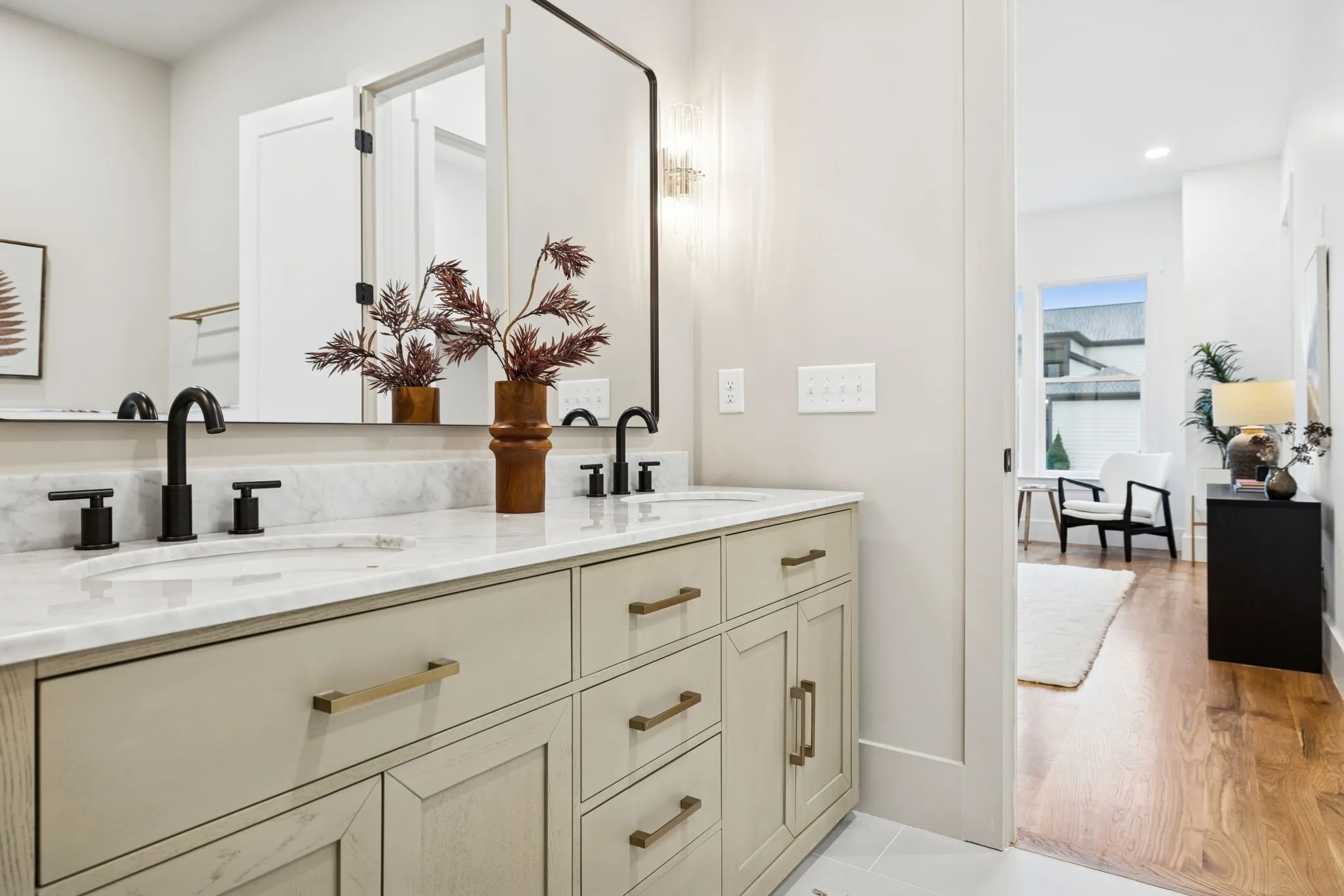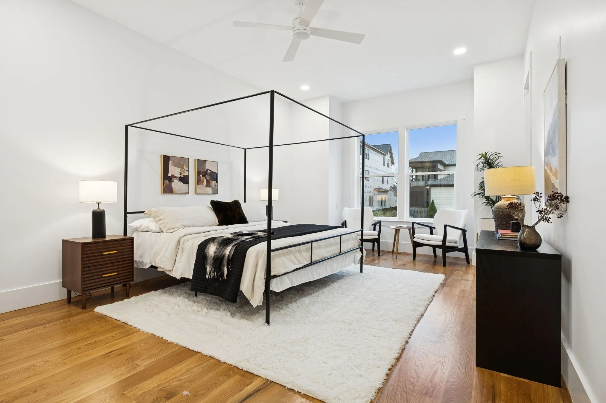 Inside, the home features soaring 10-foot ceilings, white oak flooring, illuminated stair lighting, and curated designer finishes throughout. The primary suite serves as a private retreat, complete with a soaking tub and elegant West Elm and Pottery Barn vanities. Thoughtfully designed living spaces include a bonus room with a wet bar, a spacious laundry room with a utility sink, and two stylish powder rooms—perfectly blending form and function.