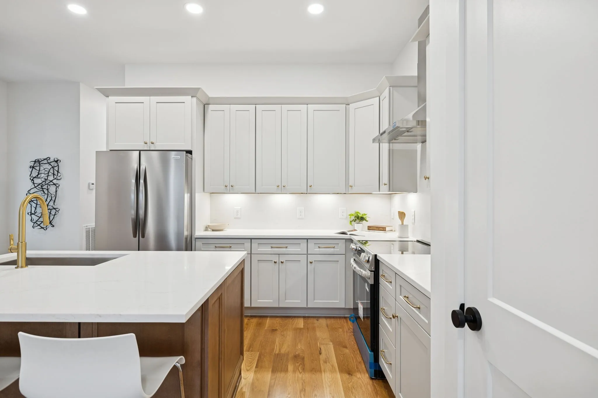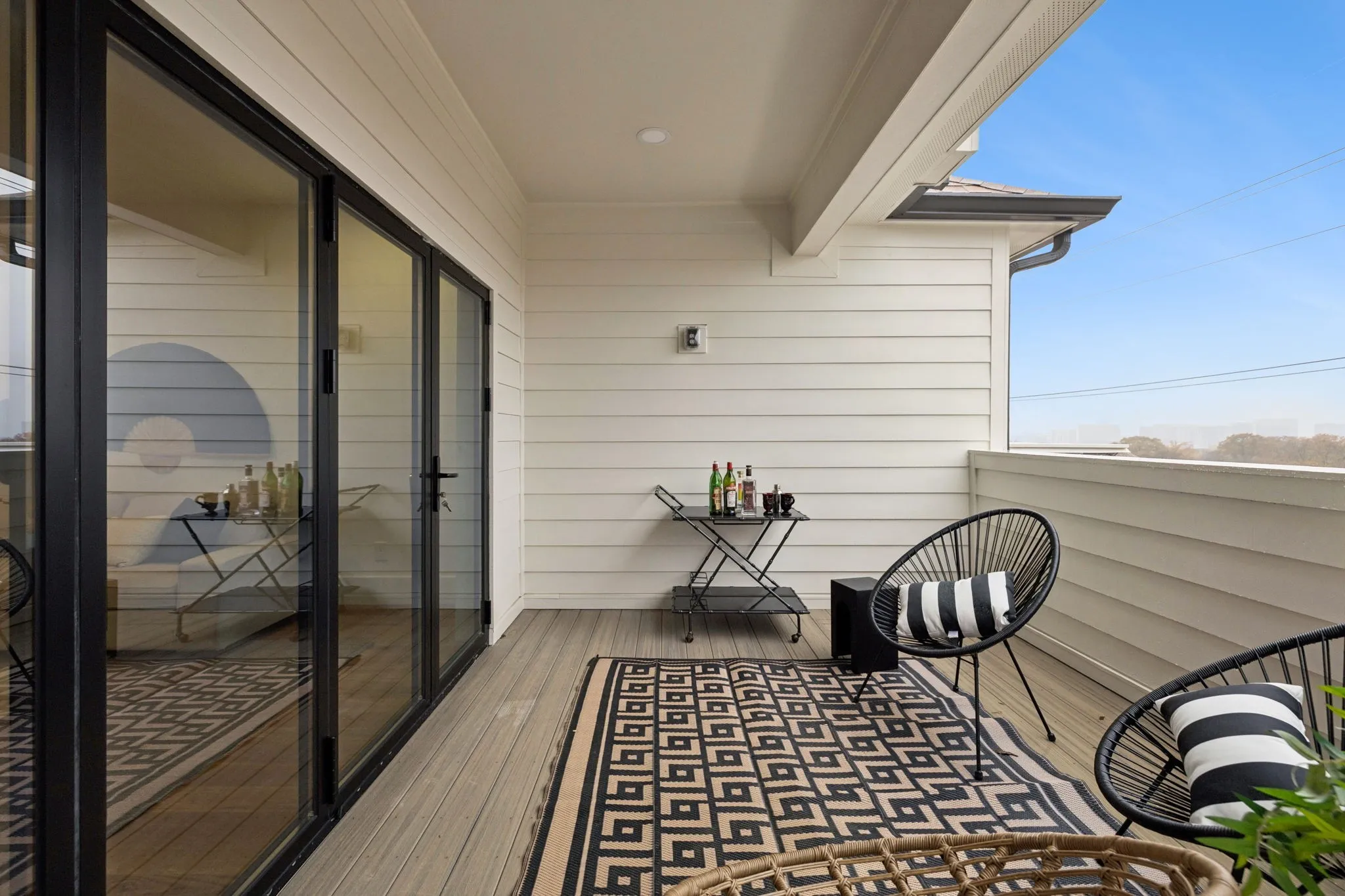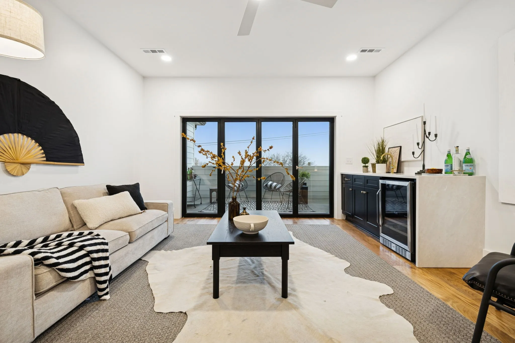 The crown jewel of this home is the private rooftop deck, an entertainer’s dream featuring a high-end two-person outdoor sauna capable of reaching up to 225 degrees—an exceptional luxury rarely found in urban new construction. Expansive glass accordion doors seamlessly connect indoor and outdoor living, opening to downtown views and generous rooftop space ideal for entertaining or relaxing.
