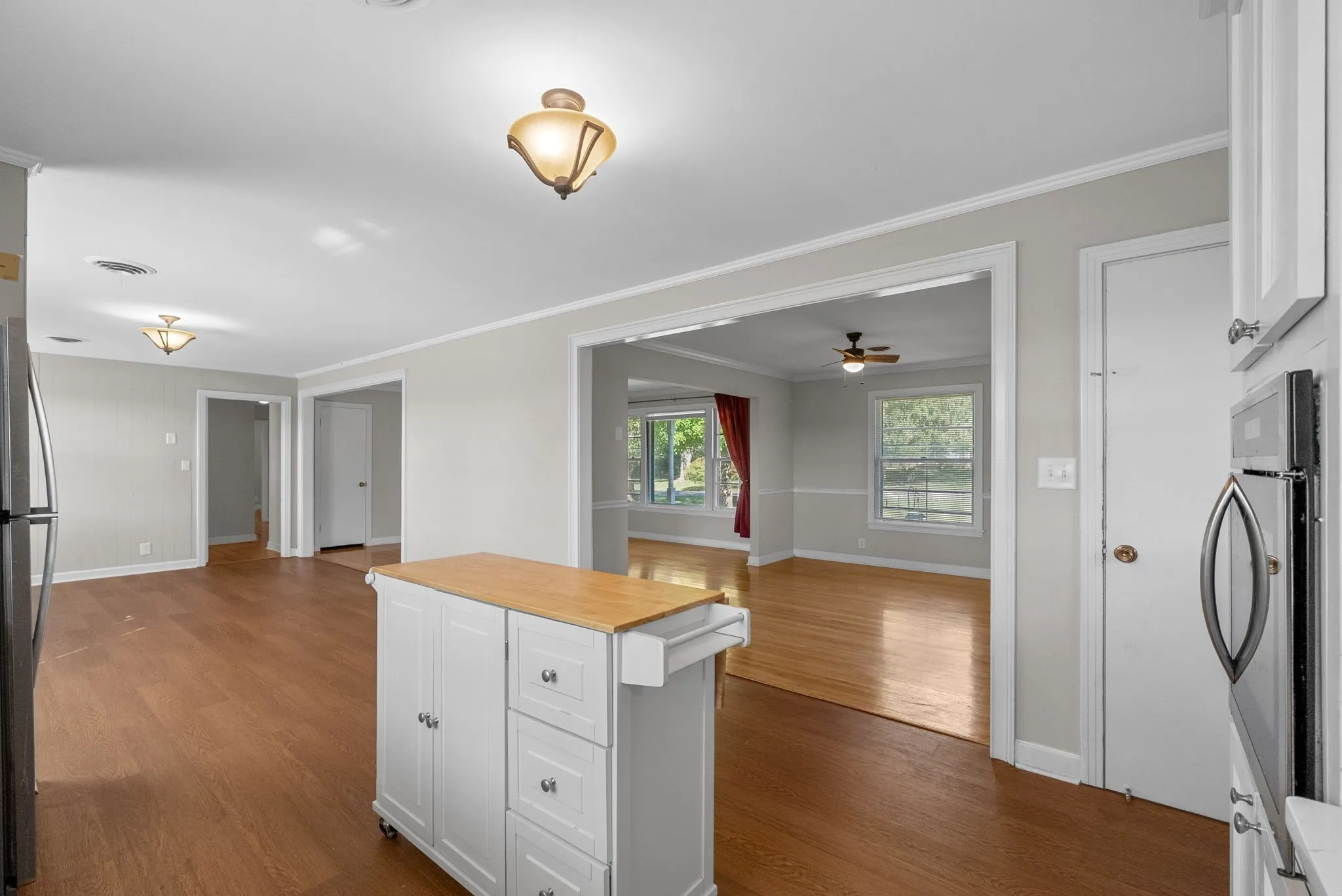 Outdoor enjoyment awaits on the back deck overlooking the expansive backyard—perfect for relaxing or hosting guests. A two-car garage adds convenience, and the home’s location just five minutes from downtown Clarksville and the marina offers an ideal balance of comfort, accessibility, and peaceful charm.