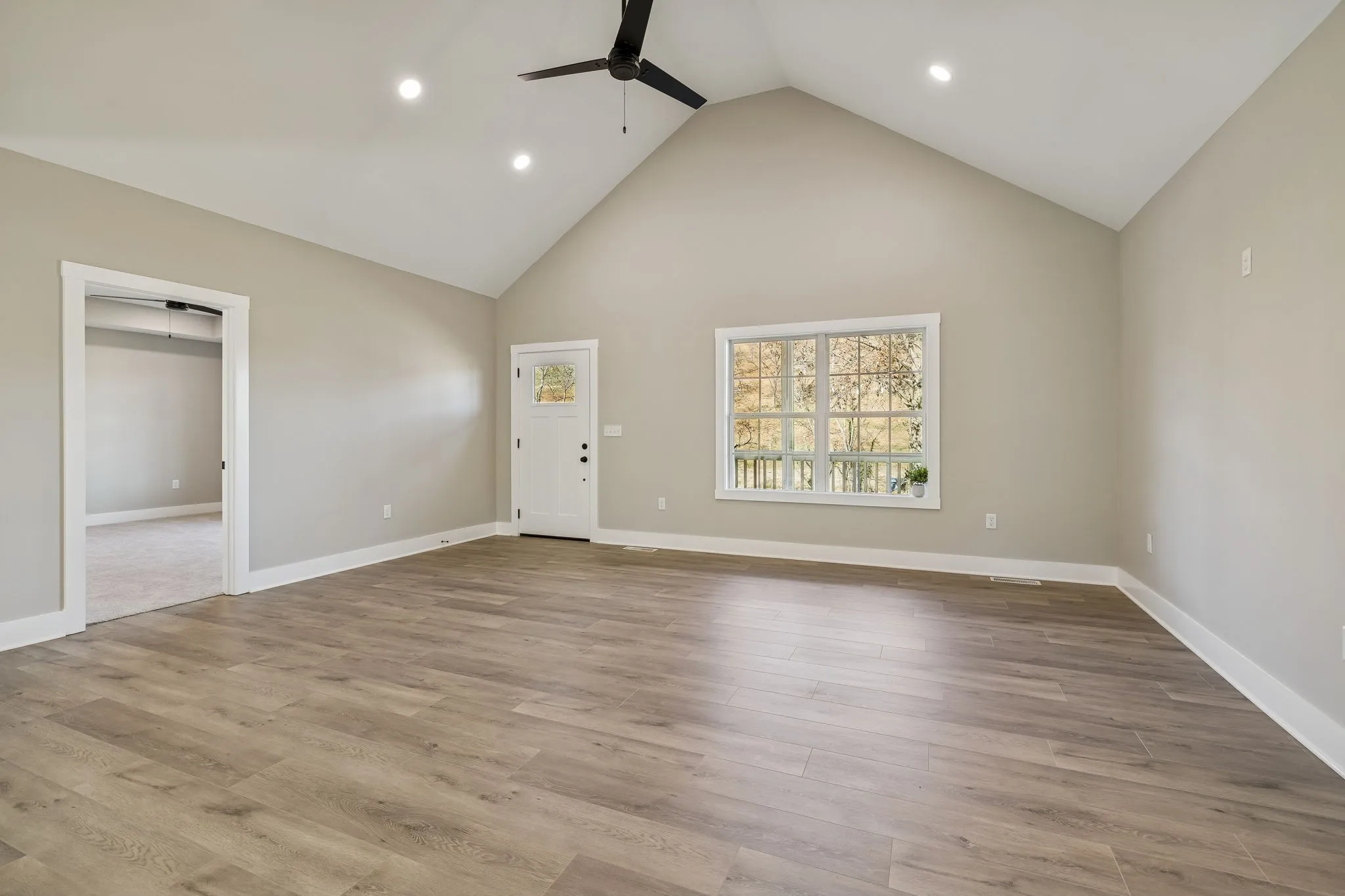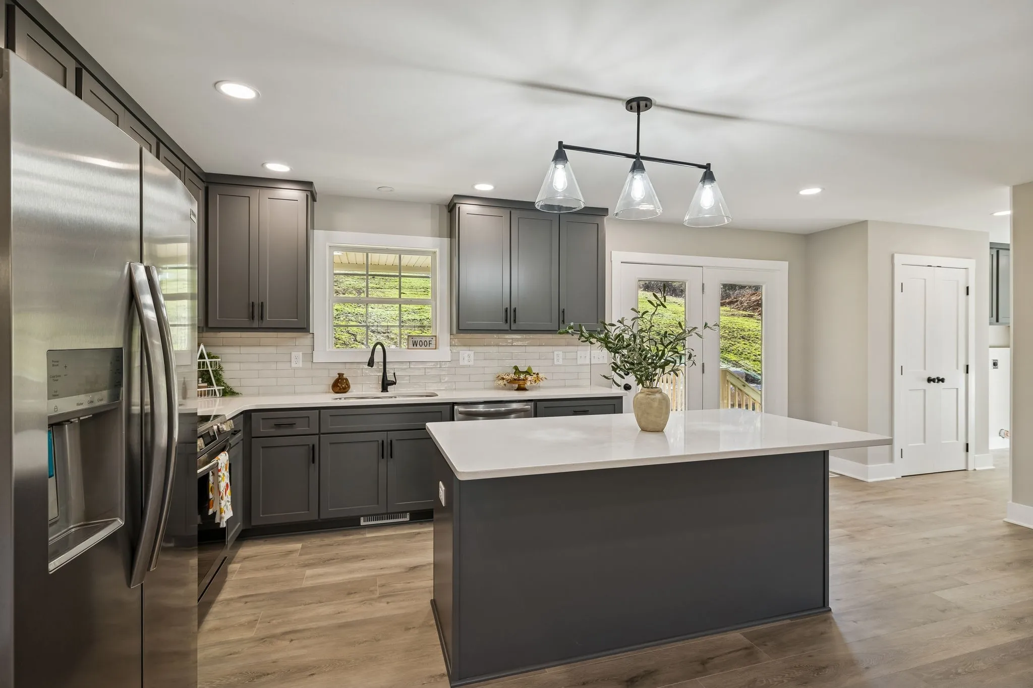 This beautiful 1,400 sq. ft. home is ready for its new family in 2026. Thoughtfully designed with modern style throughout, the home features an open-concept living area with vaulted ceilings and a spacious kitchen highlighted by granite countertops, custom cabinetry, and 42-inch upper cabinets that extend to the ceiling. A large eat-at island and stainless steel appliances make the kitchen ideal for both everyday living and entertaining.