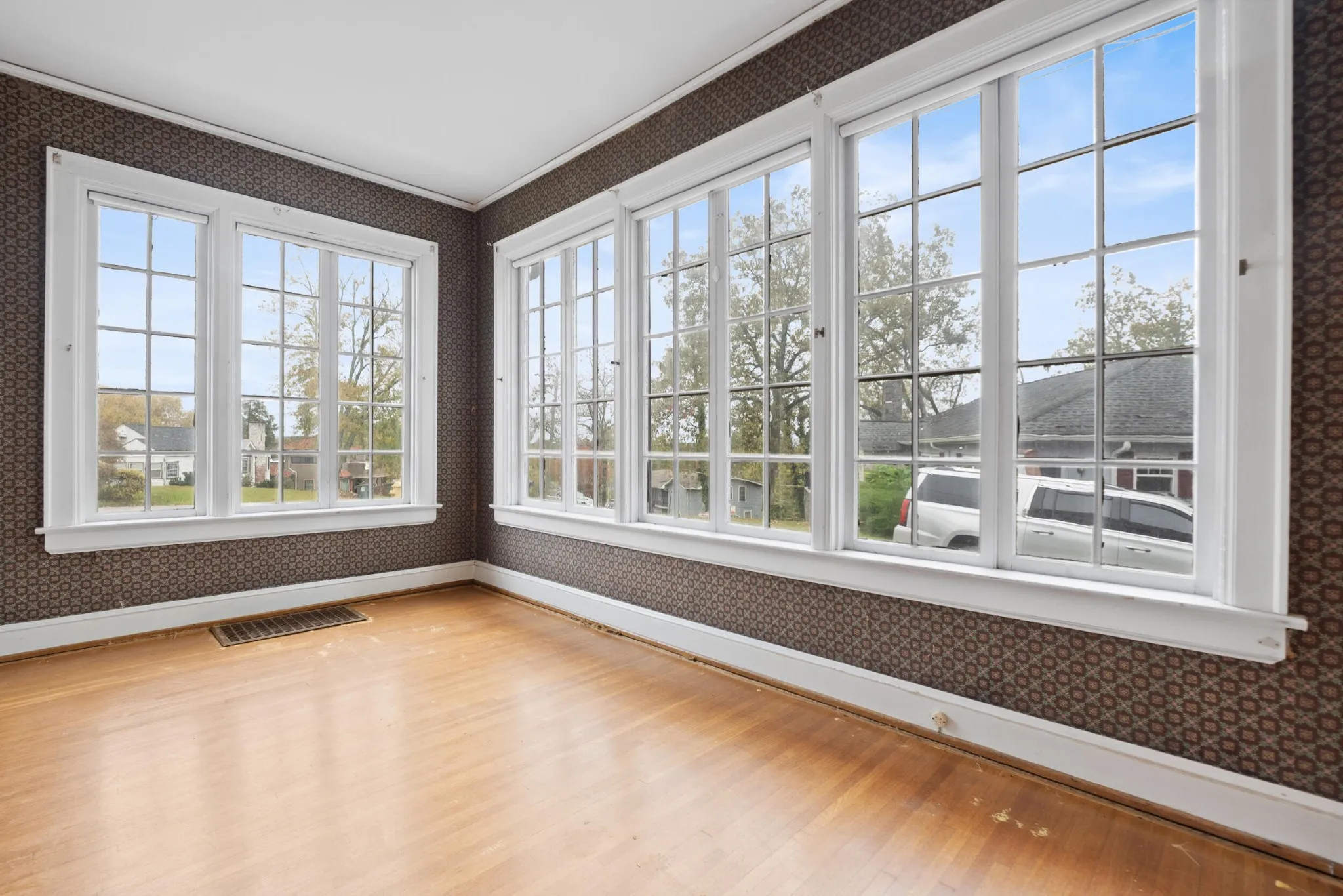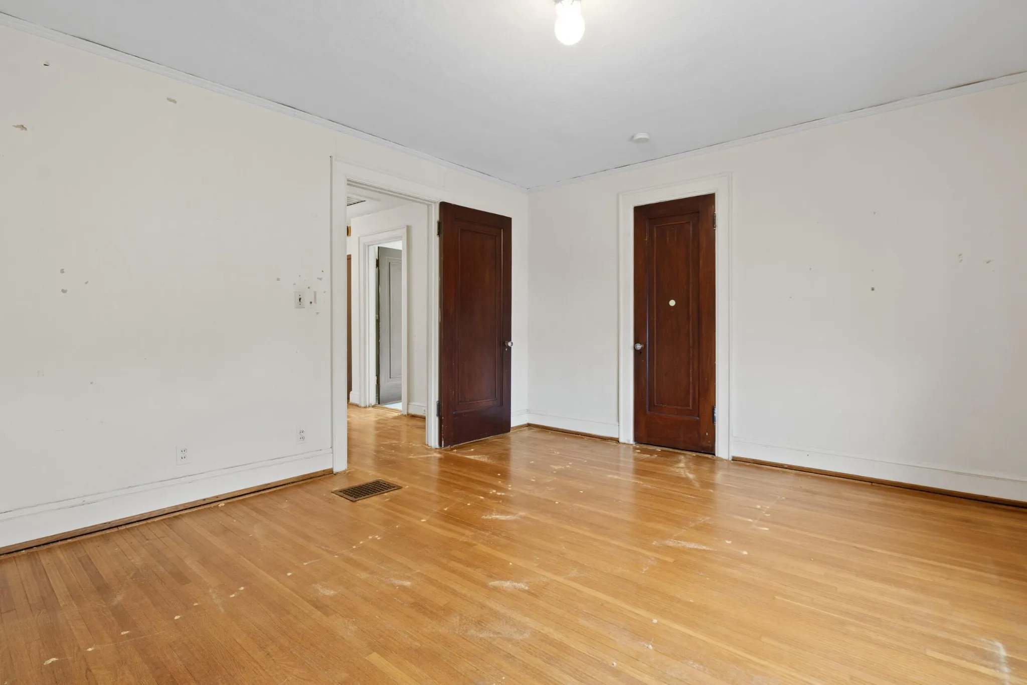 Upstairs, find three oversized bedrooms and full bathroom– with the classic style of its era. Sneak a peak at the home’s historical past with a small kitchenette located in one of the largest bedrooms. Outside, a freshly painted back deck overlooks a private yard, creating a peaceful retreat waiting to be converted to the yard of your dreams. Recent updates include a newer roof, and recently replaced HVAC.