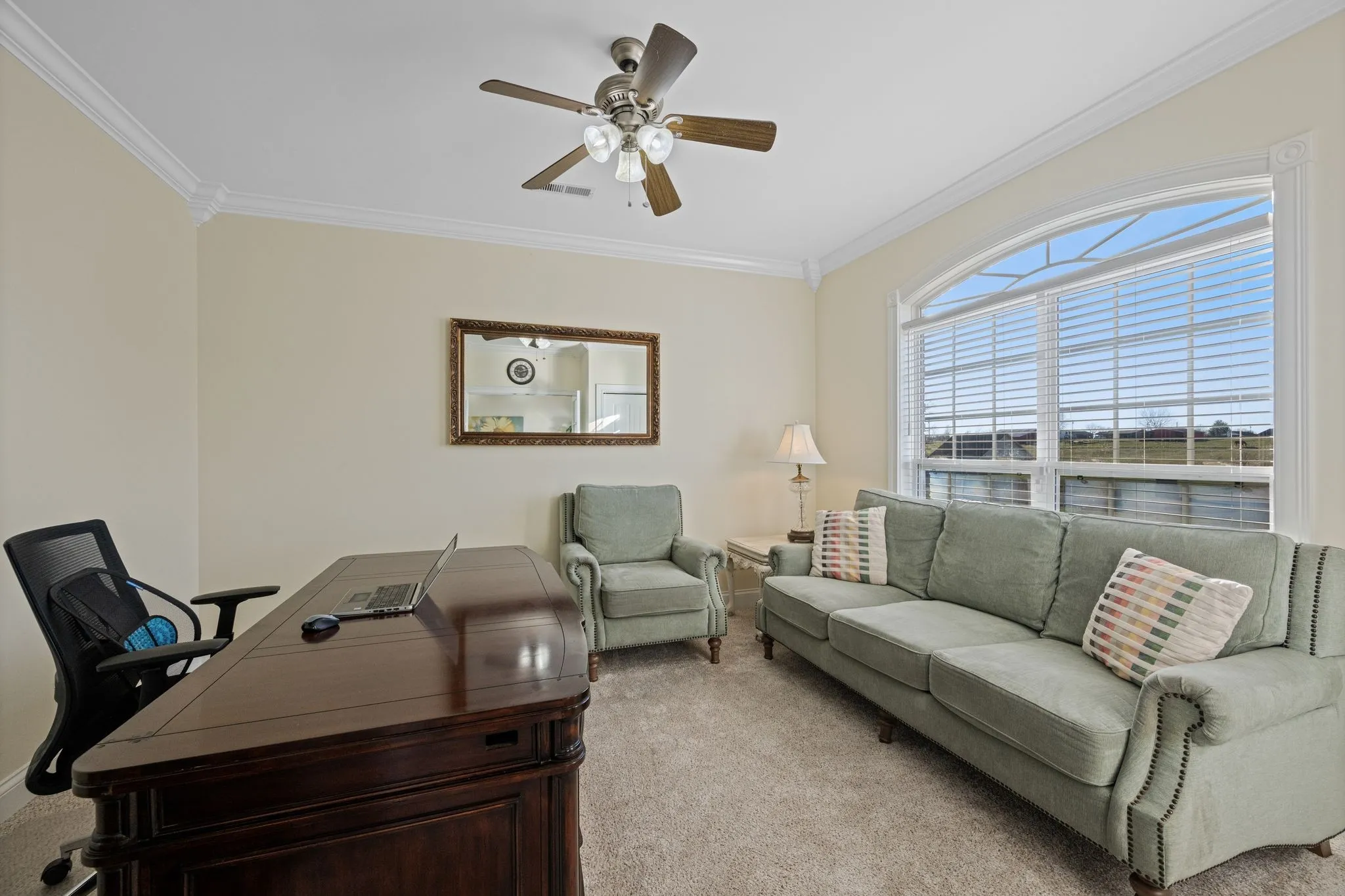 Pride of Ownership is apparent in this beautiful, open, light & bright 2BR/2BA plus office one-level home on a sprawling 0.46 acre lot that backs up to a private farm/field – no neighbors behind you! Custom finishes include double trey ceilings, extensive crown moulding & trim work, transom windows, built-in cabinetry and more. The home office with french doors has a closet and could potentially serve as an additional bedroom (however, home’s septic is permitted for 2 BR). Enjoy peaceful outdoor living with the large covered front porch, and covered rear porch with relaxing porch swing. 2-car rear entry garage plus lots of extra parking for guests. Low-maintenance all brick exterior. Enjoy an easy 25 mile commute to Huntsville, and just 10 miles south of downtown Fayetteville – this home offers comfort, convenience, and privacy in one exceptional package. NO HOA FEES and NO CITY TAXES! Make this home yours today!