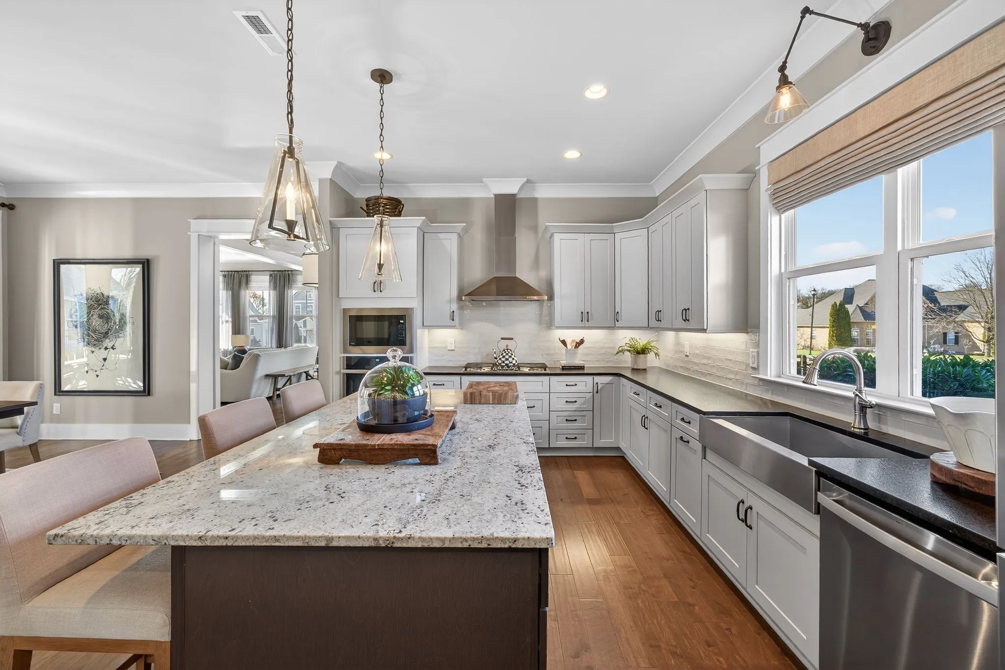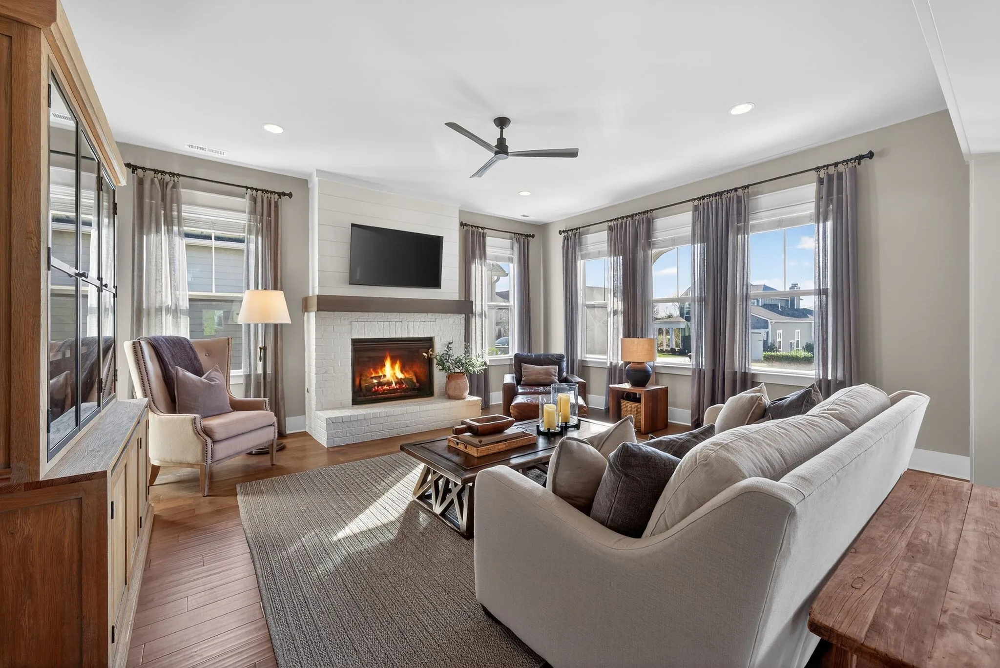 $10,000 Lender incentive! Situated in a desirable, boutique neighborhood in Williamson County, this home has the “Wow” factor showcasing stunning architecture, character, and fine touches throughout: Restoration Hardware, Pottery Barn, Graham’s Lighting fixtures- hardware & draperies remain – Highly walkable location- dining, Harvey park, sidewalks and retail! The moment you step inside, you feel at home. High ceilings give a grand impression that you have to see in person. Welcoming entry, wood flooring throughout home, accent walls, living room w/ fireplace, primary and secondary bedroom/office on the main level. Secondary bath offers walk-in tiled shower and designer wall paper. Open designed, spacious kitchen with generous island, leathered granite countertops, wall oven, walk-in pantry, and gas cooktop -overlooking a dedicated dining area. Primary suite with vaulted ceiling. Spa-like Primary bath- extensive quartz dual vanity, freestanding tub, and extended, tiled shower. Floating design staircase leads to thoughtfully laid out upper level. Recreation room (or 5th BR) with walk-in closet and private bath. 2 Additional Bedrooms- Jack-Jill Bath w/ private vanity areas. Exterior features a side “tower” with windows, and friend’s entry, tasteful landscaping, lighting, firepit, front porch, and covered entertainer’s porch. This home and neighborhood are not “cookie cutter!” Come and see the difference! Zoned for new Amanda North elementary school! *$10,000 Lender Incentive with Hilary Hollingsworth-Modern Mortgage 615-236-6054 for qualified buyers to use for closing costs or rate buy down!