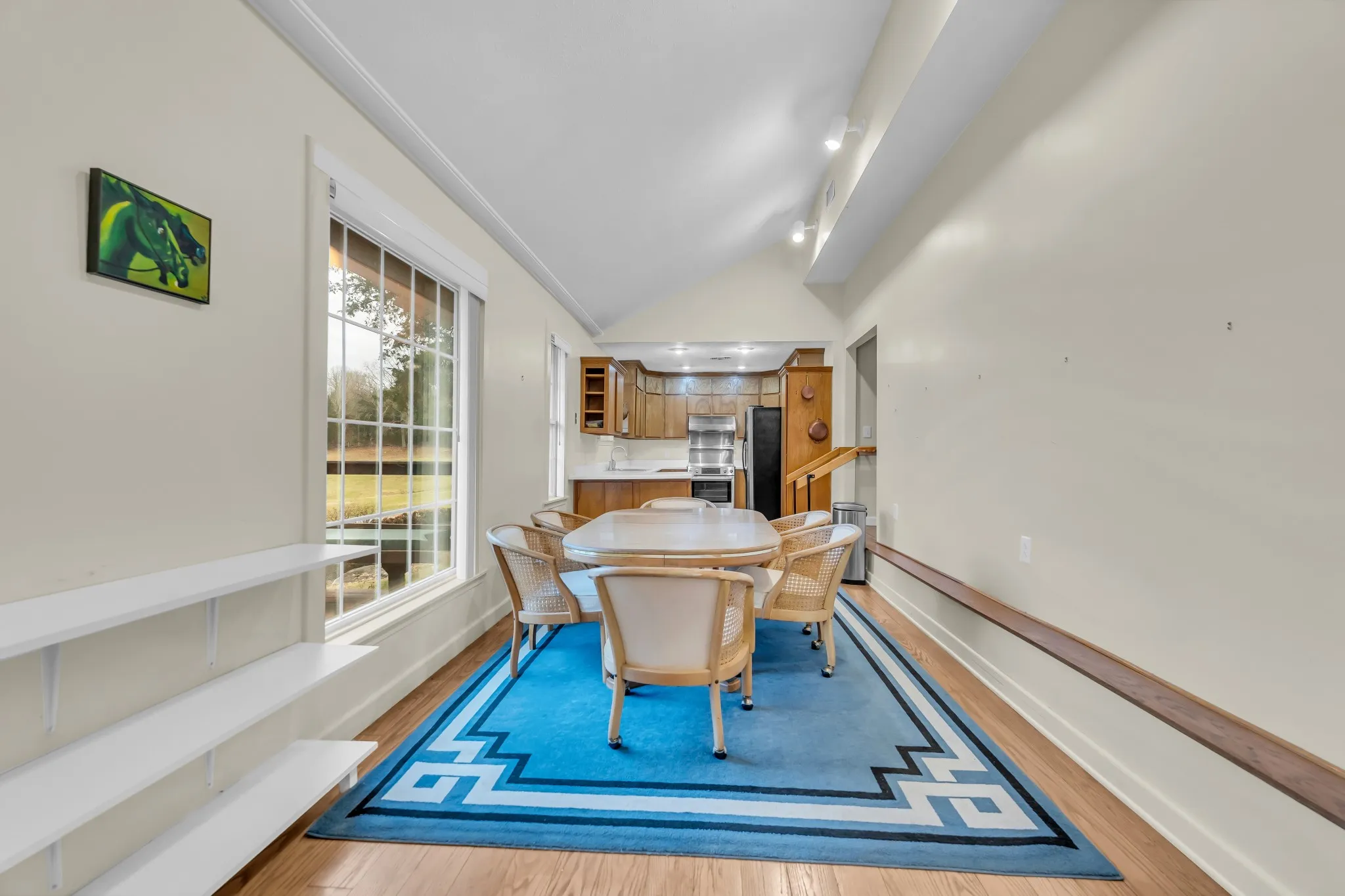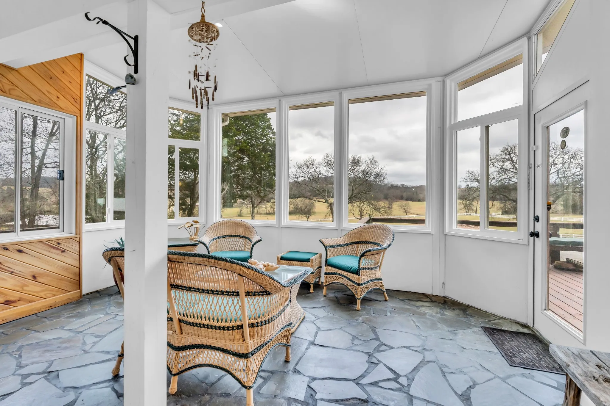 The home features a unique floor-to-ceiling glass solarium overlooking the front pasture—perfect for morning coffee, sunsets, or quiet reflection. A small recording studio adds creative flexibility, and a separate guest quarters with a private kitchenette is ideal for extended family, caretaker, or multi-generational living. Additional improvements include a detached 3-car garage and a two-stall horse barn with a dedicated water source.