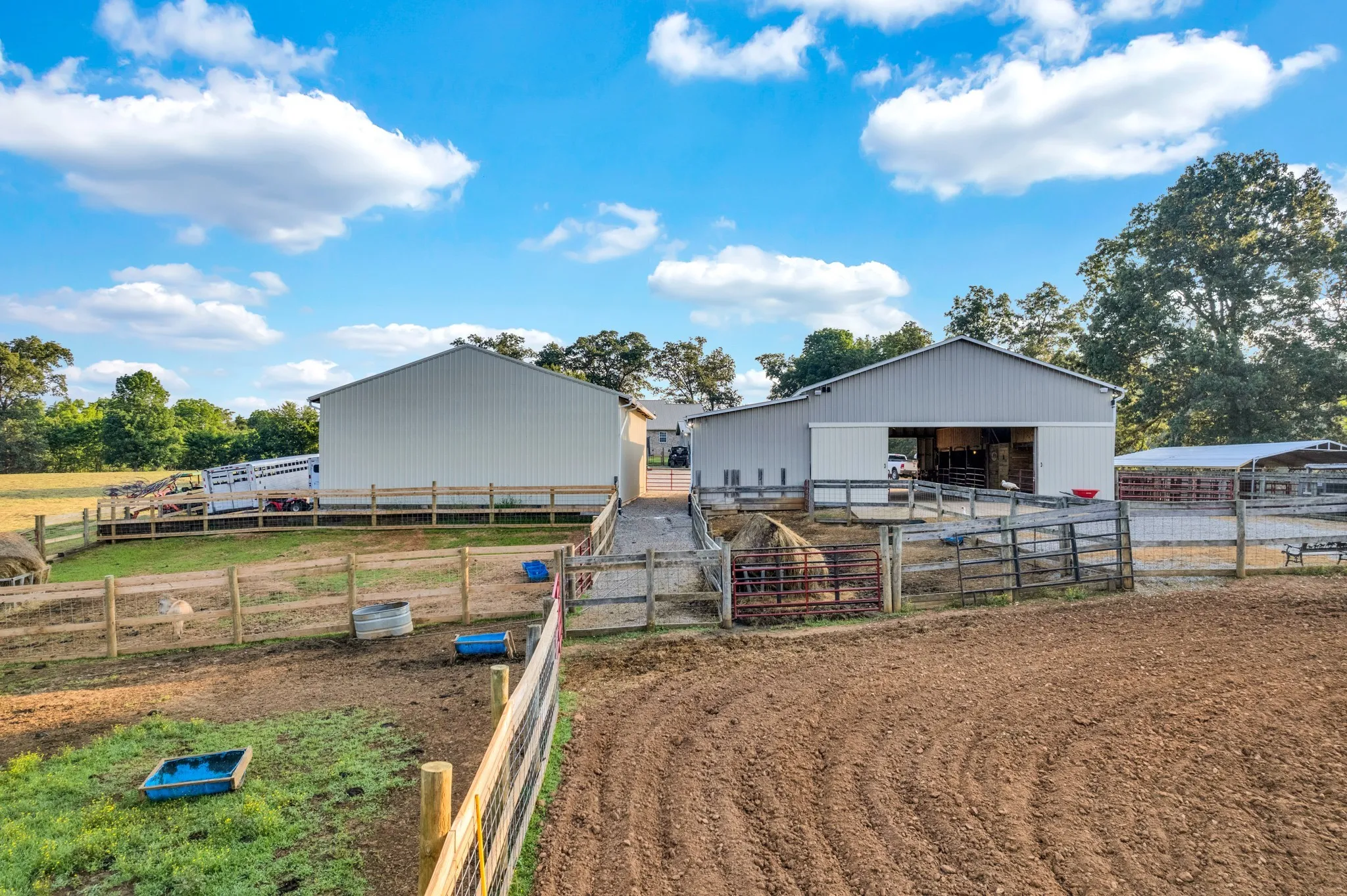 This stunning countryside estate offers the perfect blend of modern comfort and rural charm on 15 lush, greenbelt-applied acres. The main home boasts 3 bedrooms, 3 bathrooms, and 2,060 sqft of beautifully maintained living space with hardwood floors throughout. The full 1,800 sqft basement features its own HVAC system, 2 bonus rooms and a full bathroom. Outside you’ll find a 55×50 main barn with 8 stalls, overhead loft space, 50 amp RV hookup, storage room, wifi installed, security cameras, and an exterior speak system for agritourism events. There is a 2025 built 40×50 hay barn with two chicken coops, four pens with goat fencing, and four pens with cattle panels and also a 500+ sqft workshop with a concrete safe room, electricity, LED lighting and more! This private homestead also features a one-acre pond recently stocked with carp, blue gill, bass, catfish, and minnows, and a 30×54 above ground pool with a brand new sand pump, new liner, and deck with electrical outlets. Situated right between Sparta and Cookeville, this property is truly one-of-a kind! It’s the ultimate homestead/farming dream!