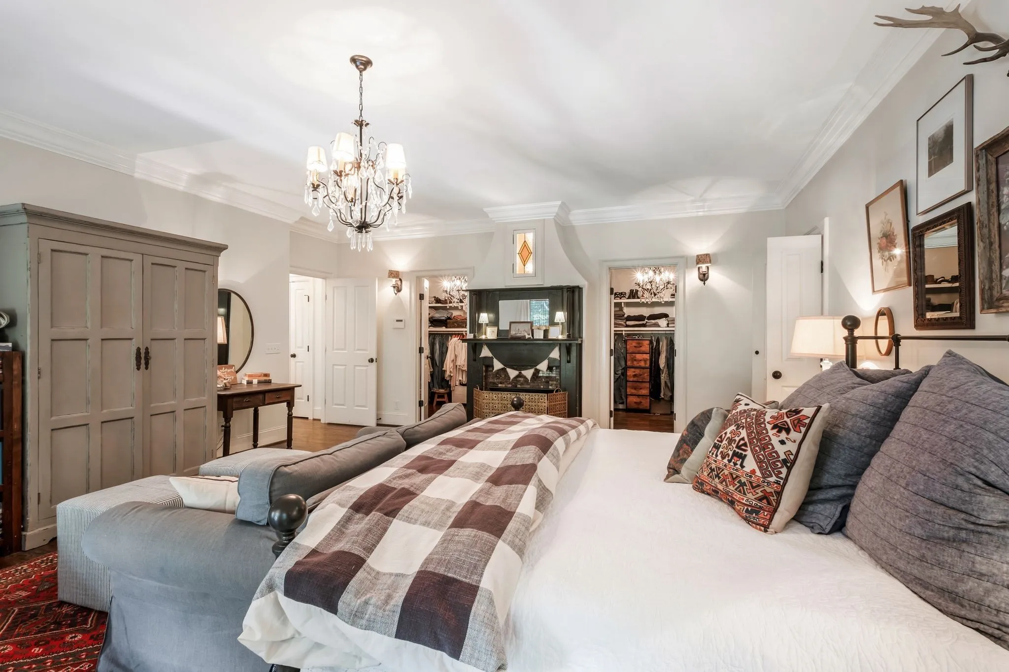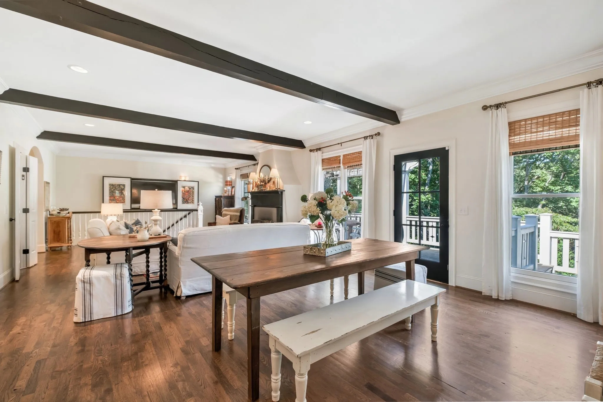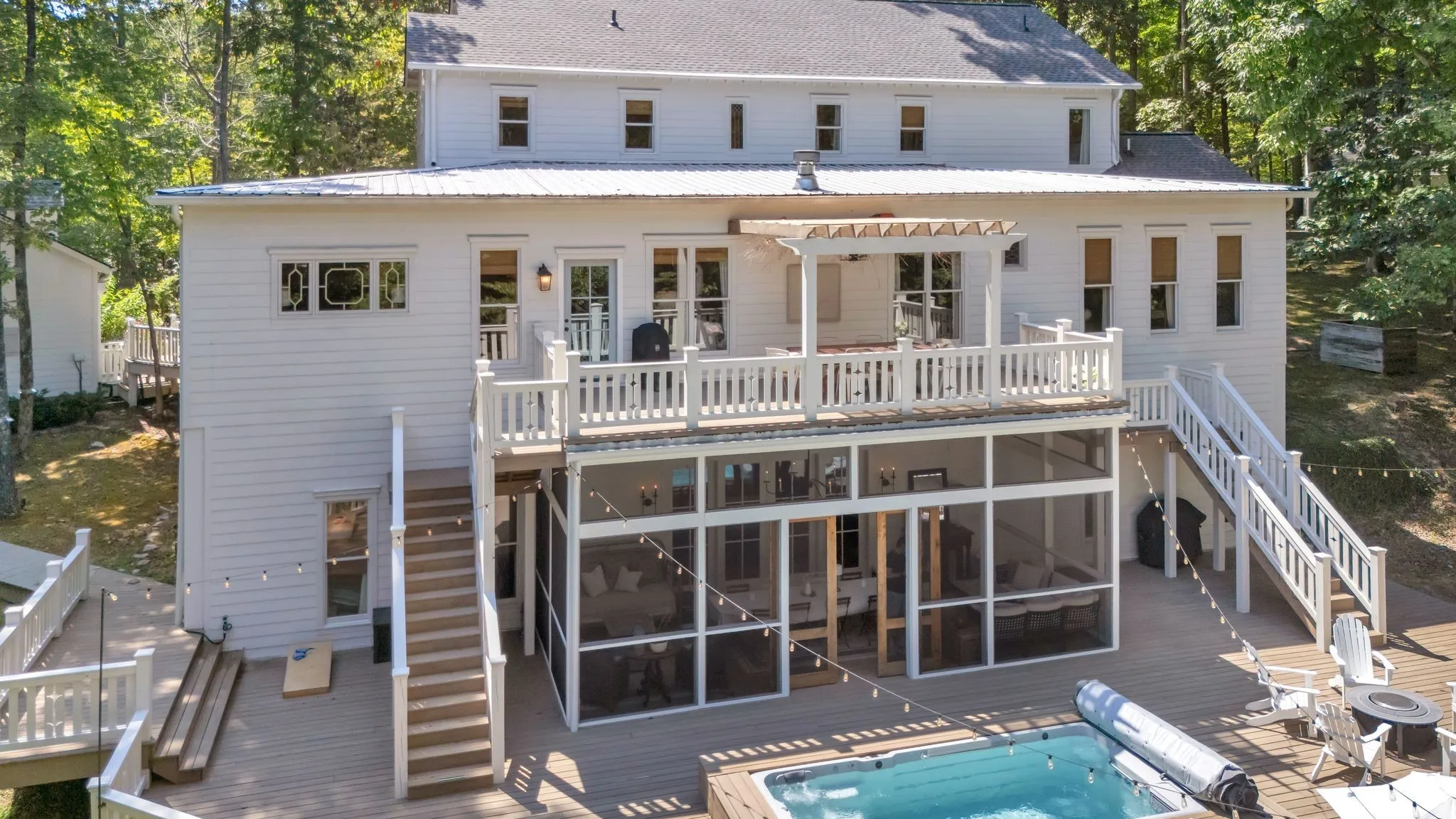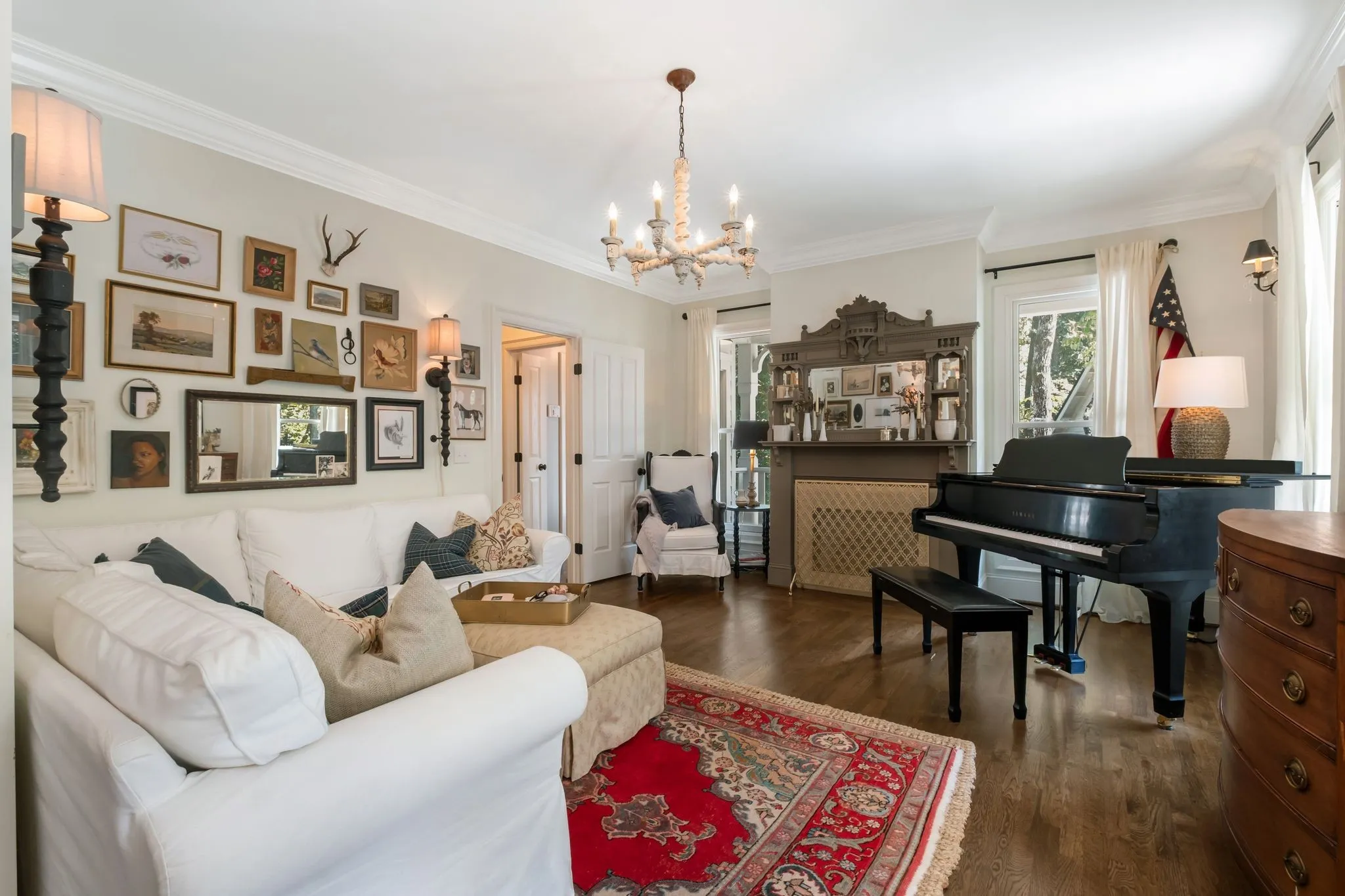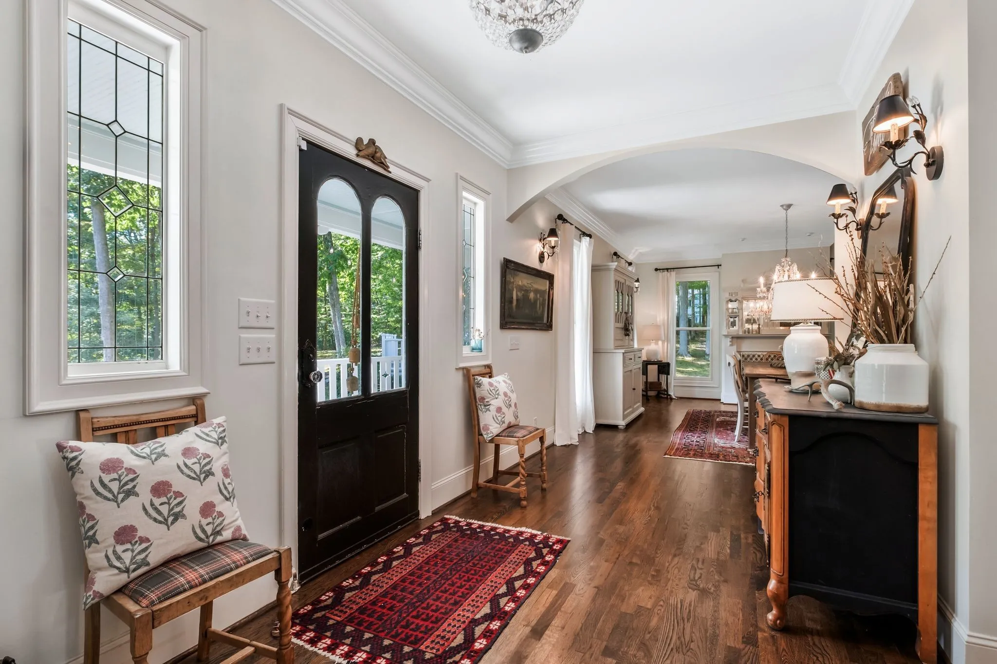 Tucked down a private winding road with trees lined on each side, sits a Victorian Farmhouse, the kind books are written about. The home features 3 floors with multiple living spaces and nooks for reading and dreaming. High ceilings and abundant natural light. Multi level decking, wrap around covered porches for early morning lovers. A swim spa. European Stain glass windows, an imported front door, and 4 fireplace mantles – each carefully curated and over 100 yrs old. The detailed molding, antique hardware, striking chandeliers, and solid hardwood floors draw you in.