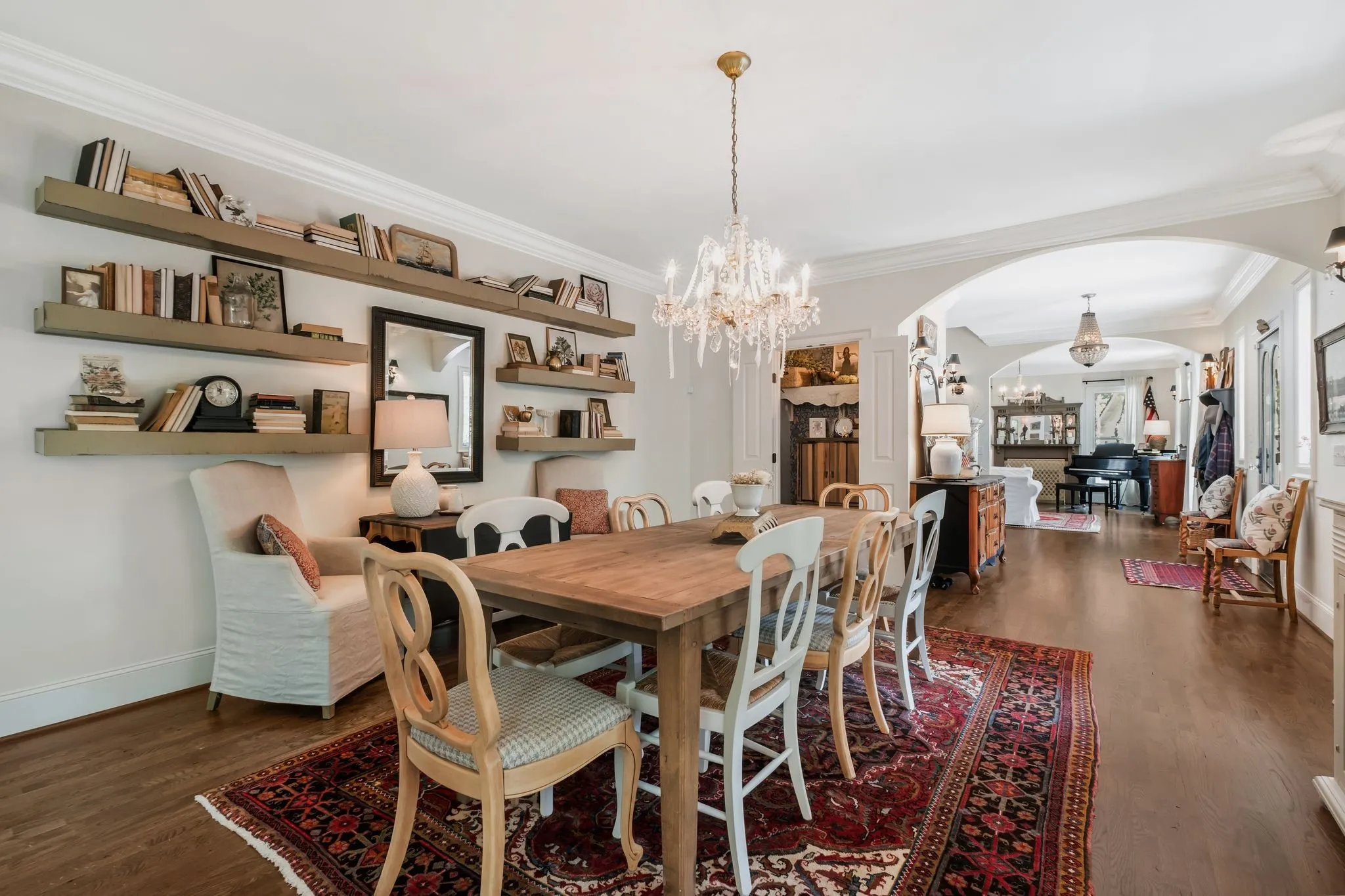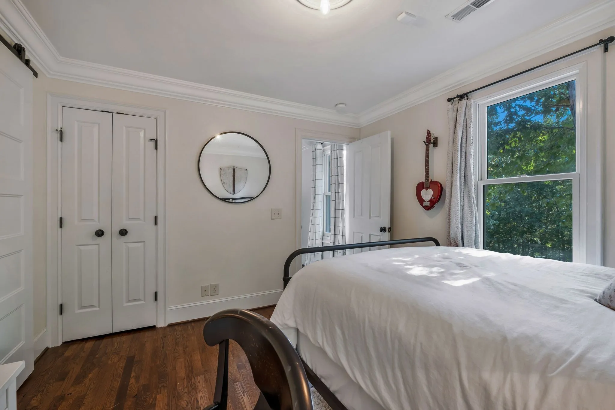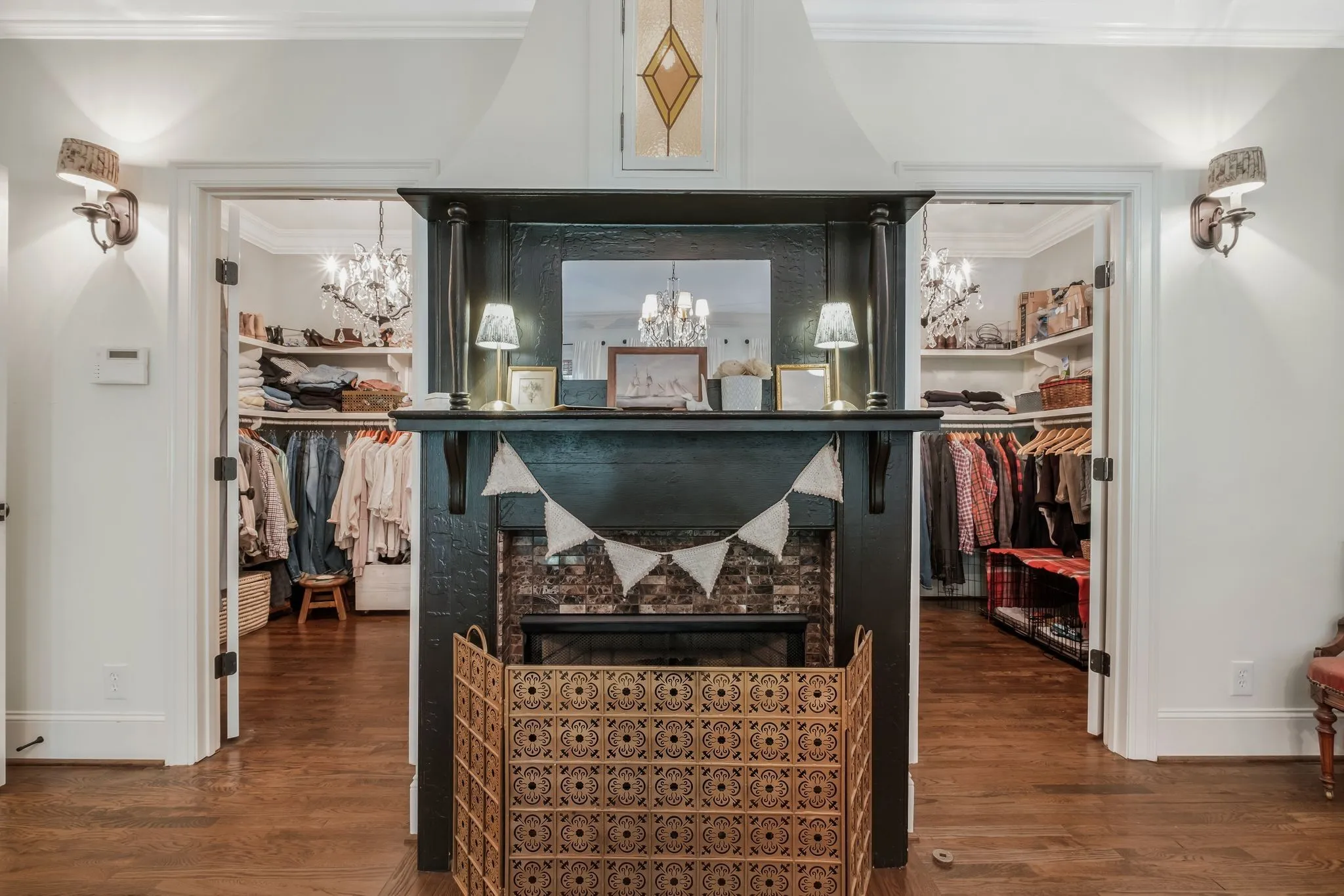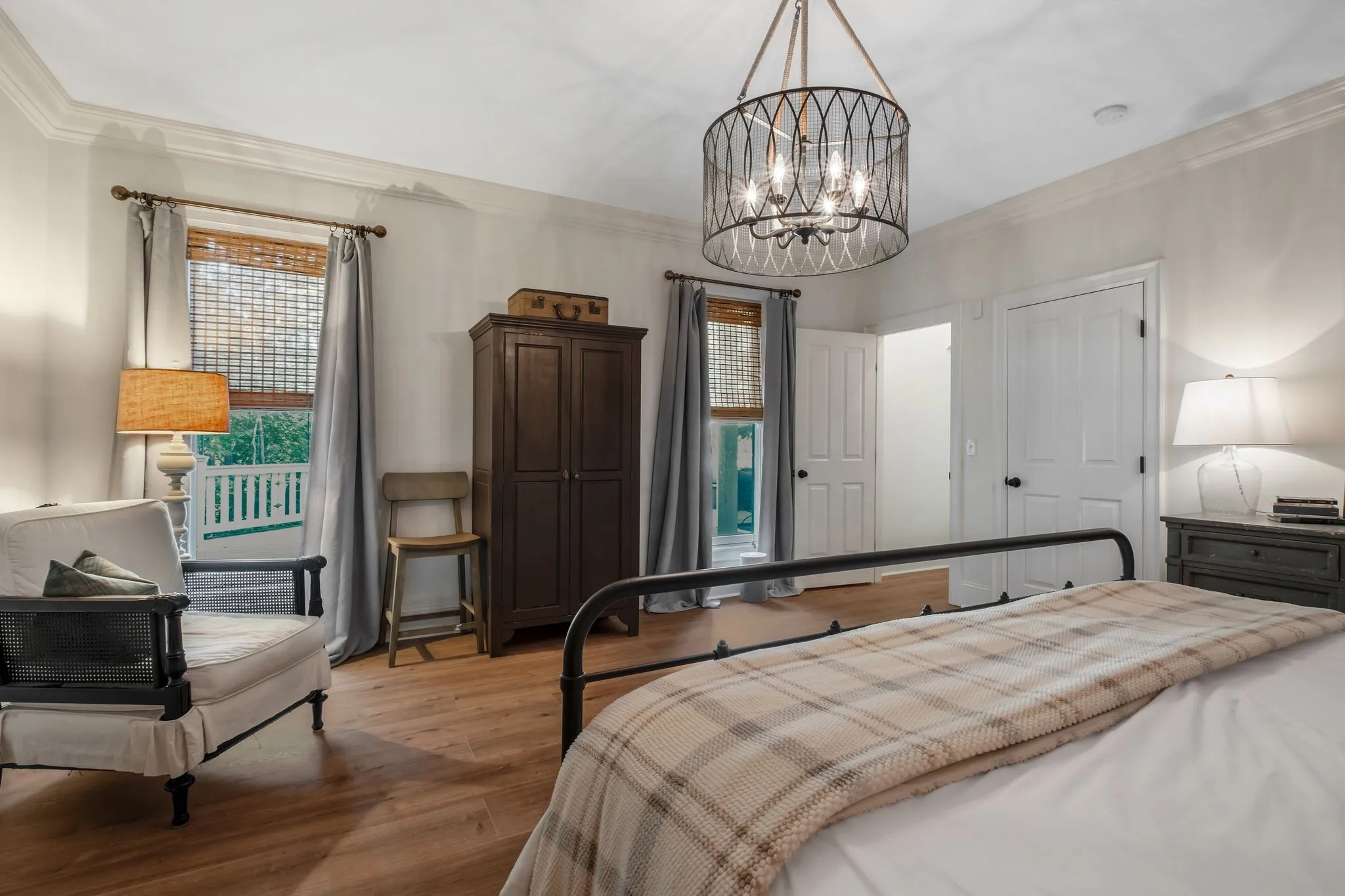 Tucked down a private winding road with trees lined on each side, sits a Victorian Farmhouse, the kind books are written about. The home features 3 floors with multiple living spaces and nooks for reading and dreaming. High ceilings and abundant natural light. Multi level decking, wrap around covered porches for early morning lovers. A swim spa. European Stain glass windows, an imported front door, and 4 fireplace mantles – each carefully curated and over 100 yrs old. The detailed molding, antique hardware, striking chandeliers, and solid hardwood floors draw you in.
