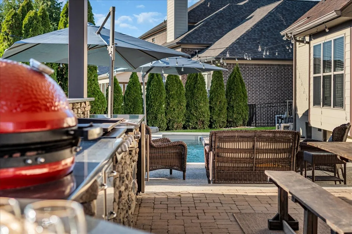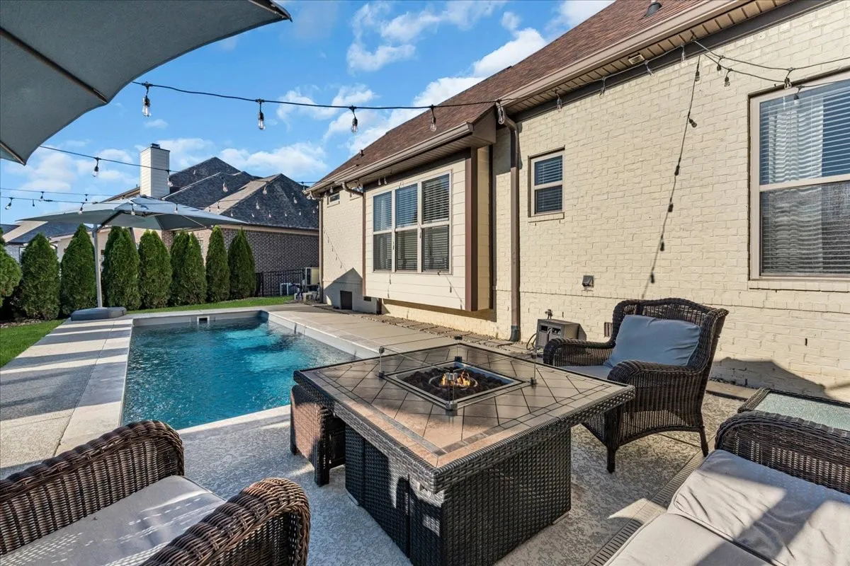 Luxury meets family retreat in this beautifully crafted home thoughtfully designed for gathering, hosting, relaxing and enjoying every chapter of life. From the moment you step inside, you’re greeted with warm hardwood floors and carefully curated details, exquisite trim and custom molding. The primary suite, privately tucked away, is one of two bedrooms conveniently located on the main level. A second en-suite bedroom is perfect for an office, multigenerational living or nursery. In the heart of the home, the exceptional gourmet kitchen is designed everyday living and entertaining featuring two expansive walk-in pantries, custom cabinetry, granite countertops and oversized island that seats six, farmhouse sink, gas range with a pot filler and a thoughtfully plumbed cabinet for an ice machine. Stunning cedar beamed ceilings in the family room and primary bedroom add warmth and architectural charm, while the ventless gas fireplace adds inviting ambiance. Upstairs, three additional bedrooms, two en-suite, have abundant storage in addition to large closets. A spacious bonus room with a wet bar creates the perfect retreat for recreation or a private theater. The covered built-in outdoor kitchen boasts a Blackstone, Komodo Joe, gas burners, and two refrigerators is an entertainer’s dream. Whether playing volleyball or taking laps in the 4.5 ft deep pool, sitting by the fire table or clipping herbs from the garden nook, this outdoor space is designed to make lasting memories. The three-car garage features a pristine epoxy floor and custom built-in cabinetry. Stay organized with a charming mudroom drop zone, large laundry room with a sink, and two additional downstairs closets. Alice Circle Cherry Grove subdivision is within walking distance to Spring Station Middle School and Summit High School, with sidewalks leading all the way to June Lake. Located in a highly sought after neighborhood, but situated on a circle that enjoys little to no traffic and great neighbors.