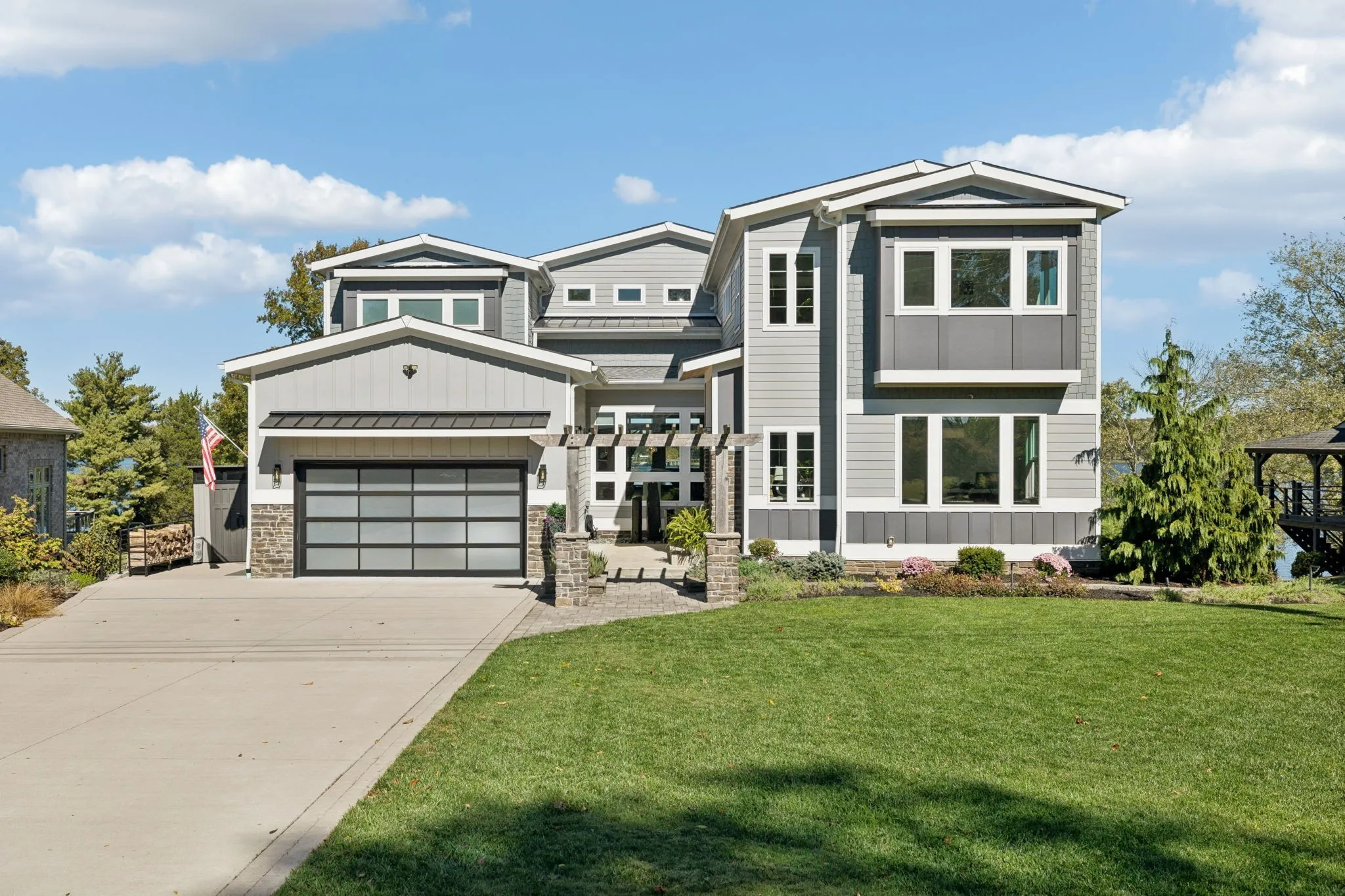 The fully finished basement is an entertainer’s dream, offering a gym, golf simulator, theater room, bar, wine room, and a custom dog spa. Thoughtfully designed and impeccably executed, this one-of-a-kind property delivers an unparalleled lakeside lifestyle.