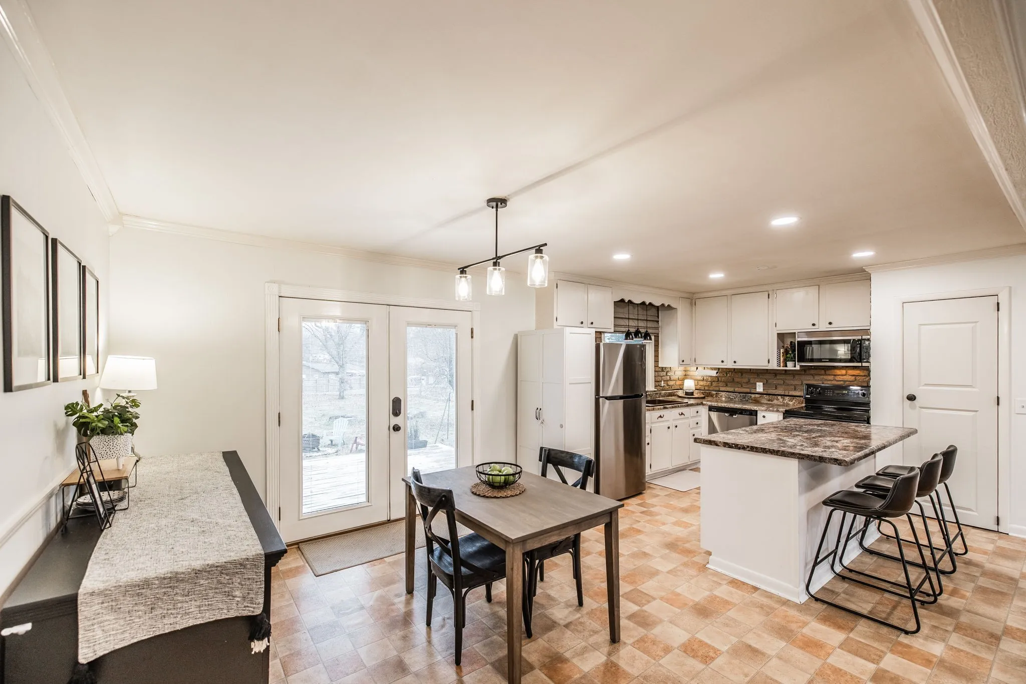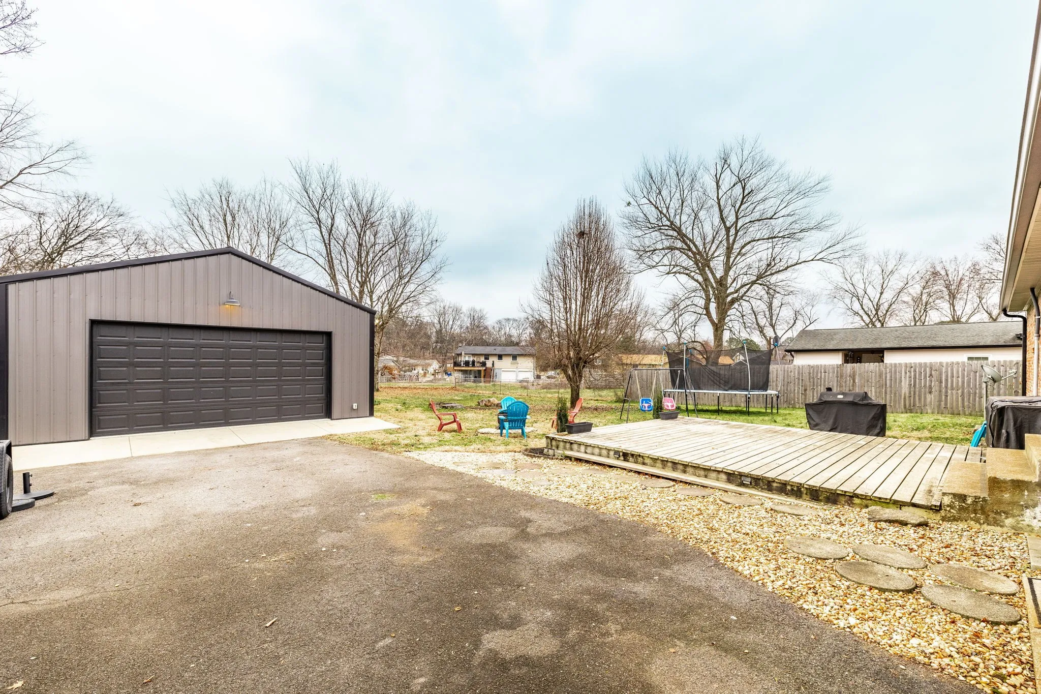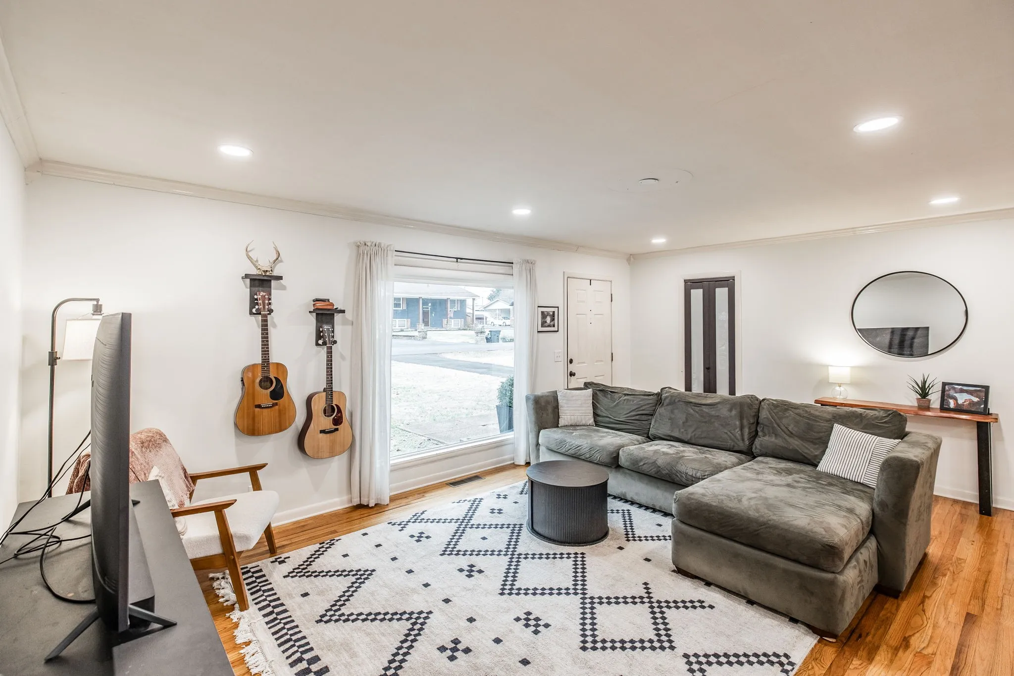 Welcome to this beautiful one-level ranch in Hendersonville, set on nearly half an acre and a block from Old Hickory Lake. This all-brick home blends mid-century charm with modern functionality, offering a bright, open-concept layout designed for enjoyable everyday living and entertaining. The open kitchen features a brick backsplash, island with countertop seating, and a seamless flow into the dining and great room, highlighted by hardwood floors and a large picture window that floods the space with natural light. A separate family/bonus room offers versatile space for work, play, or relaxing for the whole family. Step outside to a spacious deck overlooking the fully fenced backyard with mature trees, perfect for pets, gatherings, or future garden beds. A standout feature is the newly built (2023) 32’x24′ detached garage – Fully Climate Controlled, Mini Split Heat & Air, Foam Insulation and 200 amp service – ideal for workshop space, boat storage, or extra vehicles. New Roof on home in 2022. Outdoor enthusiasts will appreciate the unbeatable location from Walton Ferry Boat Launch, Sanders Ferry Park & boat Launch, Lock 3 Access Beach, Picnic Area & boat launch, as well as, multiple marinas, Hendersonville Board Walk and great dining options all within minutes. Great walkable neighborhood – there is even a walking trail to Old Hickory Lake.