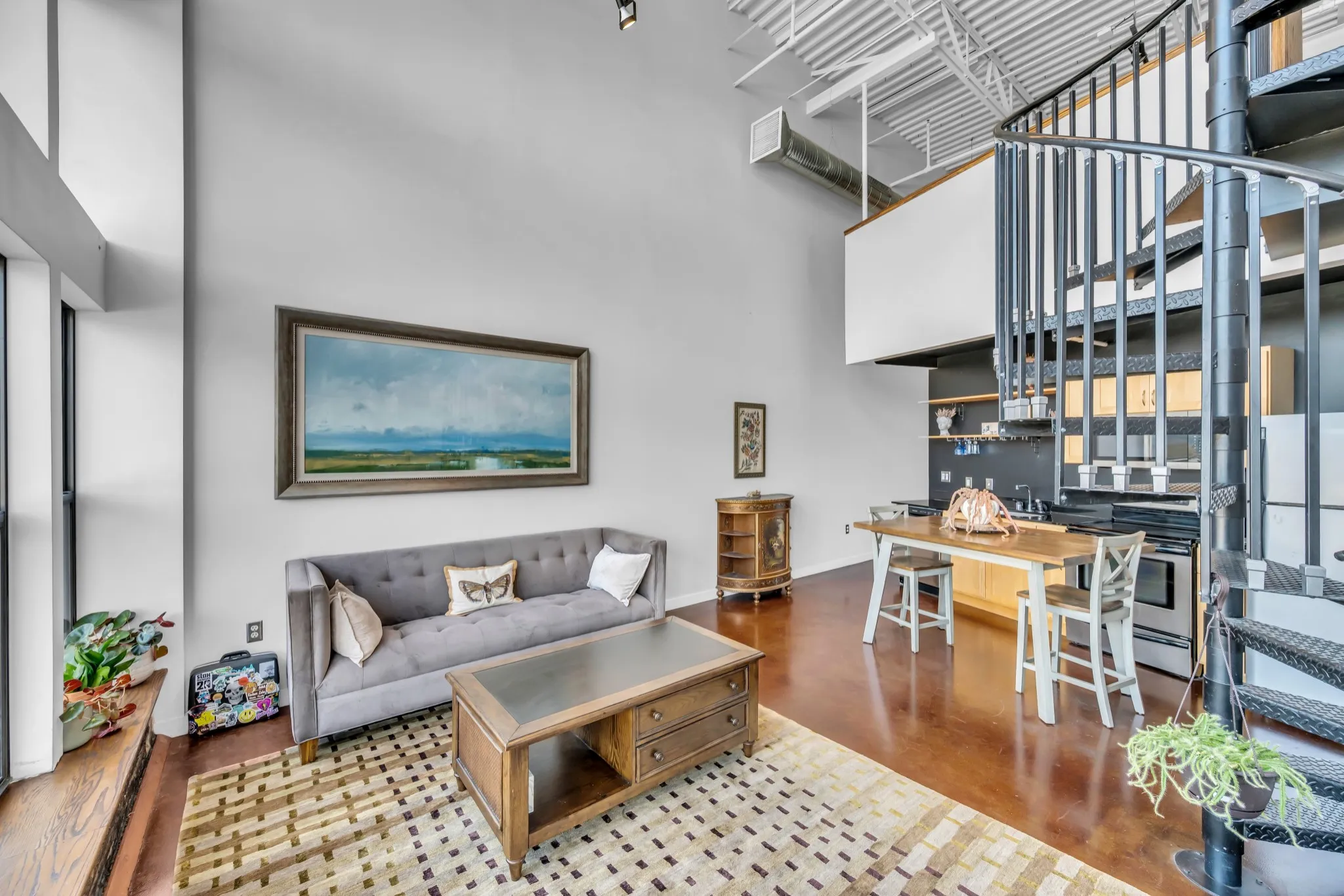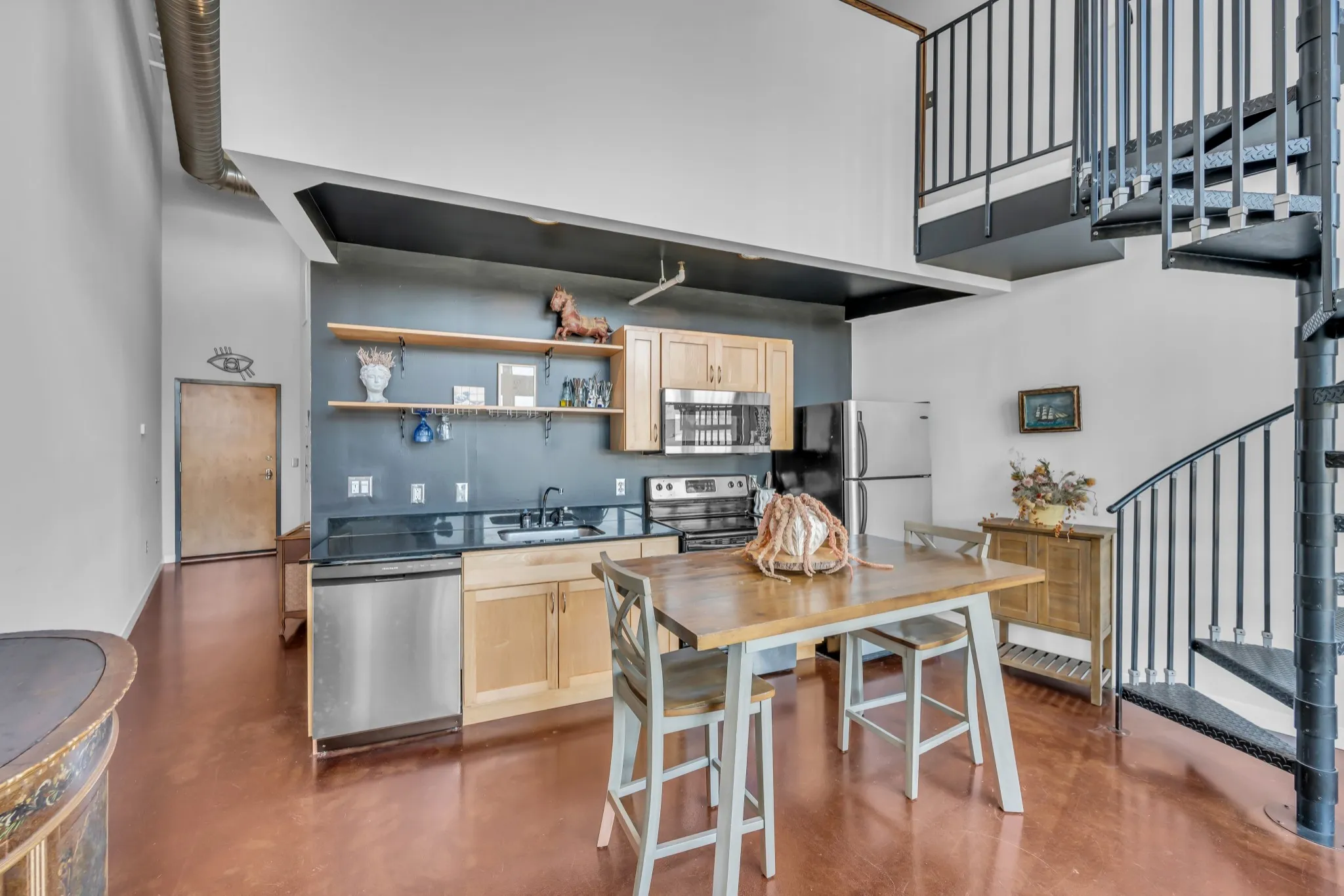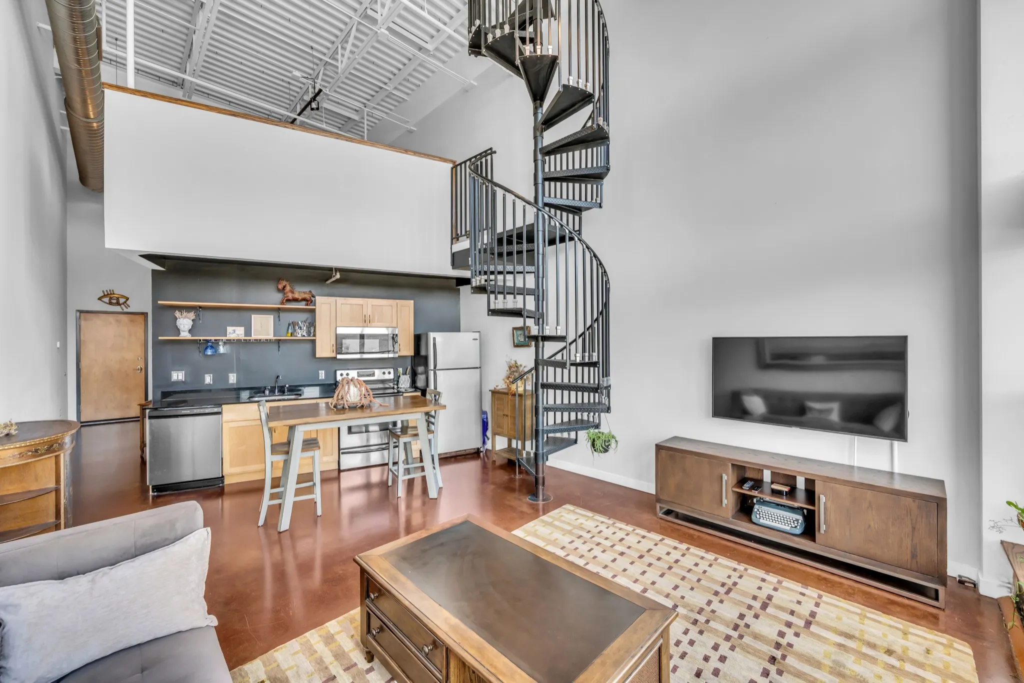 Welcome home to Werthan Lofts, one of Nashville’s most beloved, historic developments. This multi-level unit is one-of-a-kind with century-old brick accents, soaring ceilings, and a 20′ glass wall of windows. The dramatic spiral staircase leads to a lofted 2nd level bedroom/office and 3rd level office nook which opens to a private, rooftop terrace. The tastefully updated kitchen with granite countertops, stainless appliances, and open shelving is awash in natural sunlight. Renovated bathroom with ample storage and convenient combo washer/dryer. Development amenities include: gated entry, covered garage, 2 saltwater pools, multiple dog runs, large fitness/yoga room, bocce ball court, fire pit, and multiple grilling areas. Unbeatable location is a short stroll to popular restaurants, coffee shops, retail, Sounds baseball stadium, Farmers Market, plus quick highway/interstate access.