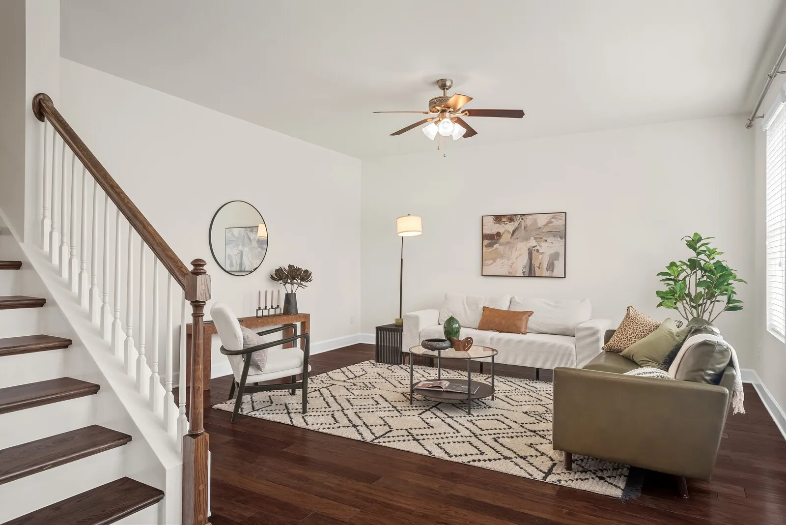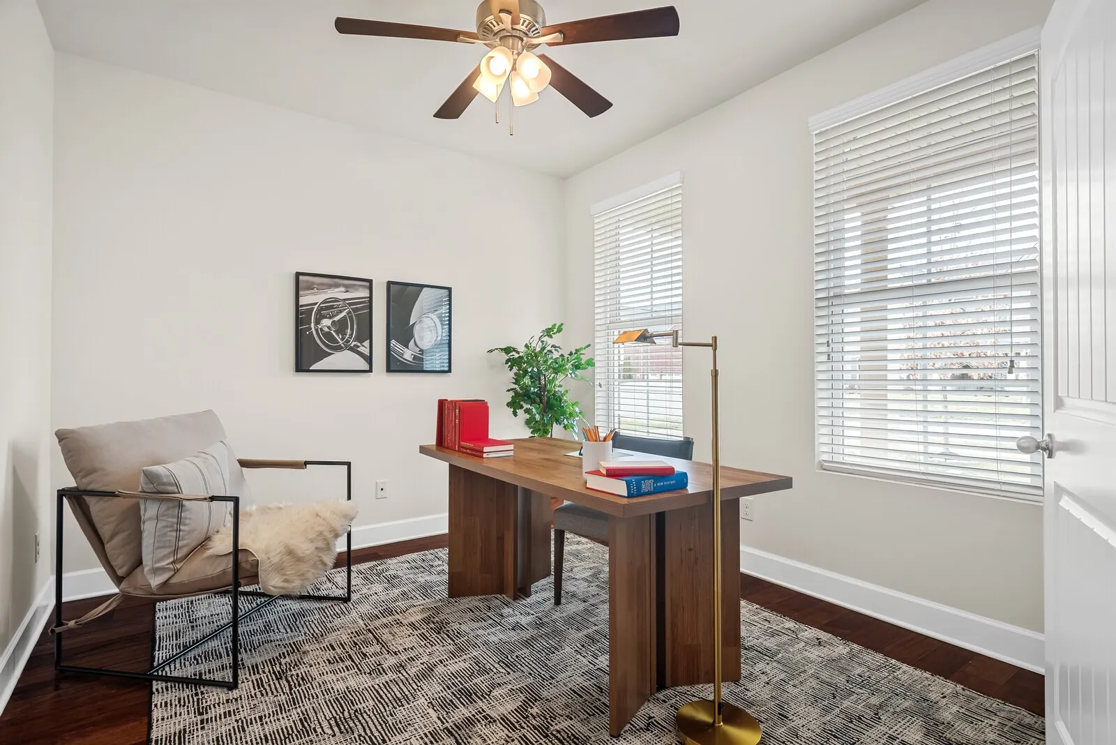 This home shows like new with fresh interior paint throughout, brand new upstairs carpet, and newly refinished hardwood floors. The open floor plan features a dedicated office on the main level, spacious living area, large kitchen island, stone countertops, stainless steel appliances, and hardwood flooring.