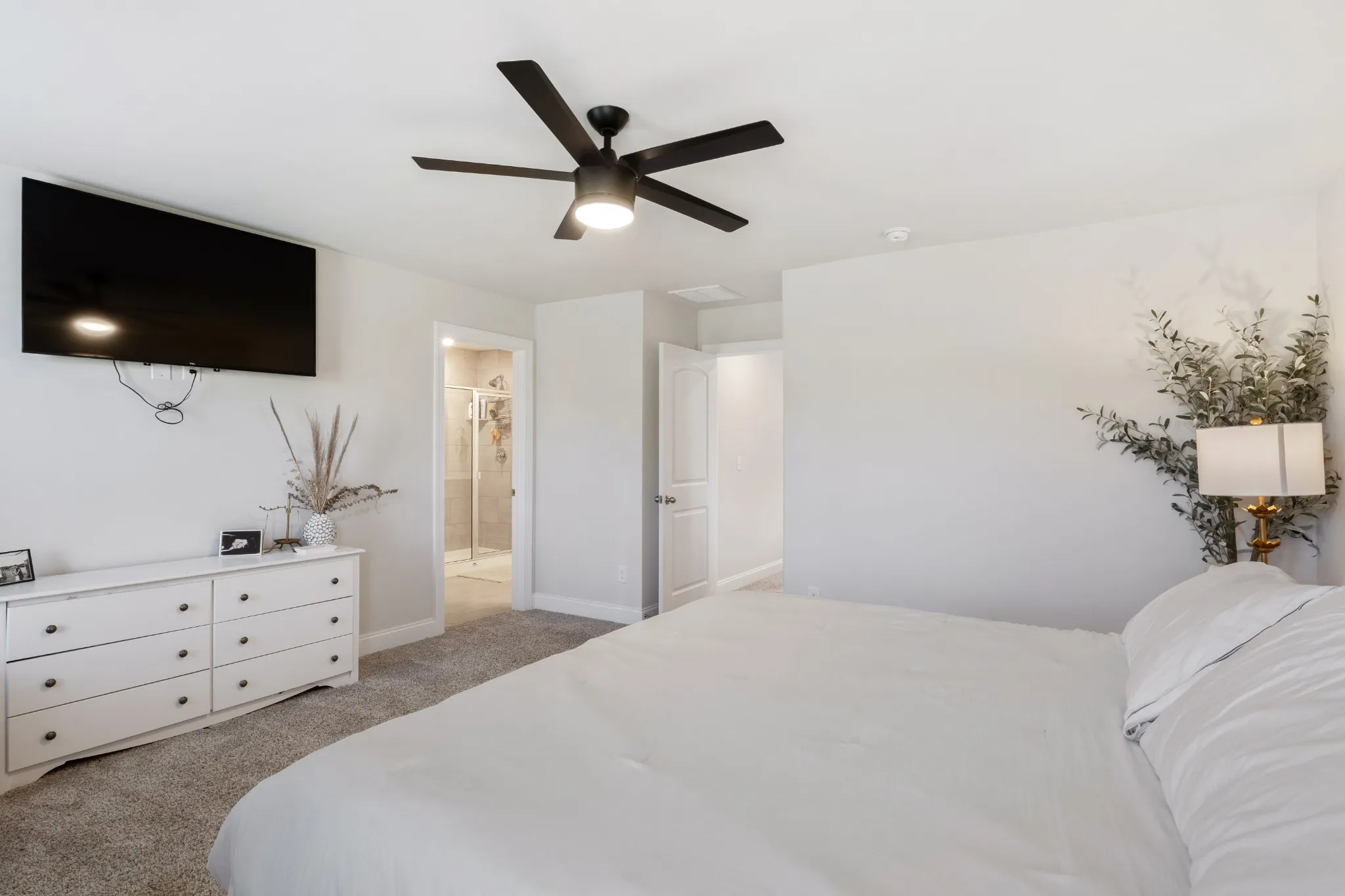 Upstairs, the generous primary suite features an an ensuite bath with dual vanities, a tiled walk-in shower, and an oversized walk-in closet. A versatile bonus space and loft—perfect for a home office, playroom, or additional living area, two additional bedrooms, a shared bath with dual vanities, and a laundry room complete the upper level.
