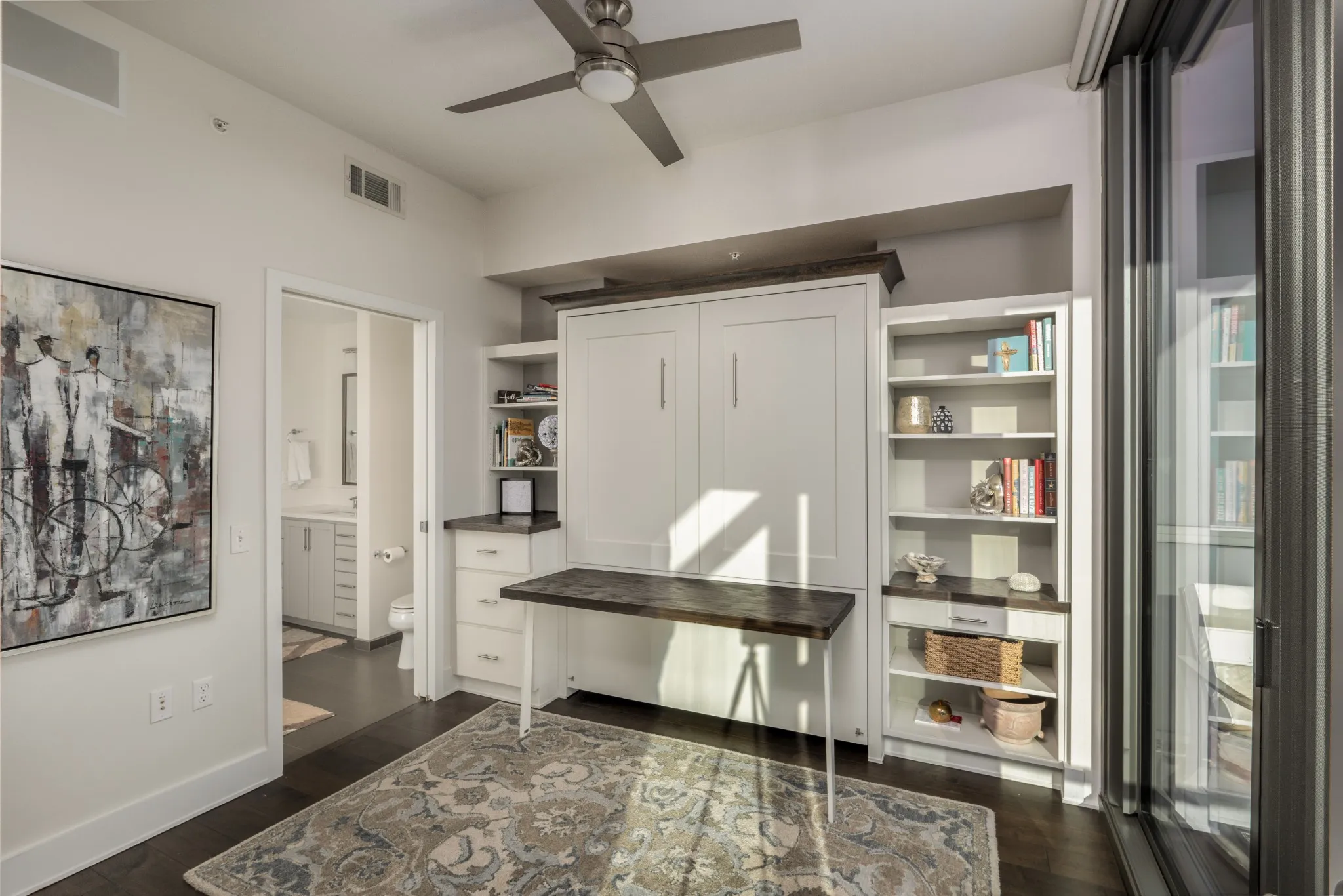 You won’t want to miss this meticulous renovated corner residence in Twelve Twelve, one of Nashville’s few LEED Certified condominium high-rises. This stunning property features two balconies and floor-to-ceiling, wall-to-wall wrap around glass complete with motorized shades. Updated flooring, appliances, and more. You may notice the built-in speakers in the photos, this condo is wired for sound throughout. From an amenity standpoint, you’ll enjoy one of the largest fitness centers in any condo building, a lush green space with outdoor fire pits, grills, and food prep facilities, a saltwater pool, spa, resident lounge, catering kitchen, two guest suites owned by the residents/HOA available for your guests. If you are a dog-owner, you’ll enjoy the pet relief area and dog wash, and may even find your furry friend enjoying a complimentary bone from the 24/7 front desk staff. This is a controlled-access building with gated, controlled-access parking, all just steps from dozens of restaurants and entertainment venues throughout the Gulch. This has been one of the best-selling and most sought-after floor plans in Twelve Twelve.