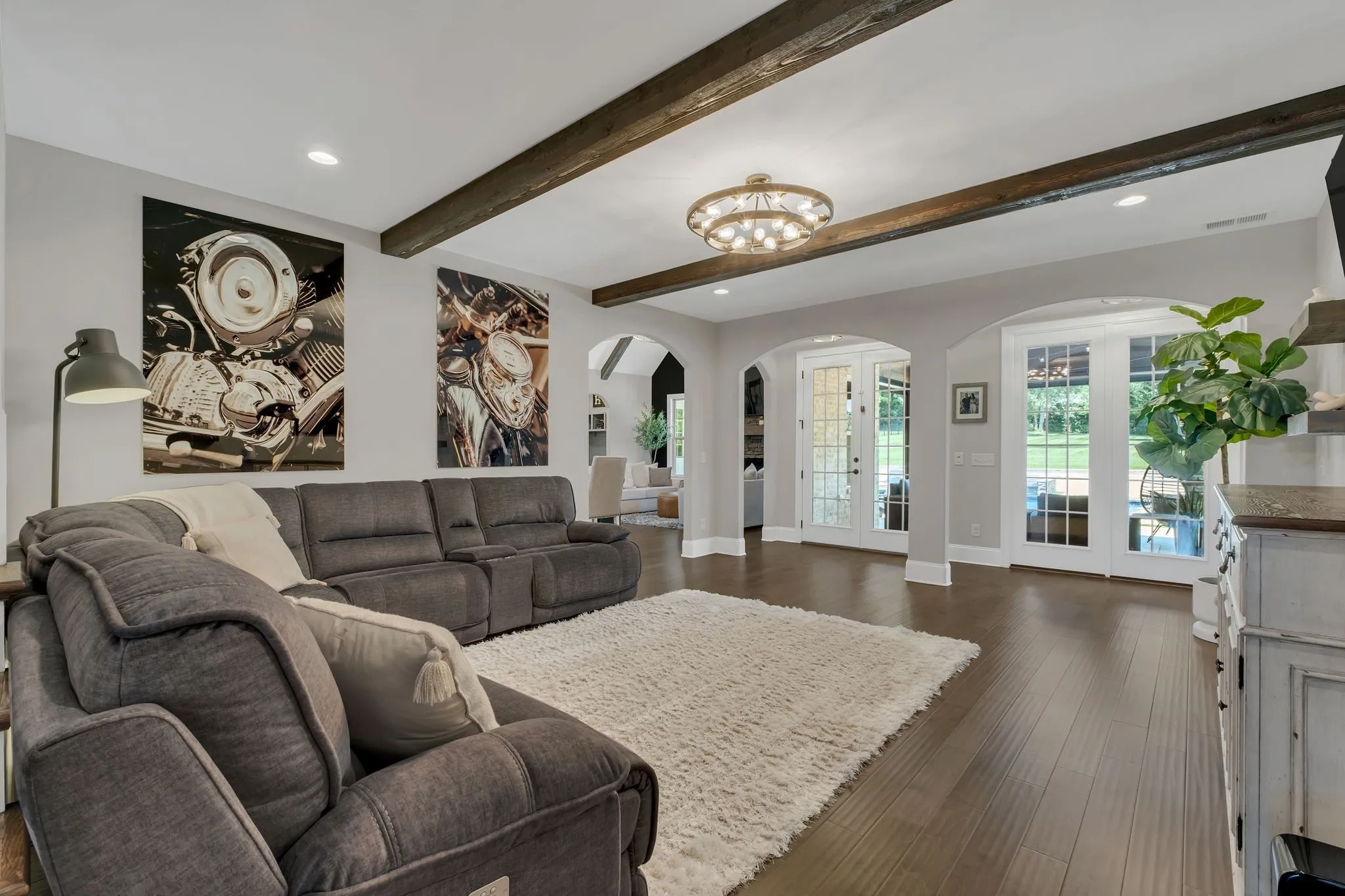 Additional luxury upgrades include cedar beams, enhanced custom closets, a beautifully custom-designed laundry room, Nest thermostats, epoxy-finished flooring in the climate-controlled garage, updated fireplaces, and refined finishes throughout the owner’s suite and secondary bedrooms.