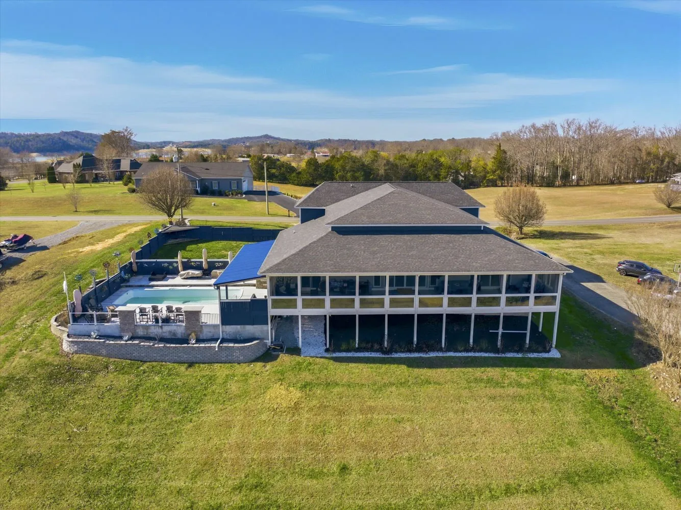 This beautifully positioned home offers a refined lifestyle surrounded by rolling hills, lake breezes, and the natural beauty Jefferson County is known for. This home has 3 bedrooms, 3 ½ baths, a bonus room, swimming pool, boat dock and incredible mountain and valley views. Based on the owners’ measurements the home has approximately 3,820 sq.ft. of living space. Perfect for full-time living, a second home or a lake getaway. No HOA fees and NO HOA board to worry about. The outdoor space provides plenty of room to gather and entertain family and friends around the swimming pool.