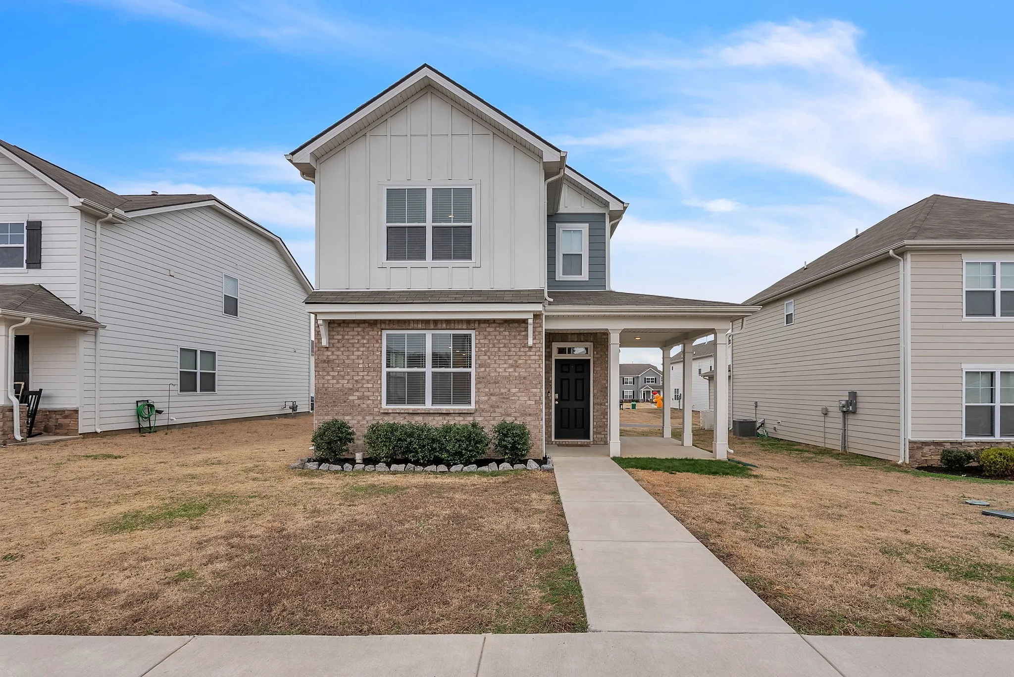 Welcome home to this well-maintained 3-bedroom, 2.5-bath residence located in the highly desirable Villages of Hunters Point in Lebanon. This home offers a functional and open floor plan with all living space downstairs, perfect for everyday living and entertaining. The kitchen opens seamlessly to the living and dining areas, creating a bright and inviting main level. All bedrooms are located upstairs, providing added privacy. The spacious primary suite features two oversized walk-in closets and an ensuite bathroom with a double vanity. The two secondary bedrooms each offer walk-in closets and share a convenient Jack-and-Jill bathroom. Additional features include a rear-entry two-car garage and thoughtful layout throughout. Residents of Villages of Hunters Point enjoy resort-style amenities including a pool, walking trails, and playground. Ideally located just minutes from downtown Lebanon, approximately 25 minutes to Nashville International Airport, and 35 minutes to downtown Nashville, this home combines comfort, convenience, and community living.
