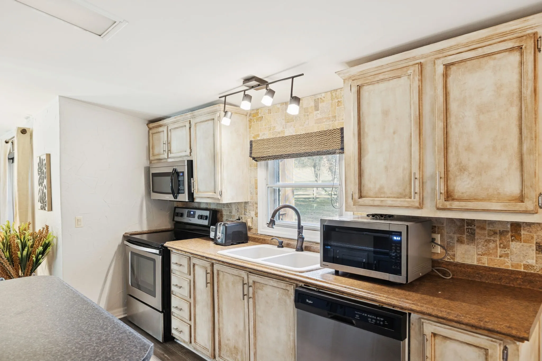 Still showing and accepting back-up offers until contingencies are removed! Peaceful mini-farm on 5.01 acres with stunning hill views. Exceptional storage, space, privacy, and versatility just minutes from everyday conveniences. The 3-bedroom, 2-bath manufactured home is complemented by an attached 4-car garage—ideal for car enthusiasts, hobbyists, or anyone needing serious storage.\n