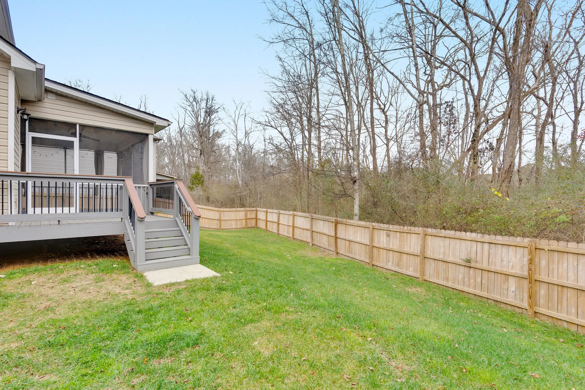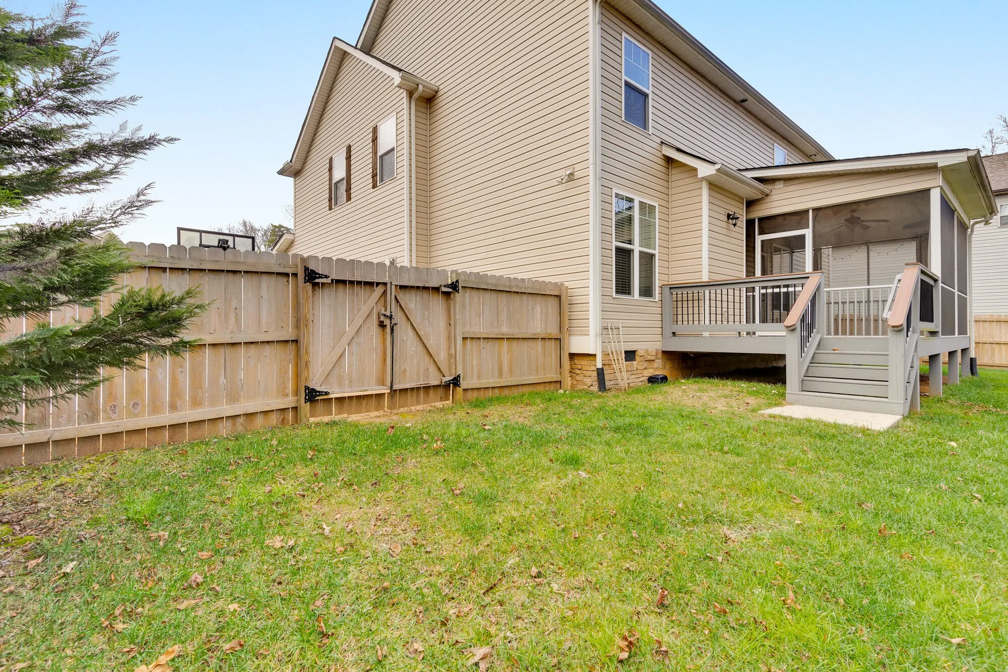 The large dining room provides ample space for hosting gatherings, while the kitchen flows seamlessly into the main living areas and out to the screened-in back porch, ideal for enjoying the outdoors year round. Step outside to a fully fenced backyard, offering both privacy and room to relax or play.