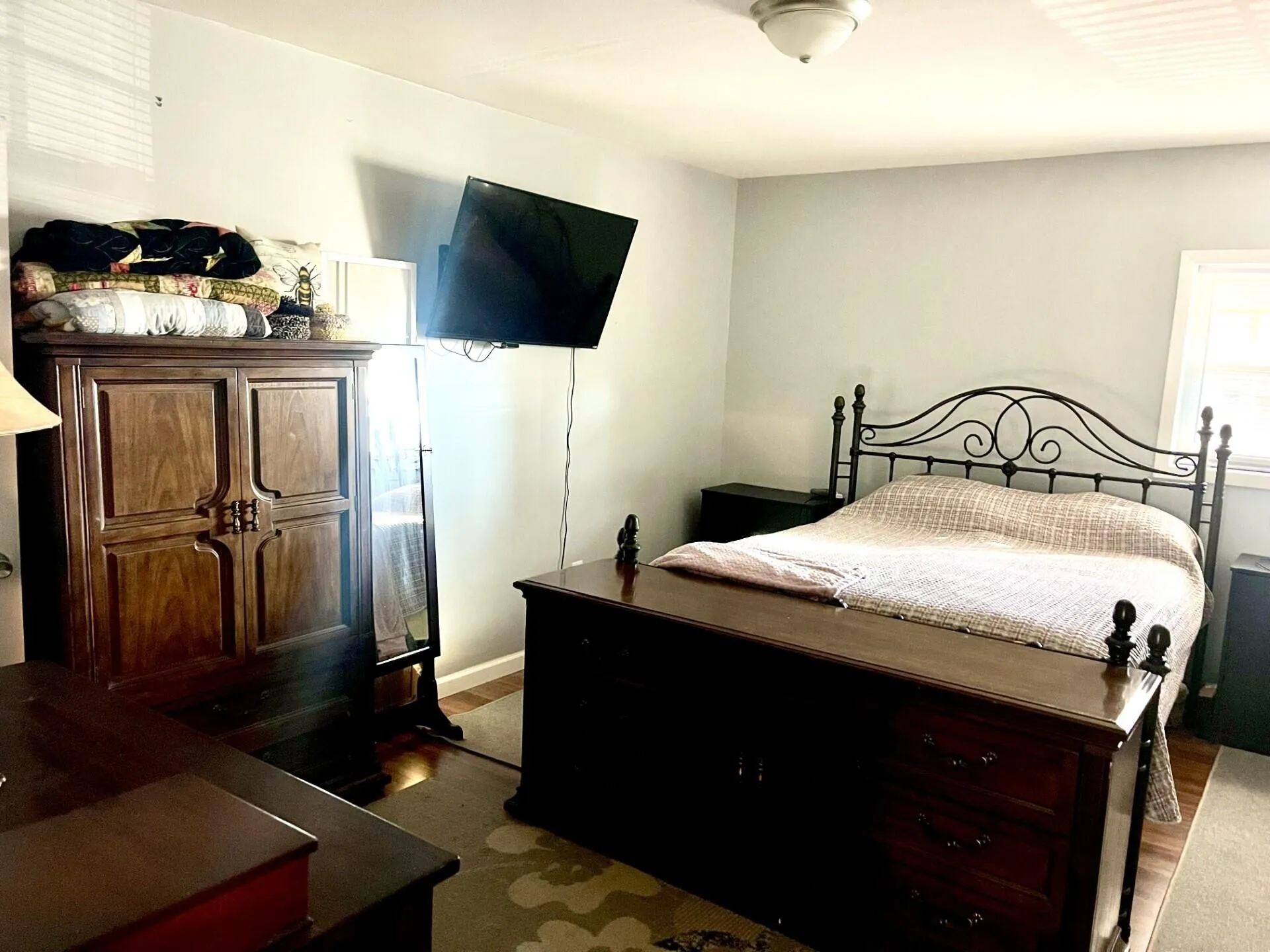 The brick rancher features 5 bedrooms and 3 baths, filled with natural light and timeless character from the moment you step inside. Beautiful hardwood floors, abundant kitchen cabinetry and countertops, and expansive storage make it a true cook's delight. The fully finished basement includes 2 bedrooms, 1 bath, a den, and a full kitchen with appliances, plus a dedicated private entrance, creating an ideal mother-in-law suite or income-producing rental. Step out onto the rear deck with breathtaking views, enjoy the fenced yard perfect for pets or play, and cool off in the above-ground pool. Fruit trees and seasonal flowers complete the picture with vibrant color and charm.\r\n