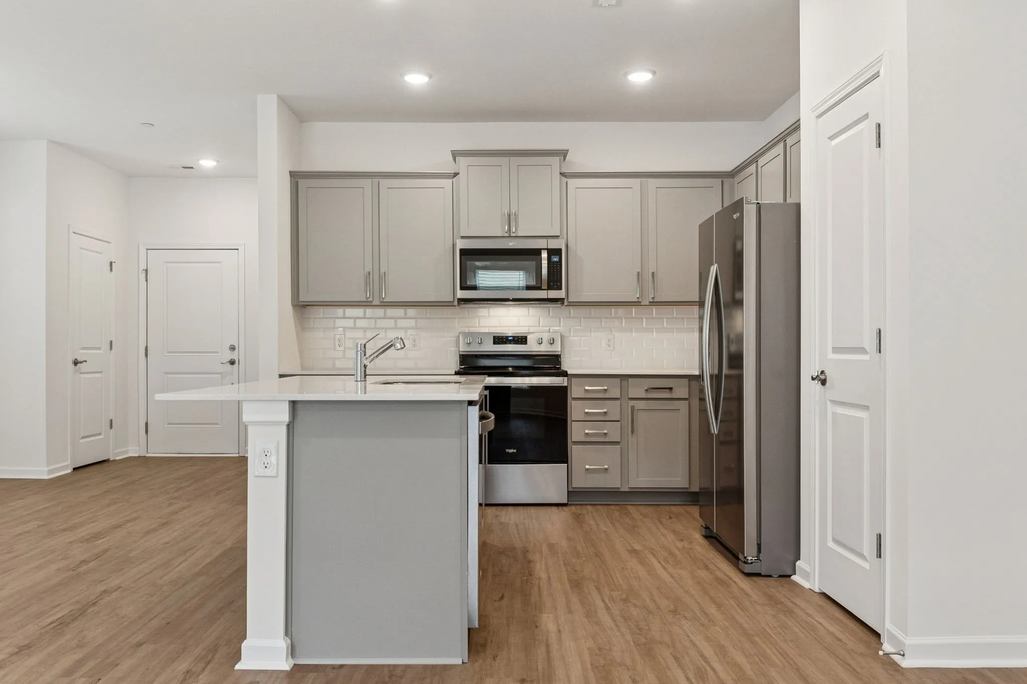 Welcome home to this beautifully designed end-unit townhome featuring 3 bedrooms and 2.5 bathrooms, this home feels open and inviting from the moment you walk in. The main floor features gorgeous wood-style LVP flooring that flows throughout the open living, dining, and kitchen areas—creating the perfect space for entertaining or relaxing with family. The kitchen shines with stainless steel appliances, white quartz countertops sleek stone gray cabinets, a subway tile backsplash, and a large island with seating. Natural light pours in through the windows, giving the entire space a bright and airy feel. Upstairs, the spacious primary suite offers a peaceful retreat with a walk-in closet and a private en-suite bathroom. Two additional bedrooms and a full bath provide plenty of room for family, guests, or a home office. You’ll also love the convenience of an upstairs laundry area and extra storage space. As an end unit, this home offers added privacy and a little extra yard space—perfect for outdoor enjoyment. Located in the new Adams Preserve community you will enjoy being close to shopping, dining, parks, local schools and quick access Interstate 40 and 30 minute drive to downtown Franklin and 40 minute drive to downtown Nashville, this townhome truly has it all. Schedule your showing today and fall in love with where you live!