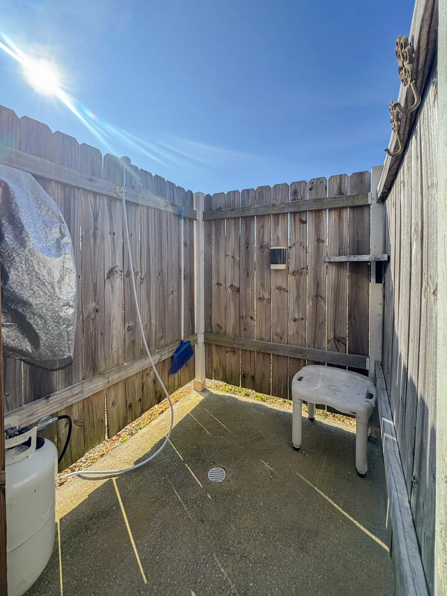 Convenience: Includes a private outdoor shower with a tankless hot water heater, ideal for freshening up after a day on the water.