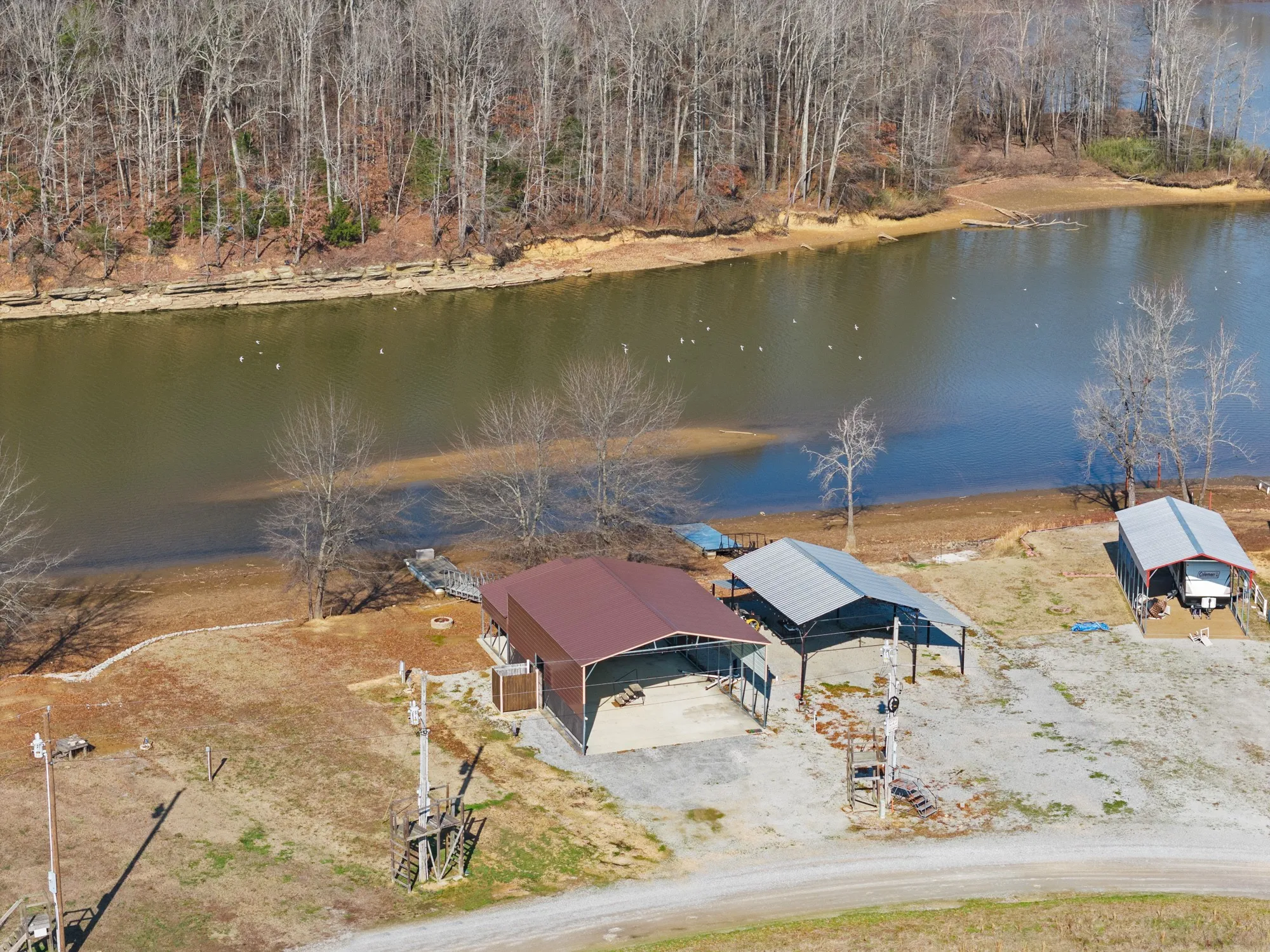 Private Dock: Your own private boat dock features dock lights, cleats, and a swimming ladder. Load and tie up your boat right at your lot, and enjoy the beautiful view of the rockbank across the river.