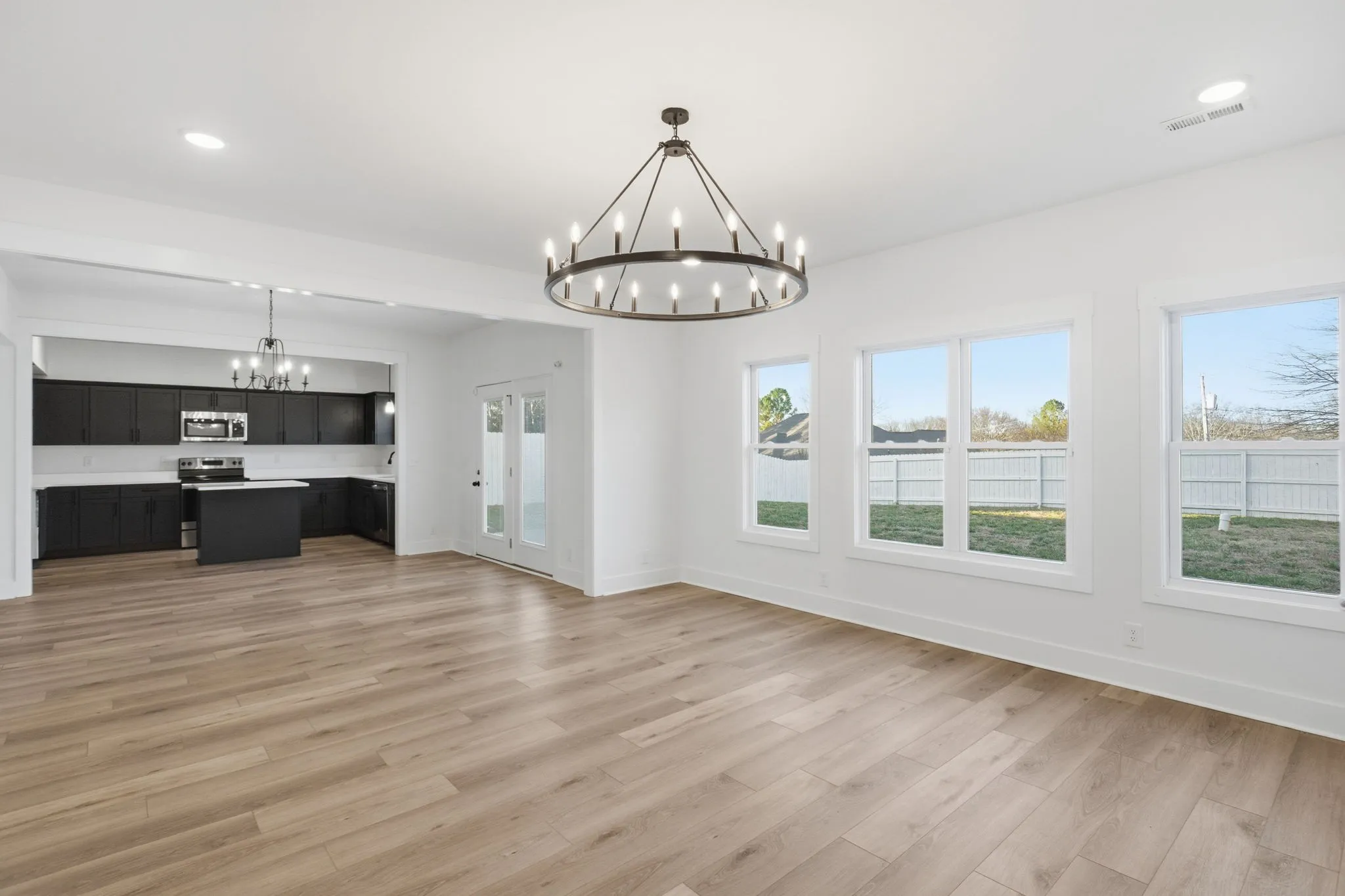 This beautifully designed home combines modern style with everyday comfort—all in a highly convenient location. A charming covered porch invites you inside, where a spacious open floor plan is enhanced by luxury plank flooring throughout the main level and excellent natural light that fills the home.