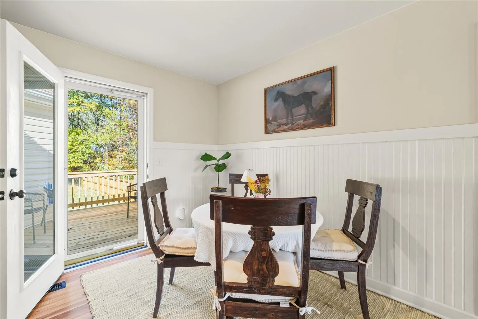 Ranch style living on a large, private one acre lot, just minutes to shopping, Publix less than 5 miles away, dining, and parks. This home is located in the Sherwood Oaks subdivision, offering a quiet community atmosphere. Updates include new primary bath has a large walk-in shower, beautiful lighting and vanity. Freshly painted throughout. New fence with remote gated entry, and new back deck. New water heater 2024. This house offers a blend of appealing features, a large fenced back yard, and a location within a well-regarded school district, making it desirable place to live for the right buyer.