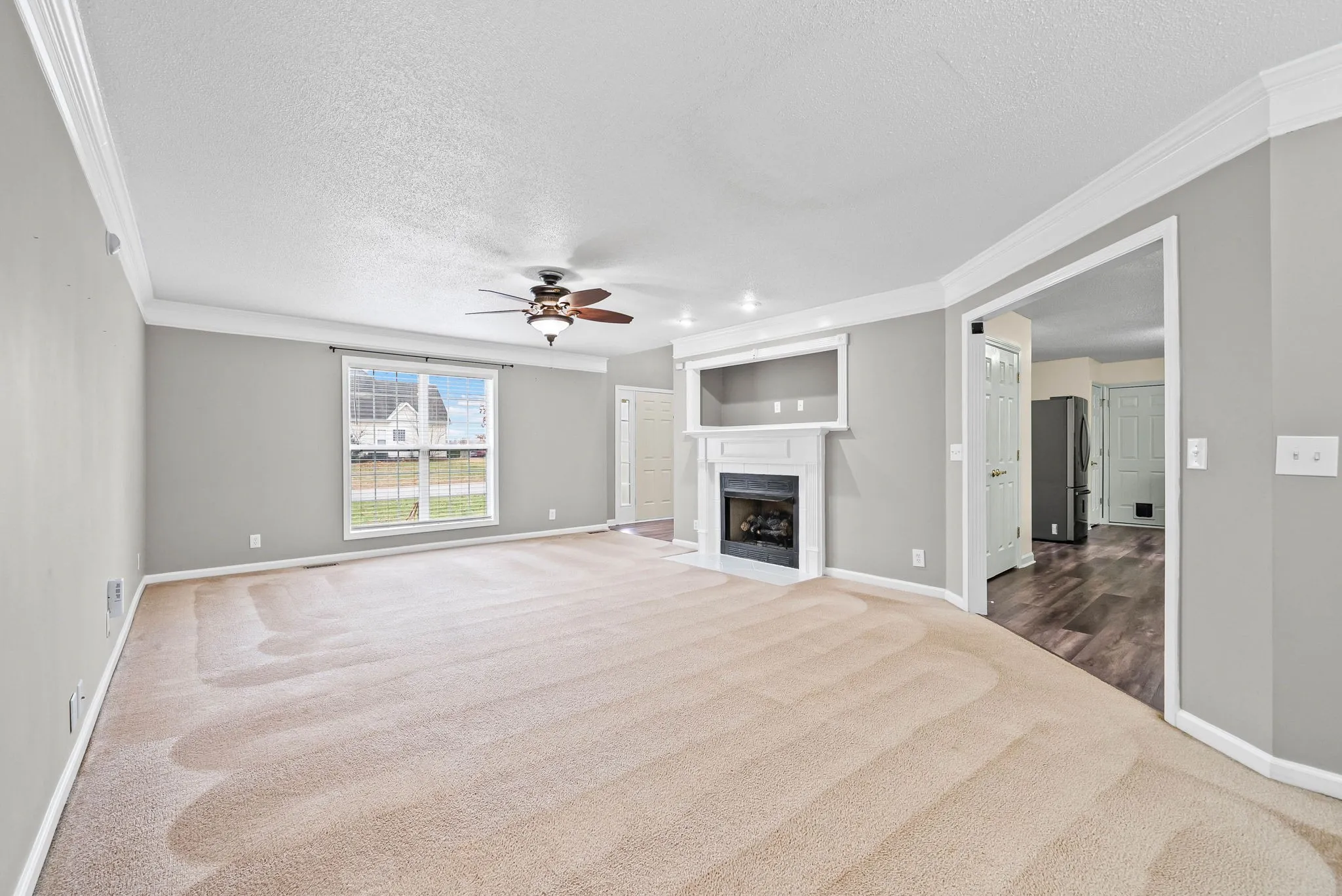 This spacious 3-bedroom, 2.5-bath home with a large bonus room is ideally located near Fort Campbell Military Base. The open and inviting layout features a generous living room with a cozy fireplace, perfect for relaxing or entertaining. A designated area for a formal dining room adds flexibility, while the kitchen offers space for a breakfast table, a bar counter for additional seating, and plenty of functionality for everyday living.