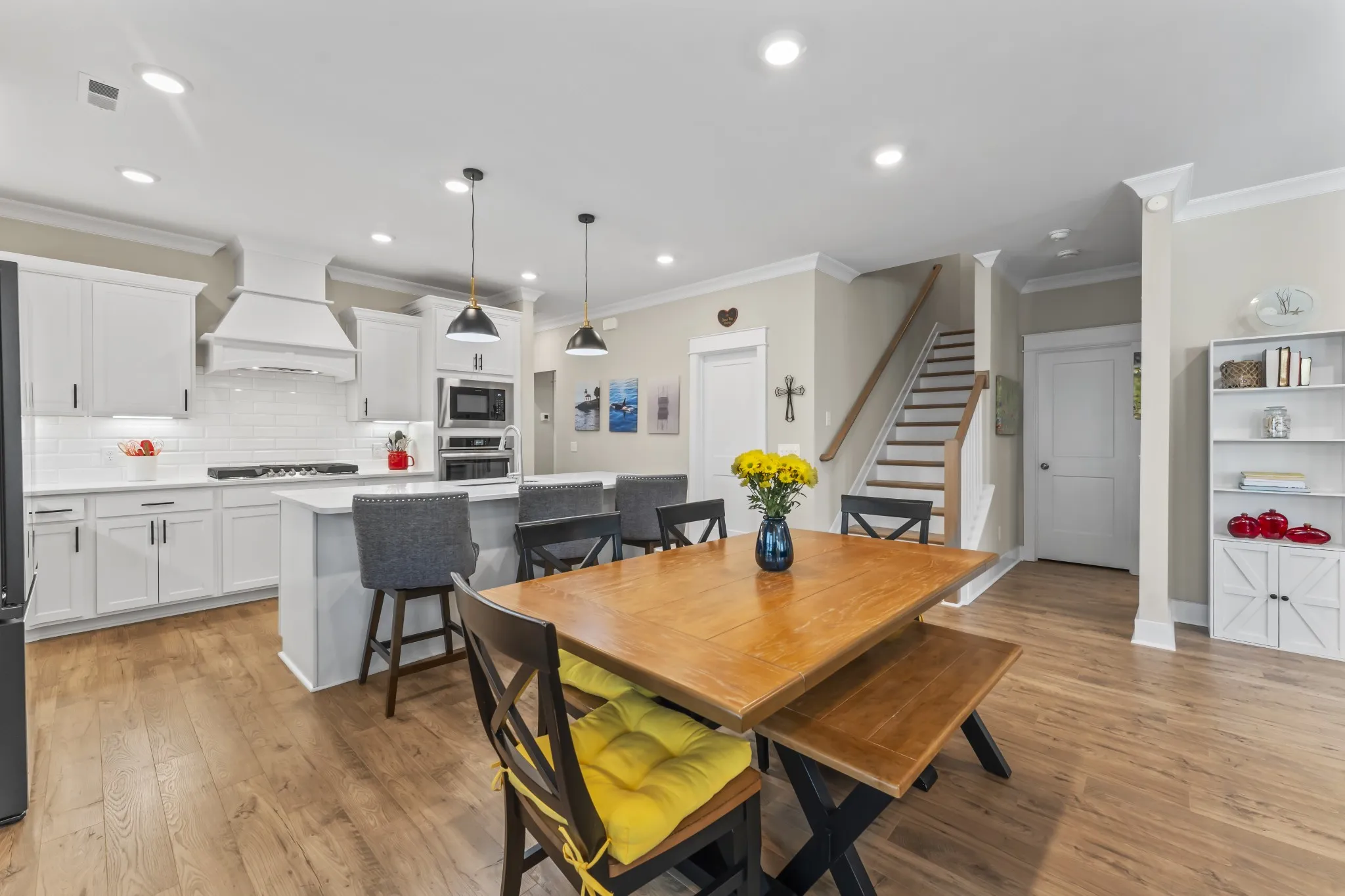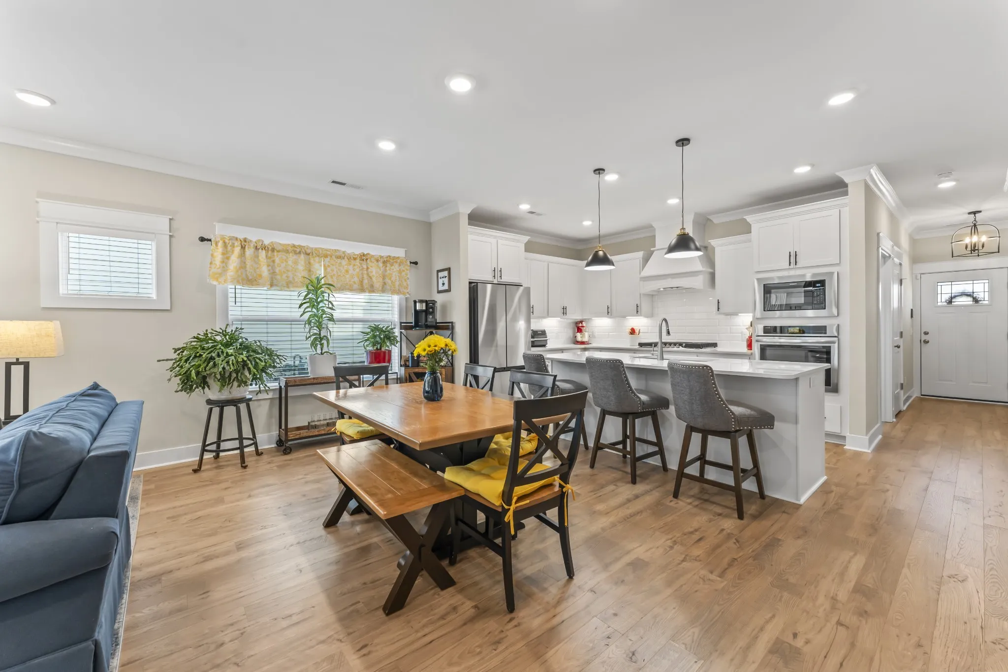 Welcome to this beautifully crafted home in the desirable Shelton Square, built by the reputable Paran Homes & offering 2,516 sf of thoughtfully designed living space. Featuring 4 bedrooms & 3 full baths, this home perfectly balances elegance, comfort, & functionality. The main level boasts an open-concept floor plan with tall ceilings & laminate flooring that resembles warm oak, creating an inviting atmosphere ideal for both everyday living & entertaining. The chef’s kitchen is a true centerpiece, complete with granite countertops, white subway tile, SS appliances, gas range, under-cabinet lighting, & a large walk-in pantry. Just off the kitchen, the laundry room is conveniently located on the main level. The two bedrooms & two full baths located downstairs, include one currently used as a home gym, & the other is the spacious primary suite featuring double vanities, a separate soaking tub, & walk-in tiled shower. Upstairs, you’ll find two additional bedrooms—both with ample closets—an inviting bonus room, & a full bath with linen closet, offering privacy & flexibility for guests or family members. Extra storage can be found in the walk-out attic or large under-stairs closet. Enjoy cozy evenings by the gas fireplace or relax outdoors on the expanded covered & screened patio overlooking a rare & serene ‘forever wooded’ area that ensures lasting privacy. An elegant wrought iron fence fully encloses the backyard. Additional highlights include Hardy board siding, tankless WH, irrigation system, whole-home water softening system, ADT security system, floodlights on the front & back, & high-speed internet. The two-car garage features insulated doors & smart programmable openers. As part of Shelton Square, residents enjoy access to a community pool, playground, basketball court, clubhouse with fitness center, & scenic walking trails—all maintained by the HOA. This exceptional home blends quality construction, modern amenities, & a vibrant community lifestyle. Welcome!