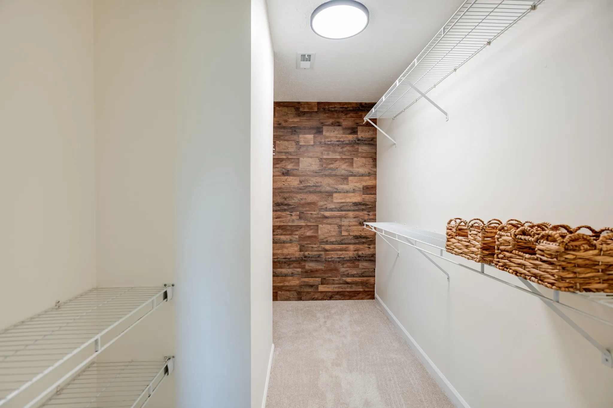 "LongDescription" => "Owners Suite: 15x14 Features Brand New Carpet and Real Wood Accent Wall. (view from bedroom entrance)."