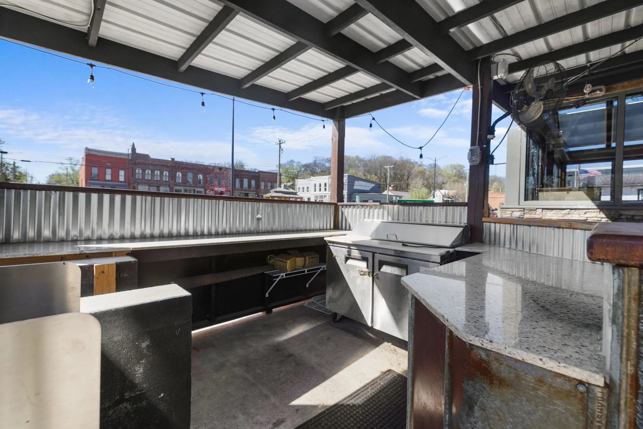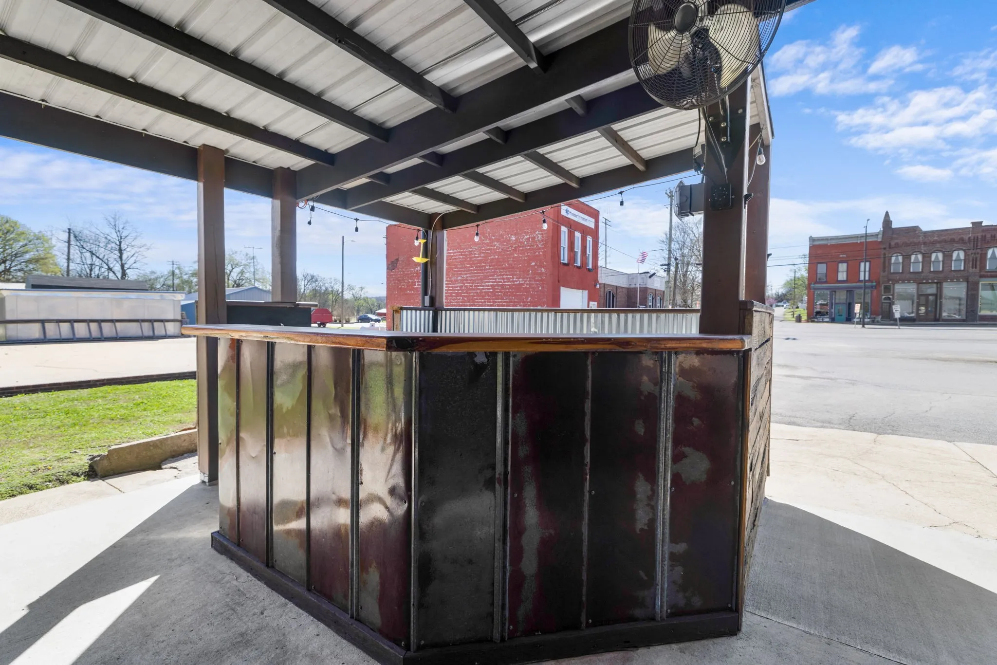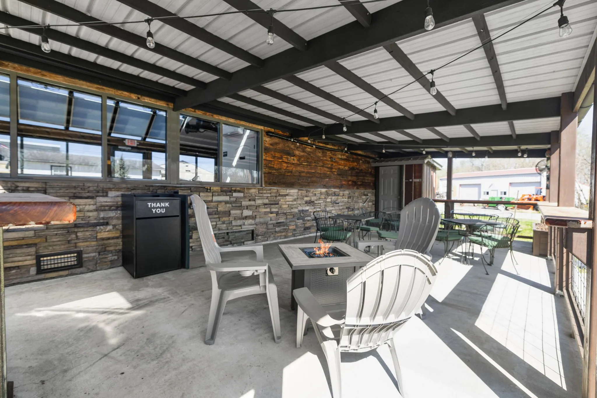 A major highlight of the property is the covered outdoor patio and seating area, creating additional customer space and a welcoming atmosphere for gatherings and community events. An exterior customer restroom is also located on the property.