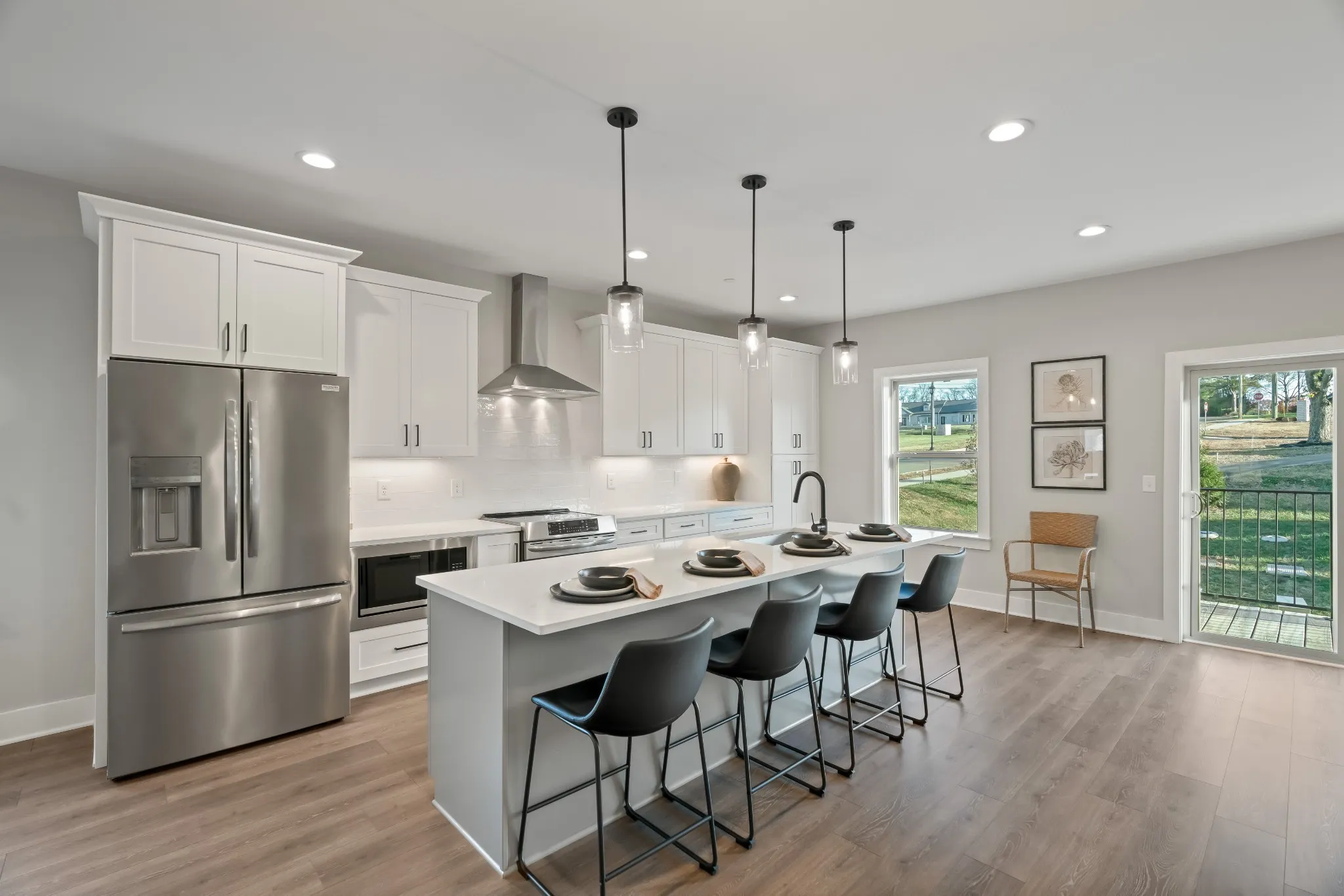 Prime Location, Low-Maintenance Living, and Luxury Finishes—this home has it all! Enjoy custom wood shelving in every closet, a built-in under-counter microwave, and an oversized kitchen island perfect for entertaining. Stunning quartz countertops, 9-foot ceilings, and no carpet—only beautiful luxury laminate hardwood flooring and gorgeous tiled bathrooms.