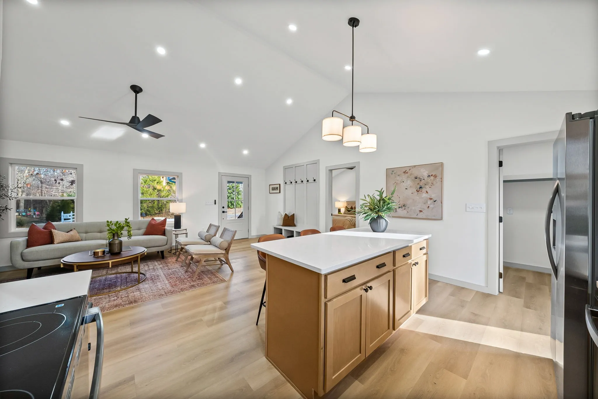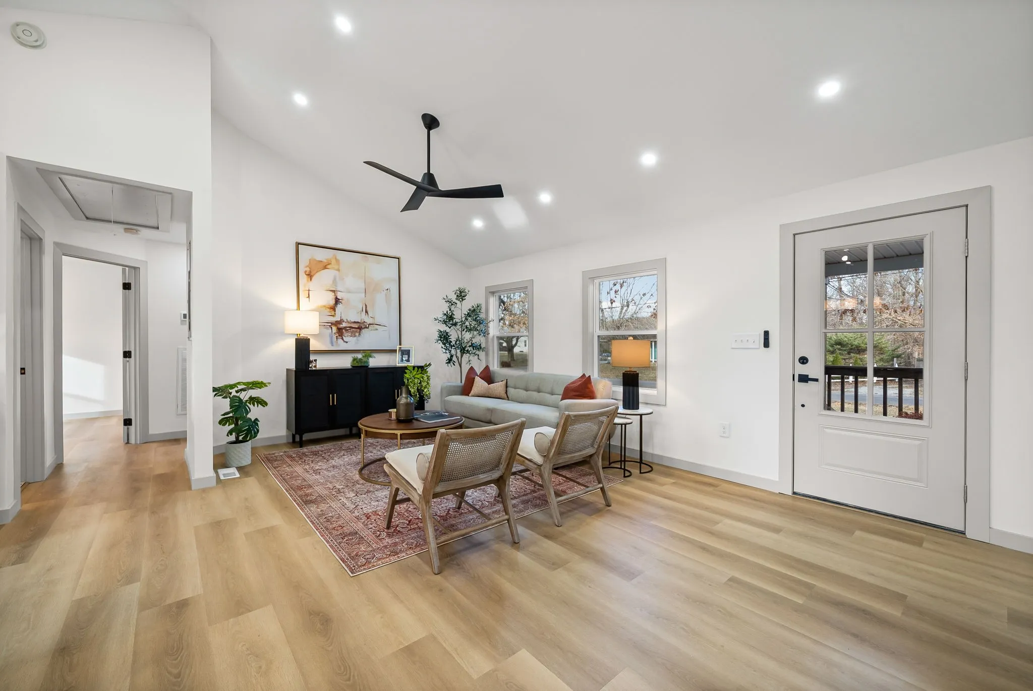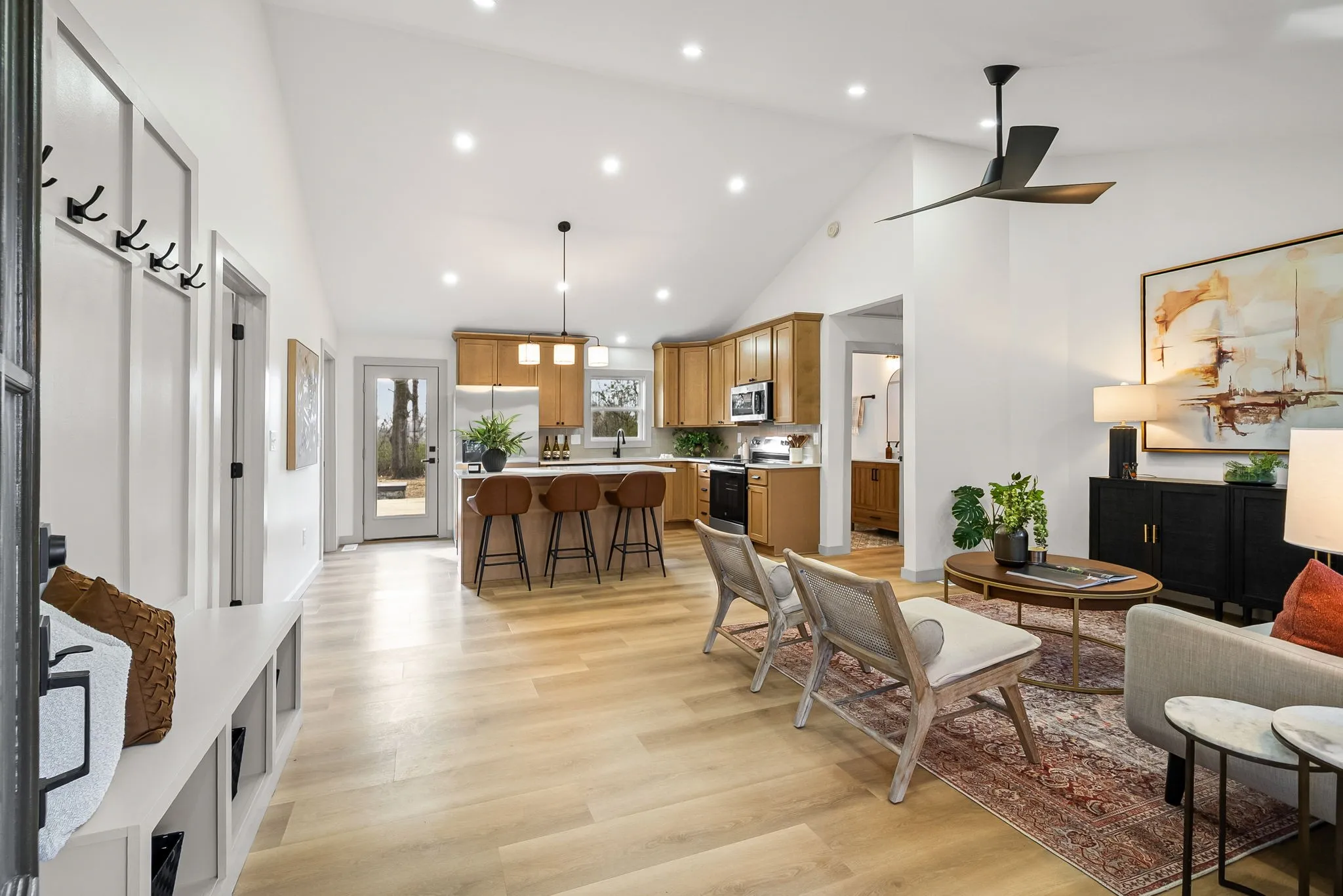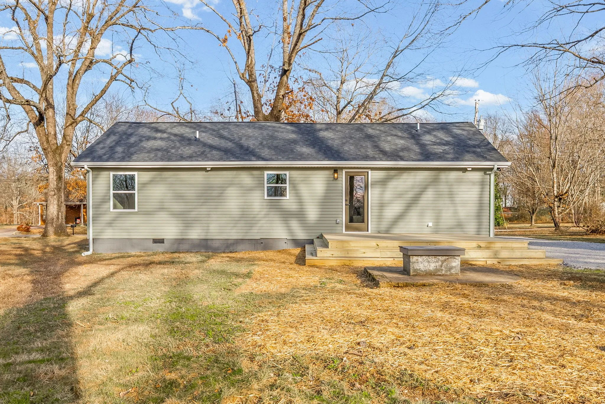 This beautiful home offers one level living and has been fully renovated inside and out to include: all new electrical, plumbing, roof, hvac, windows, and moreā¦nothing was spared! As you turn into the spacious driveway you will notice the curb appeal and charm this home offers as well the new siding and the covered front porch to enjoy your morning coffee! The second you step inside the great room you will be impressed by the quality and design selections chosen for this renovation which include new flooring and designer fixtures. The heart of this home is definitely the new Pinterest worthy kitchen complete with dining island which opens up into the bright and airy living room, perfect for entertaining! On one side of the living room you have the wing for your primary suite which offers a dreamy bathroom complete with double sinks, a tiled shower/tub combo, and a walk in closet with shelving. On the other side of this split bedroom floorplan you will find 2 additional bedrooms and full bathroom which is sure to impress your guests. Out back you have a newly built deck overlooking the sprawling 0.6 acre lot and tree lined back view. A shed conveys with the property for your storage needs. Schedule your tour today and see all that this amazing home has to offer. It is sure to impress even the pickiest of buyers.