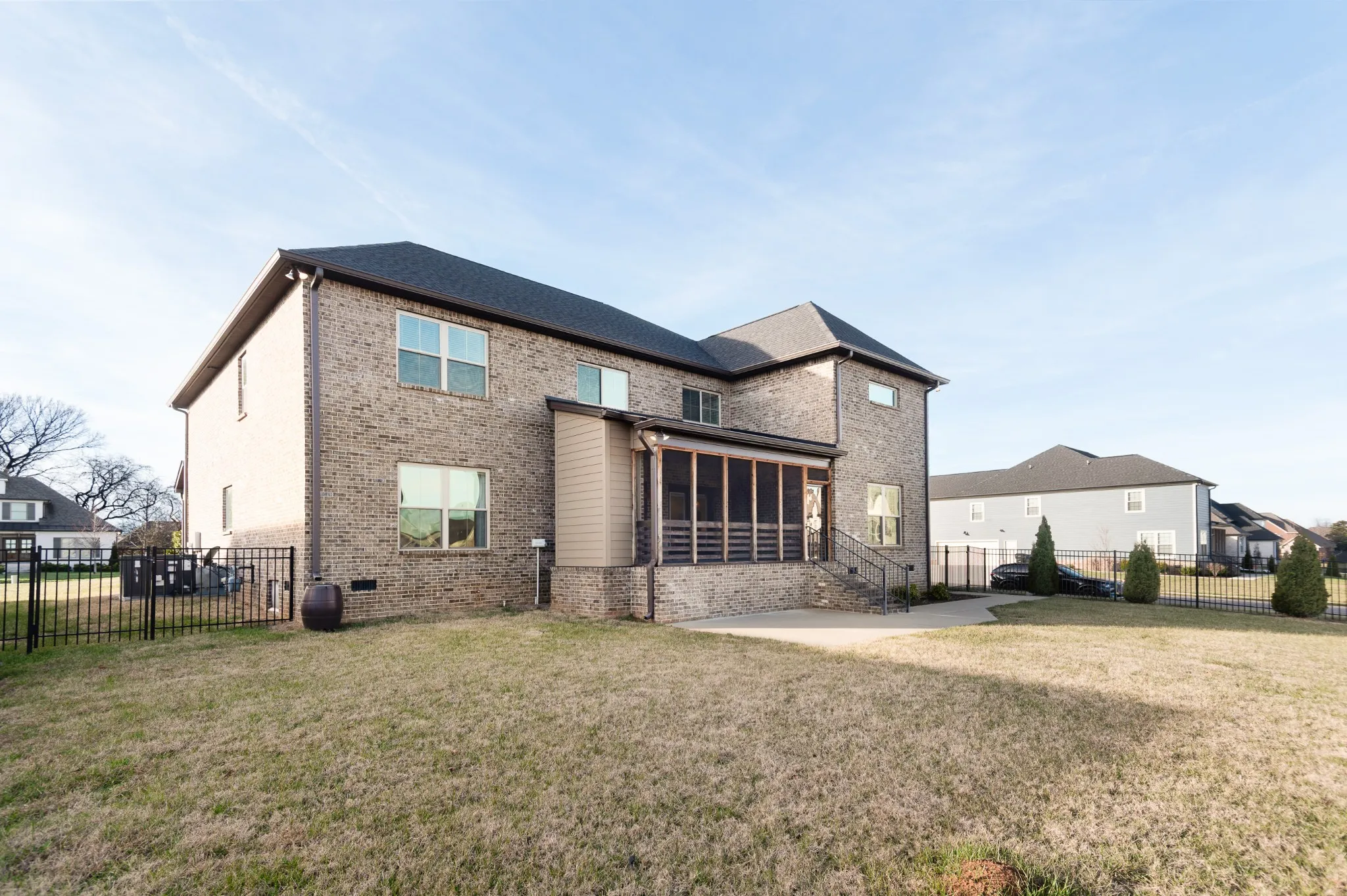 Upstairs, you’ll find three additional bedrooms, two full baths, and two versatile bonus rooms ideal for a media room, playroom, or home office—perfect for guests or a growing household. Outdoor living is just as enjoyable with a covered screened patio with a gas fireplace and fenced backyard, ideal for entertaining or relaxing. A 3-car garage provides ample storage and parking.