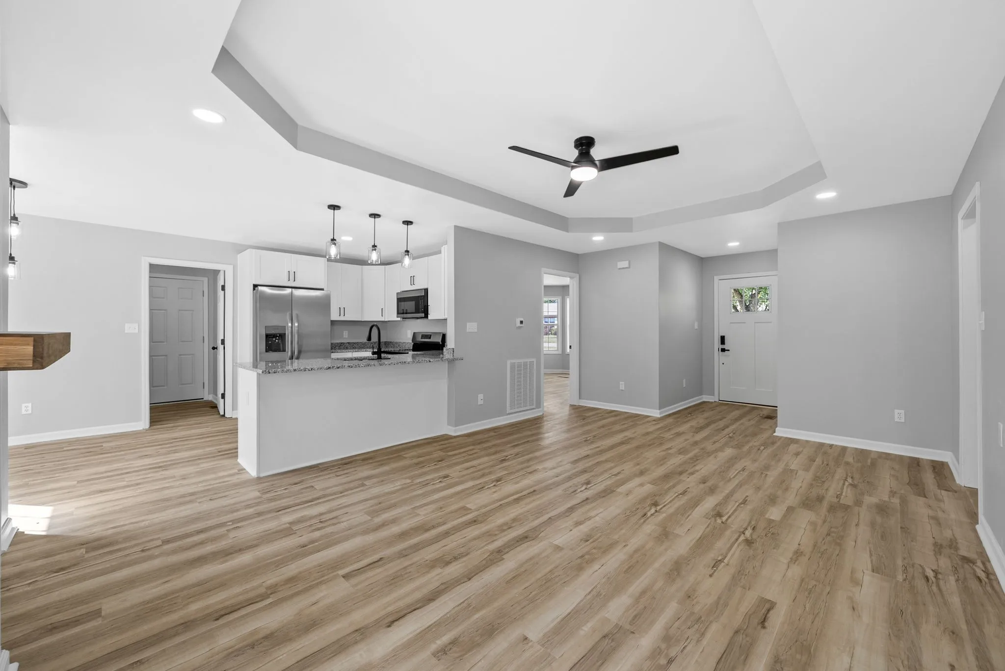 ** SELLER IS OPEN TO PAYING ALL BUYER CLOSING COSTS/RATE BUY DOWN*** Renovated 3 bedroom, 2 bathroom ranch in Derby Park subdivision! Conveniently located just minutes from Fort Campbell, I-24, and shopping. This home has been completely renovated from the studs up with new electrical, ductwork, drywall, insulation, flooring, lighting, and fixtures throughout. The open floor plan features a modern kitchen with brand new soft-close cabinets and stainless steel appliances, a spacious living area with a shiplap electric fireplace, and new LVP and carpet flooring. Enjoy a large fenced backyard with a newer privacy fence, all situated on a quiet cul-de-sac. Move-in ready and beautifully finished from top to bottom!