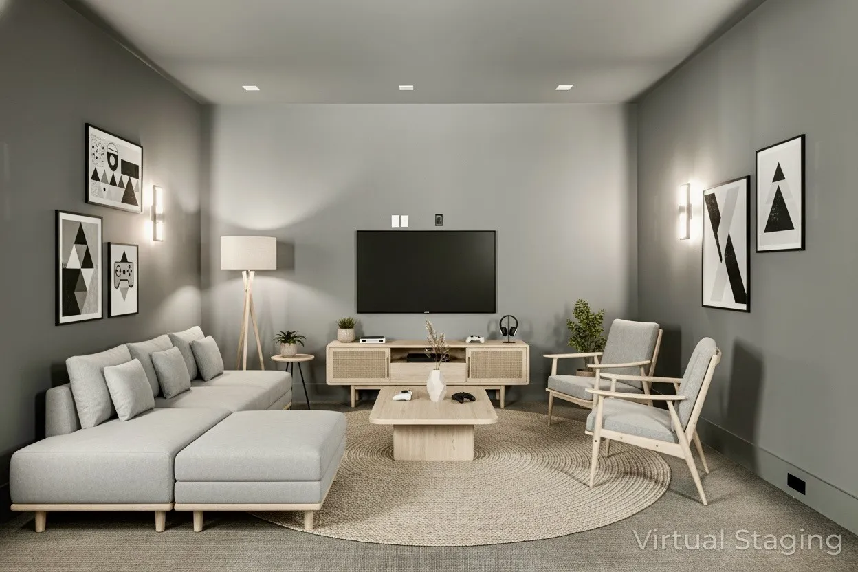 "LongDescription" => "Actual Home — Virtually Staged Photo—for Inspiration Only & to showcase how space can be used & furnished."